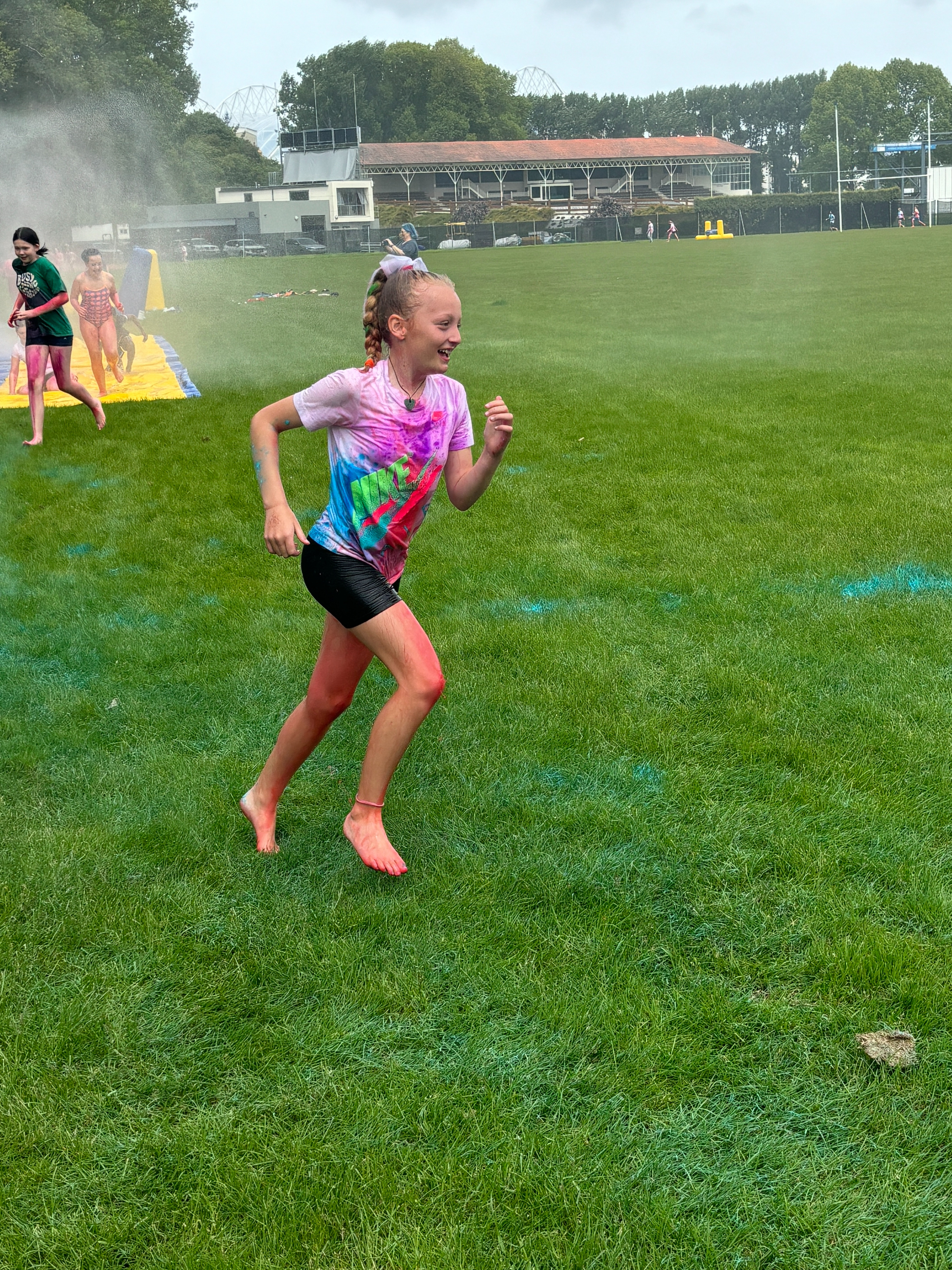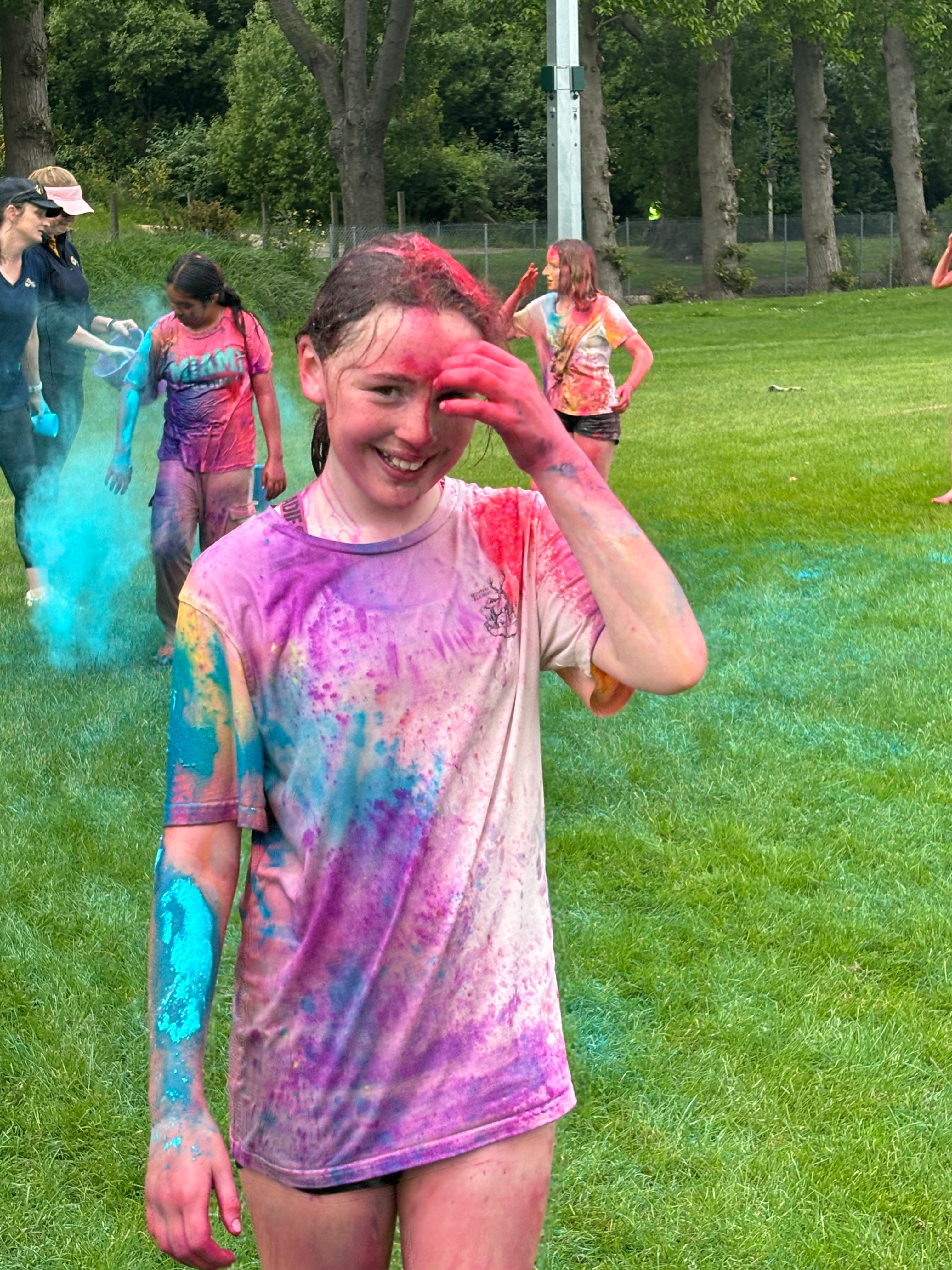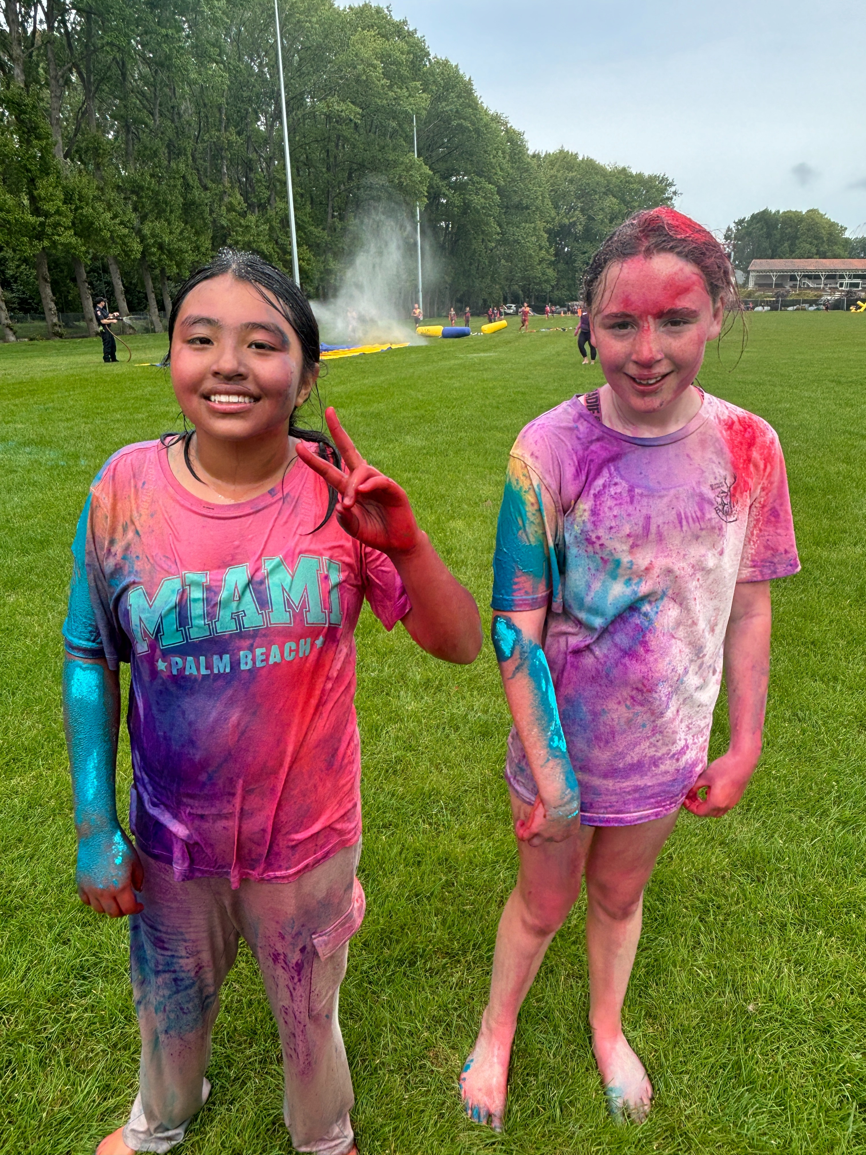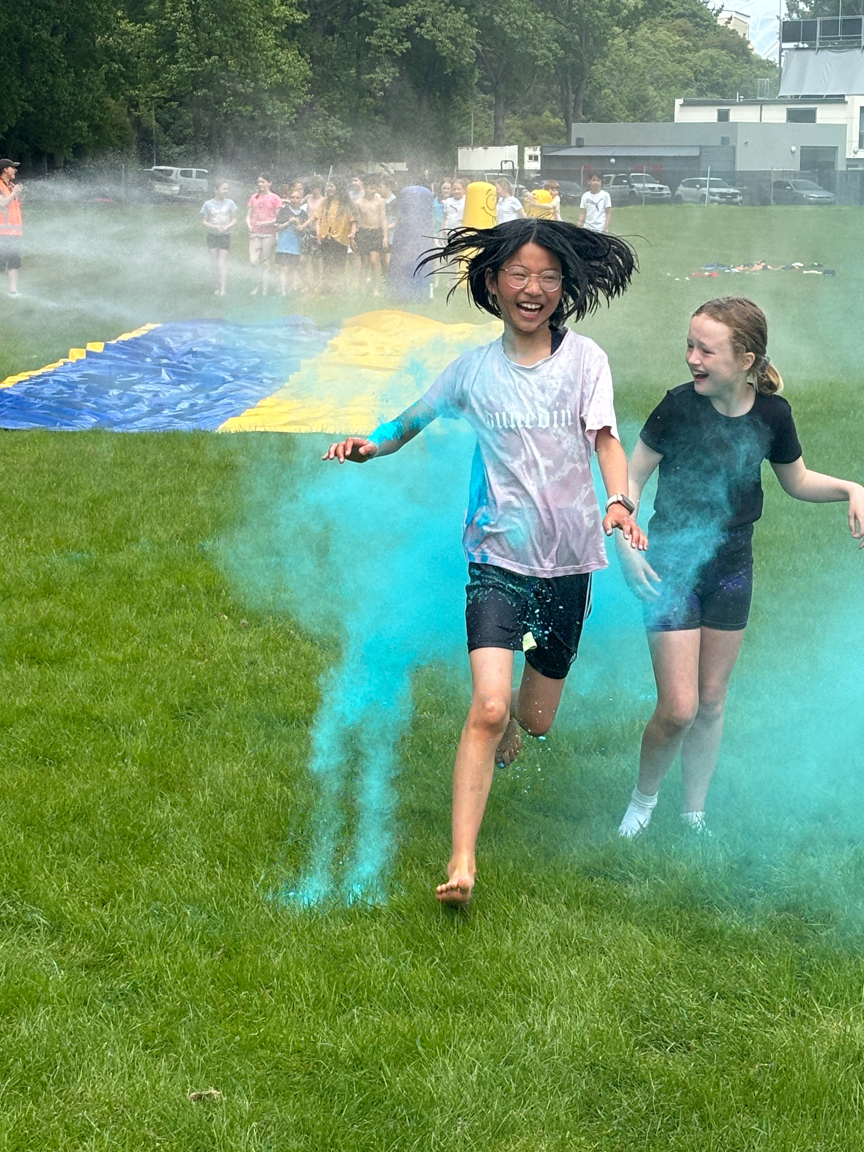 A highlight of the day was the pizza lunch, where students could relax, enjoy a delicious meal, and bond over shared experiences. But the fun didn't stop there! The day wrapped up with an unforgettable colour run and water slide. The PALS dashed through vibrant clouds of coloured powder, transforming them into walking rainbows by the end. The water slide added an extra thrill, making it a fantastic end to the event.