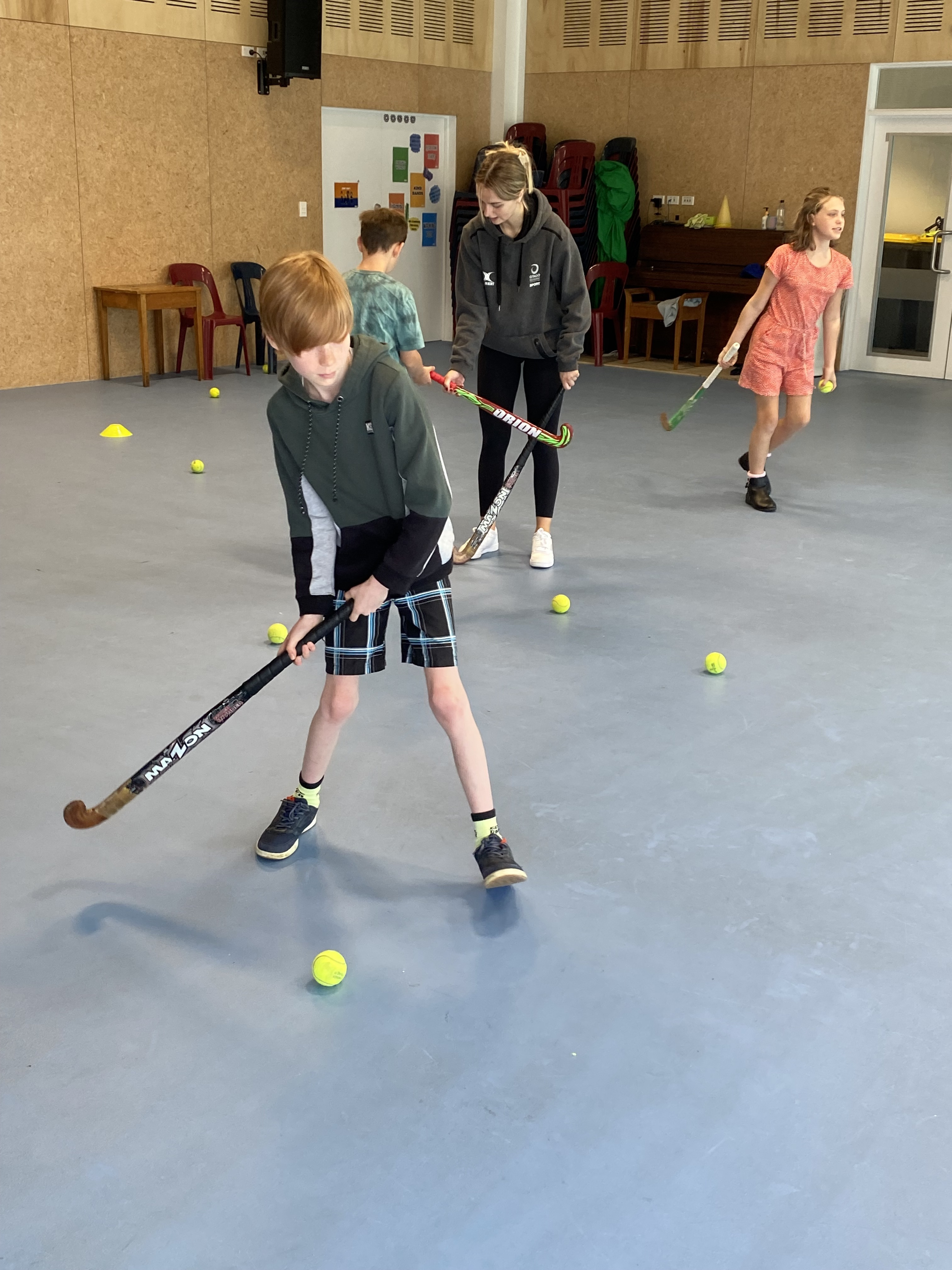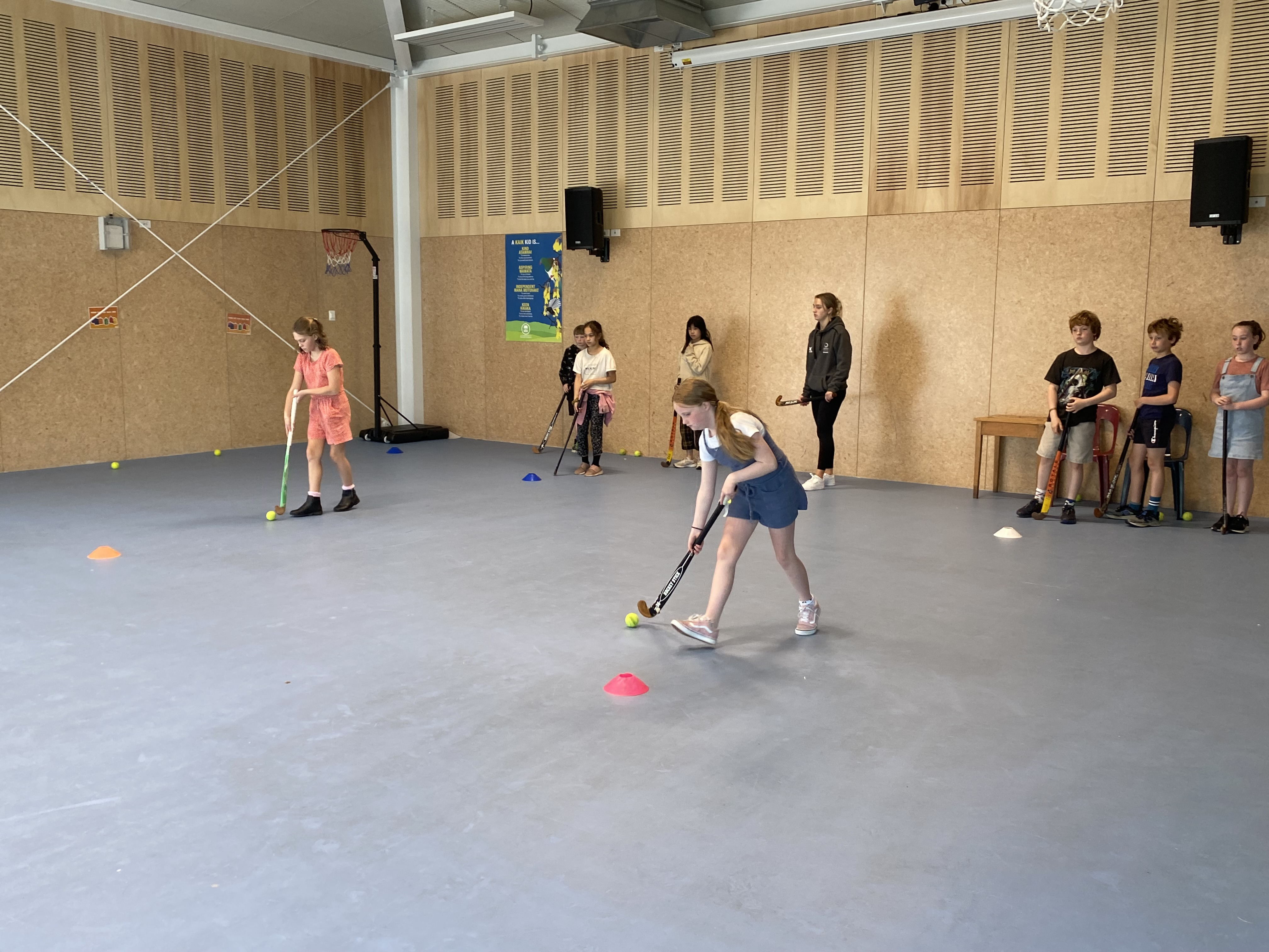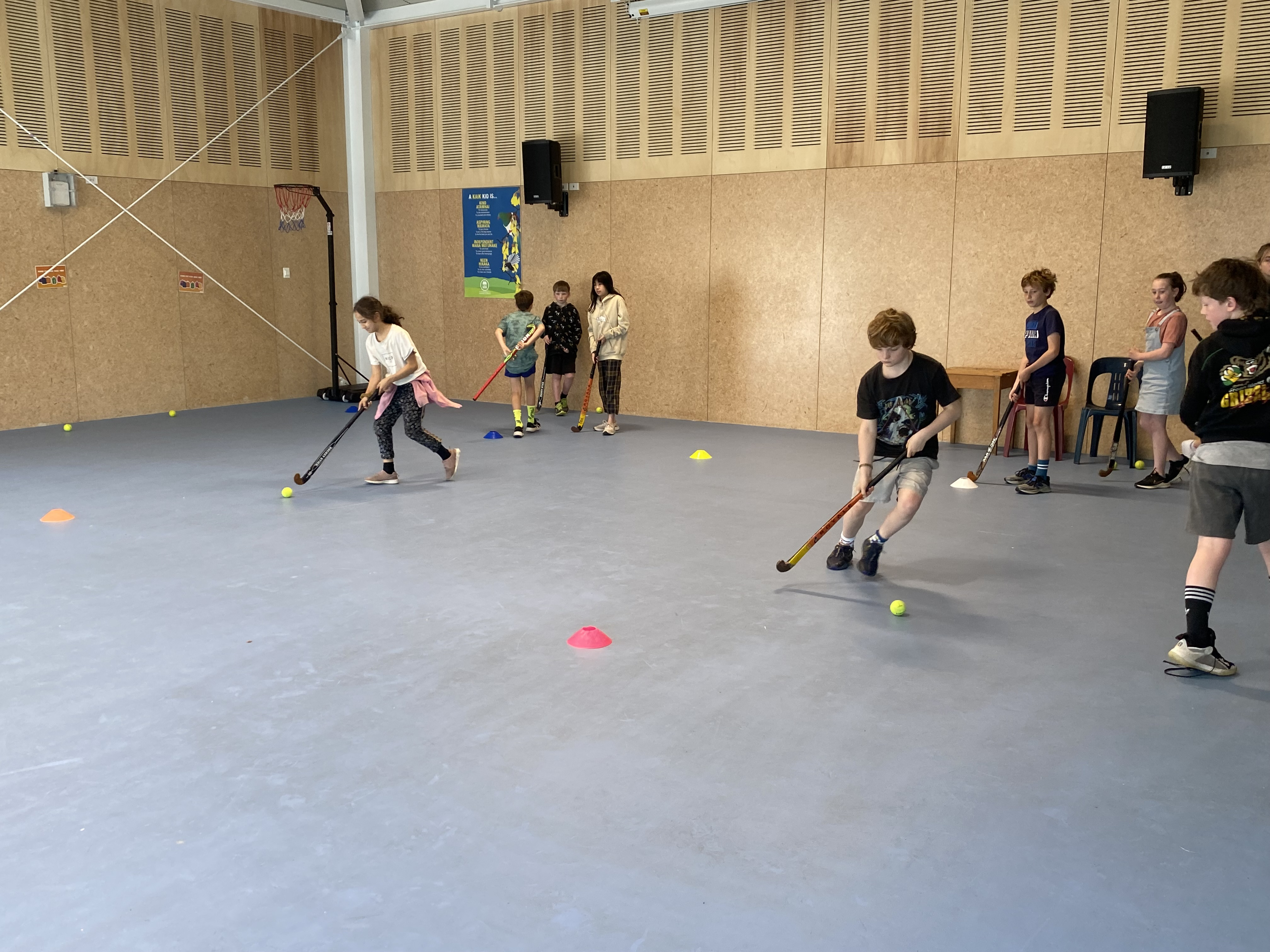 On Tuesday, the senior team were fortunate to have a hockey skills-based lesson with Ellie from the Otago Polytech. The students learnt how to hold a hockey stick correctly and how to control the hockey ball using a variety of different techniques.