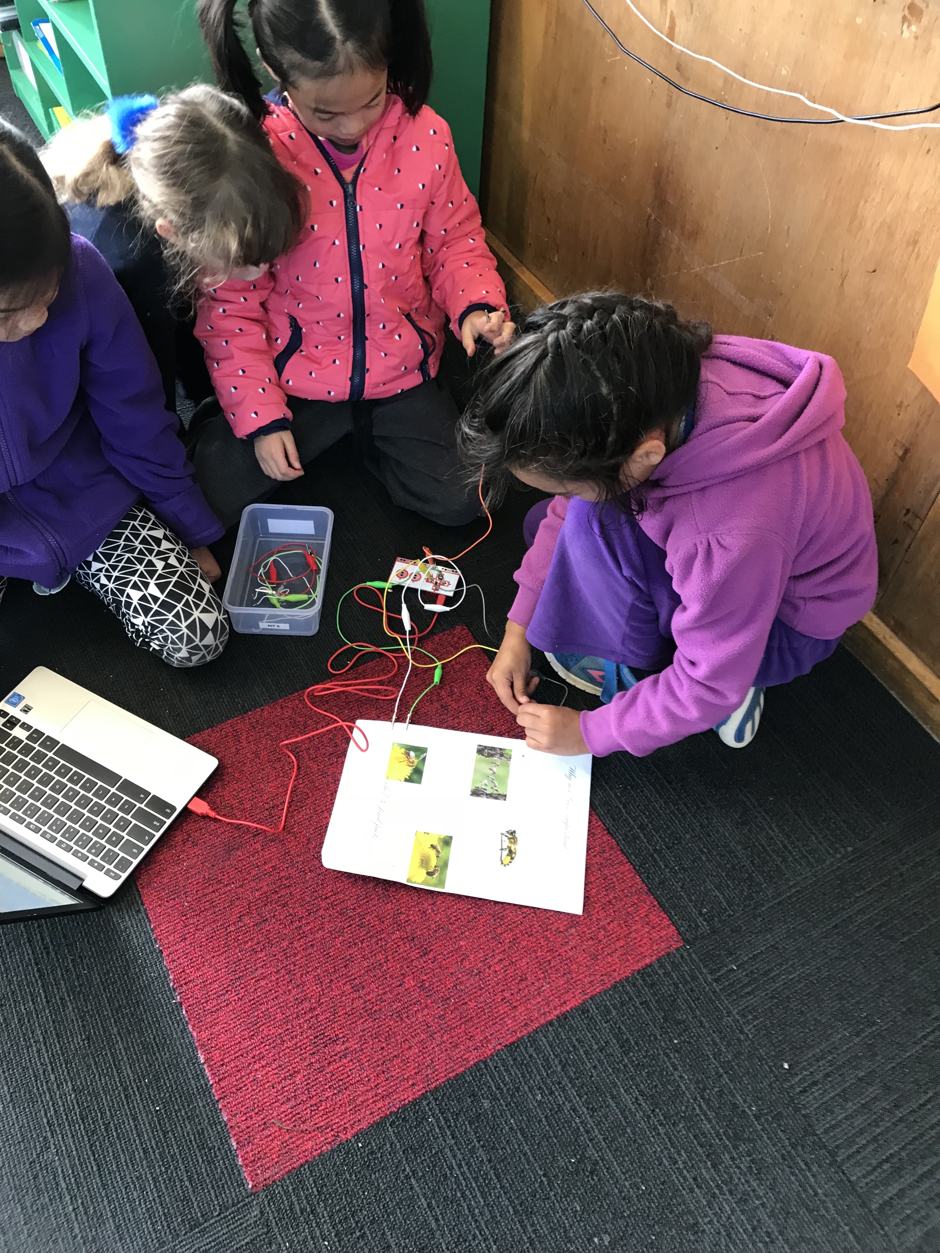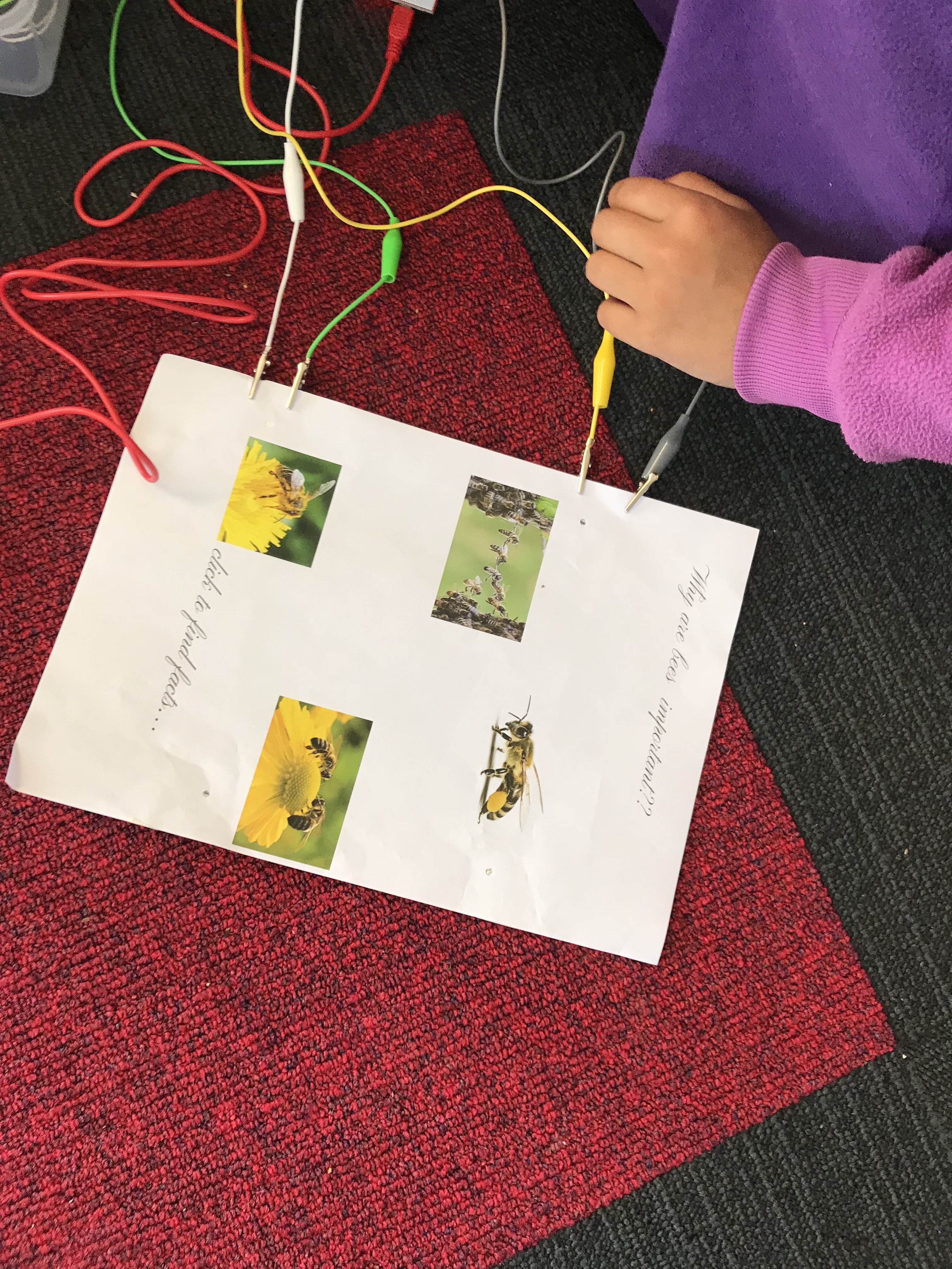 In Room 5 this week we have been learning how to use the makey makeys kits. We have created a poster that shows how important bees are to our environment. We connected our copper posters to the make makey wires and recorded interesting facts. When you push the button on your poster it plays a voice recording of it. You are welcome to come in and check them out in week 11.