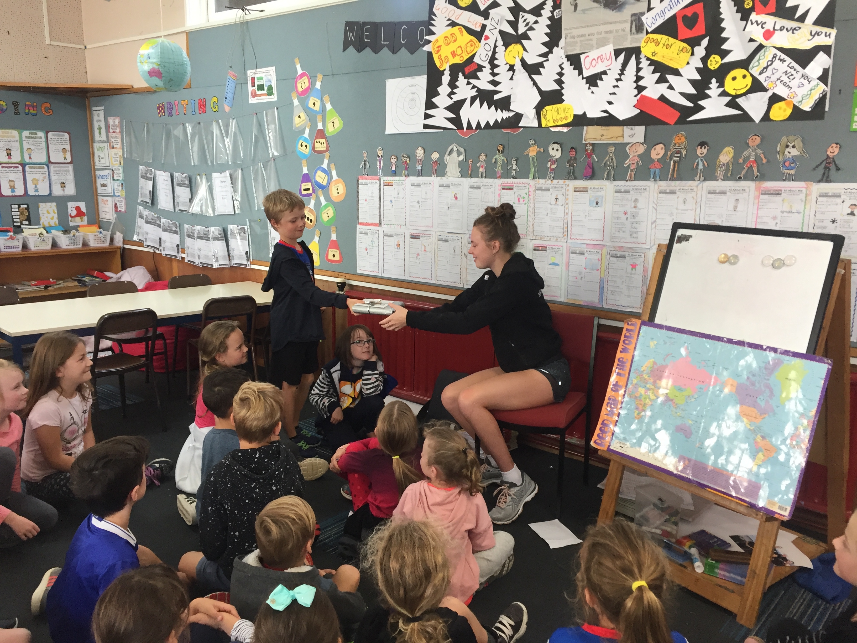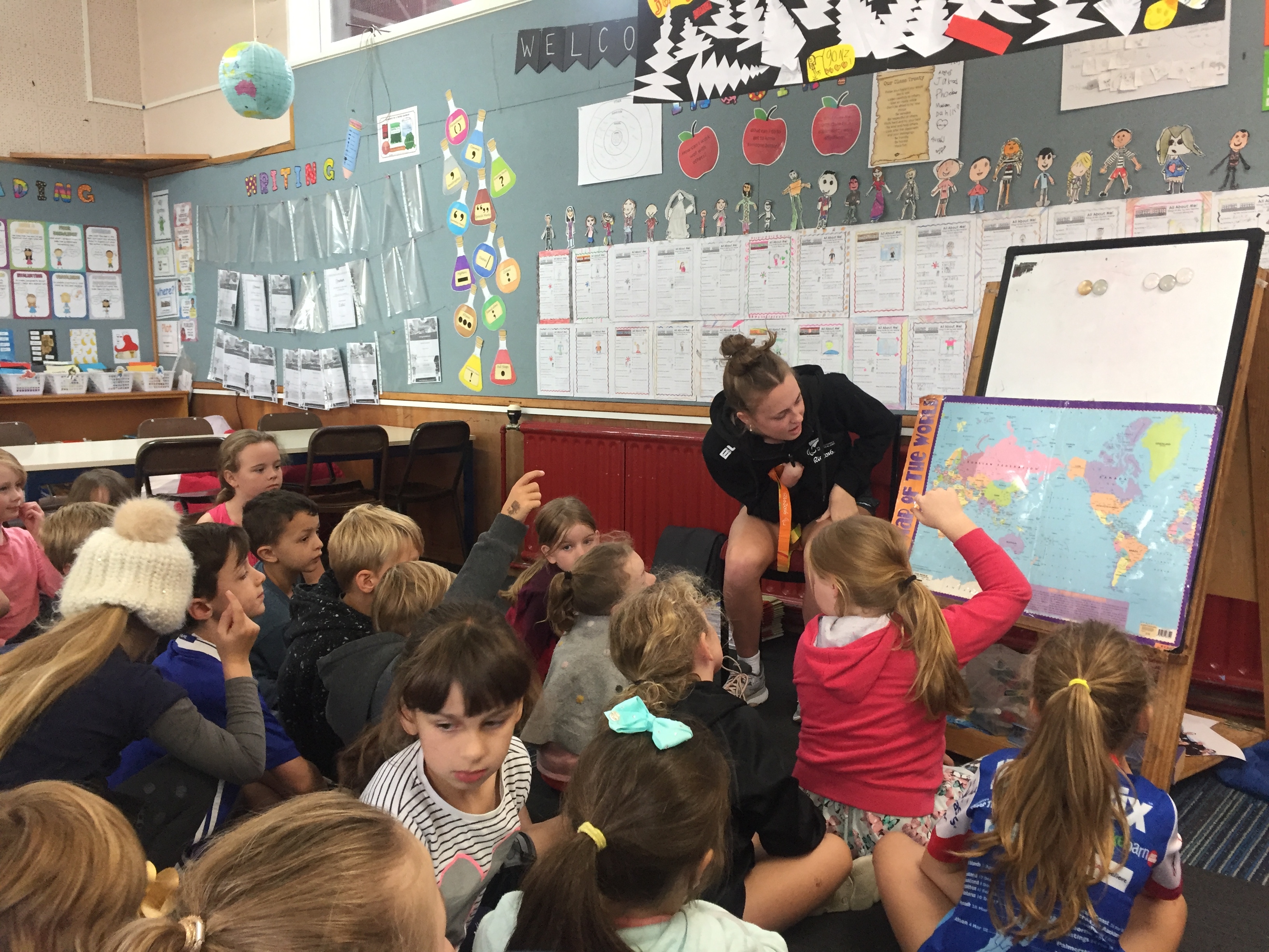 Recently Room 4 have been looking at the paralympic games. We were lucky enough to have Anna Grimaldi (long jump paralympian) come and talk to the class about what it is like to win a medal at the paralympics. The class asked many interesting questions and learnt a lot from this! We have also been busy with our communities inquiry, making basketball hoops to put over our bins to encourage putting our rubbish in the bin. The SPCA came and talked to us about how we can help look after the animals in our community. We can’t wait to share what we have learnt with everyone!