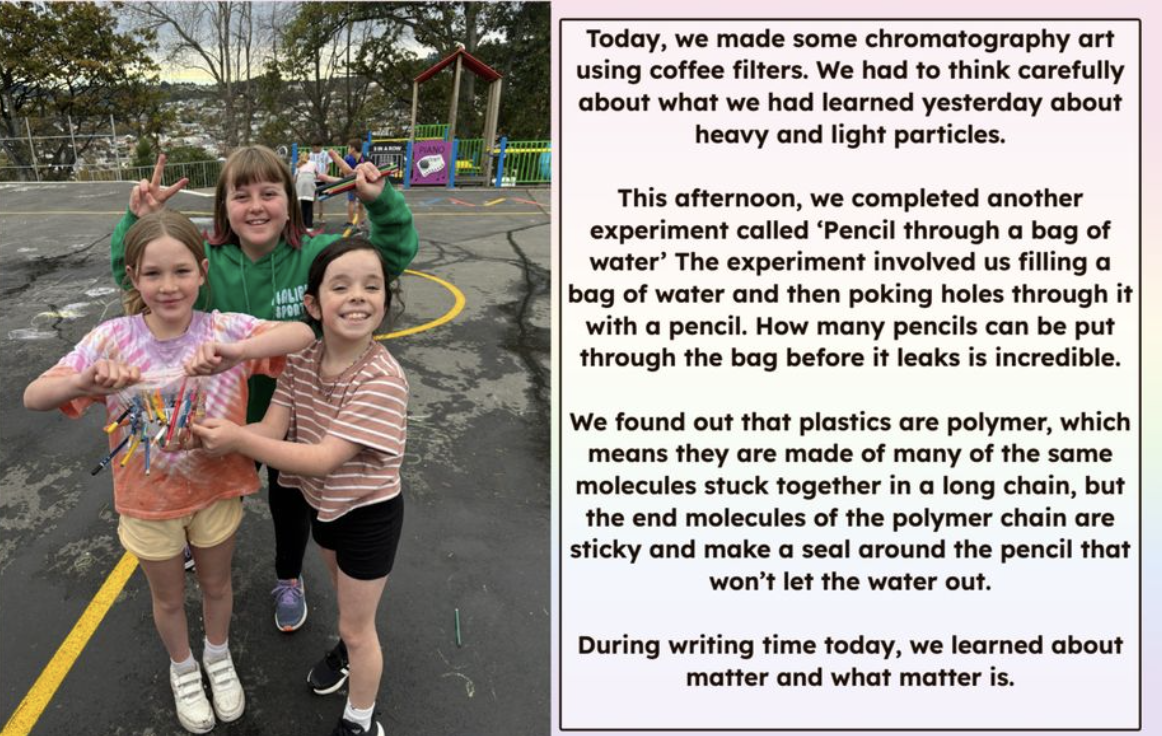 For sharing your ideas and understanding in science. You have had a great first week back. Tino pai!