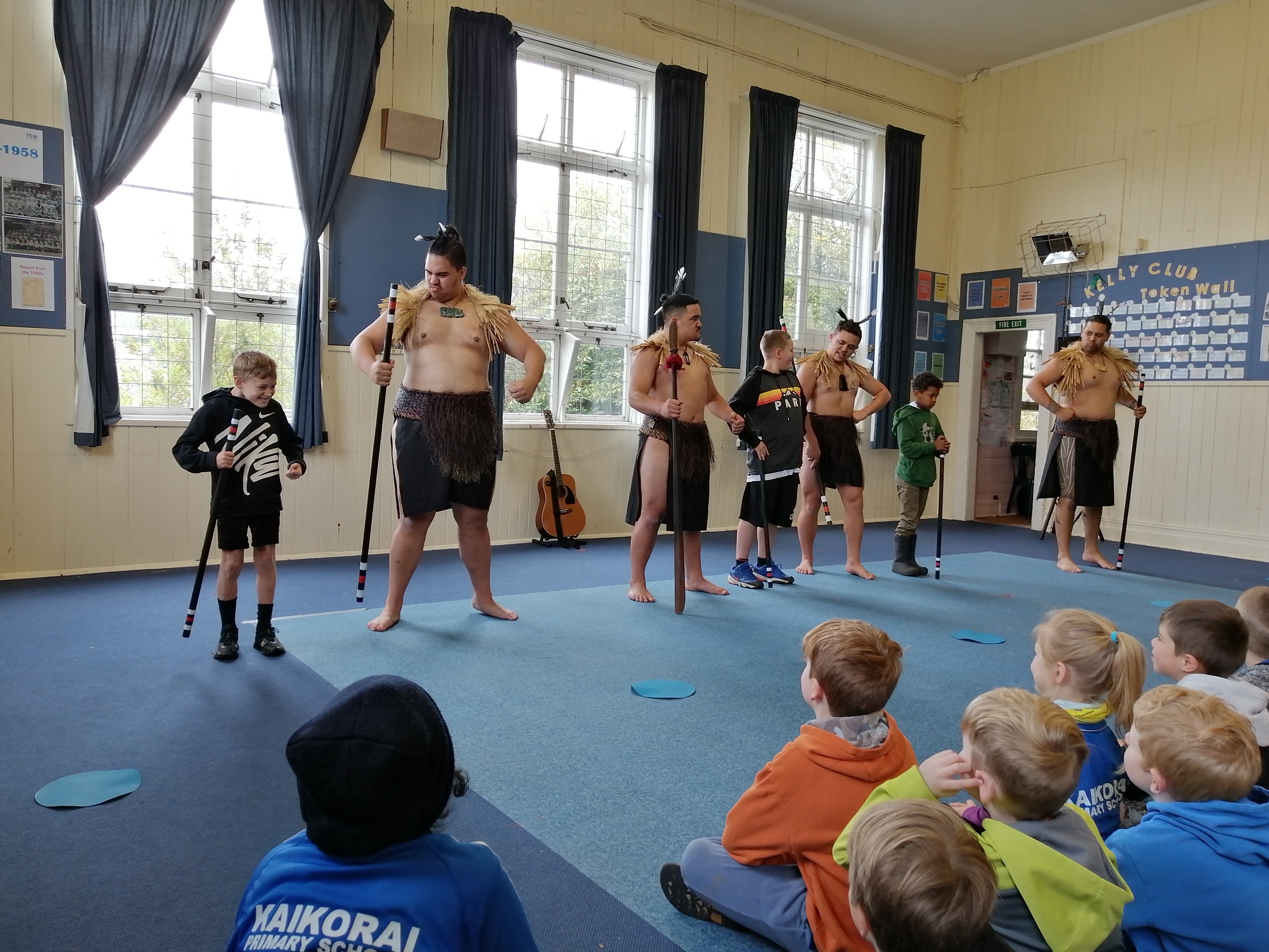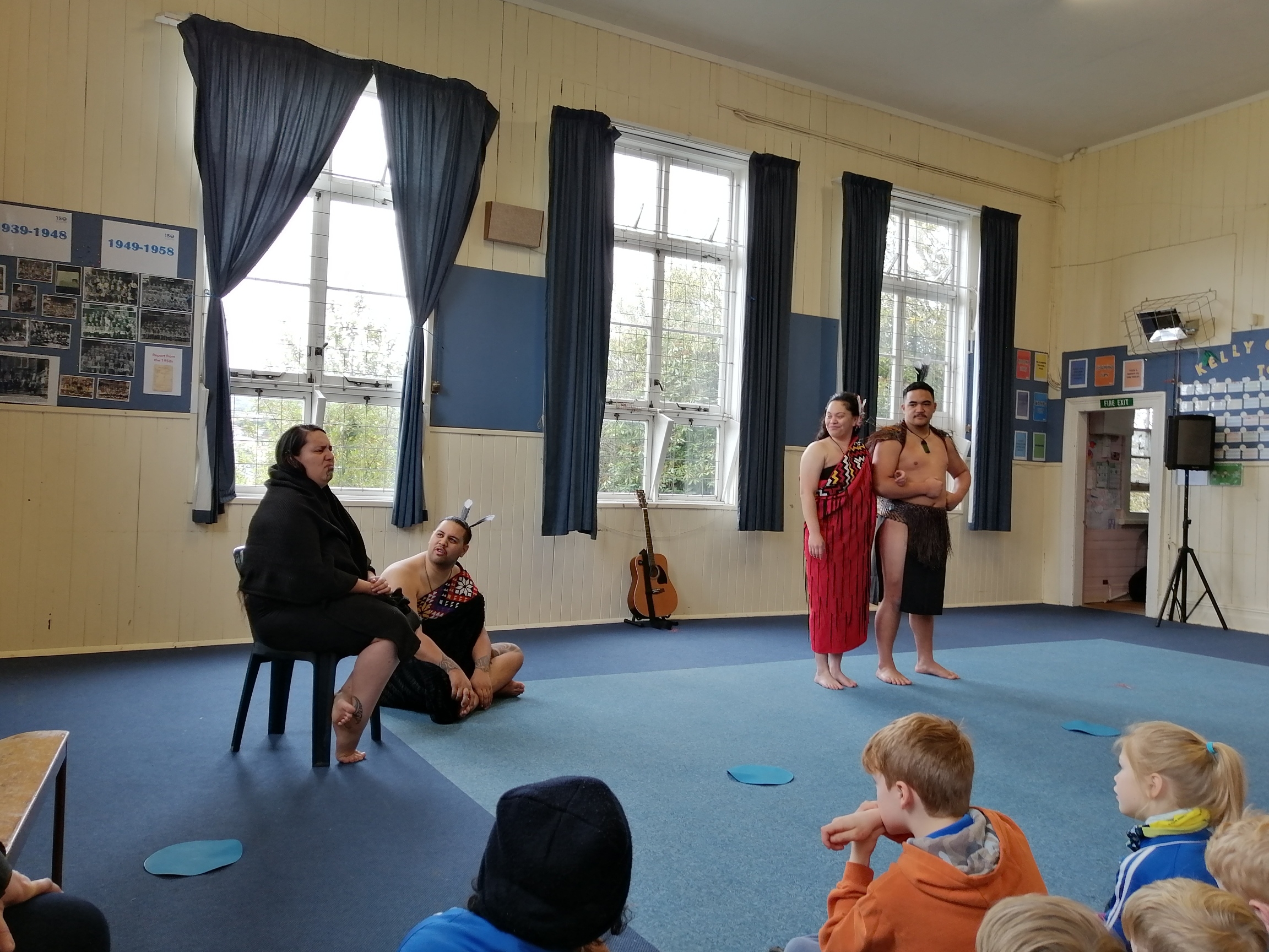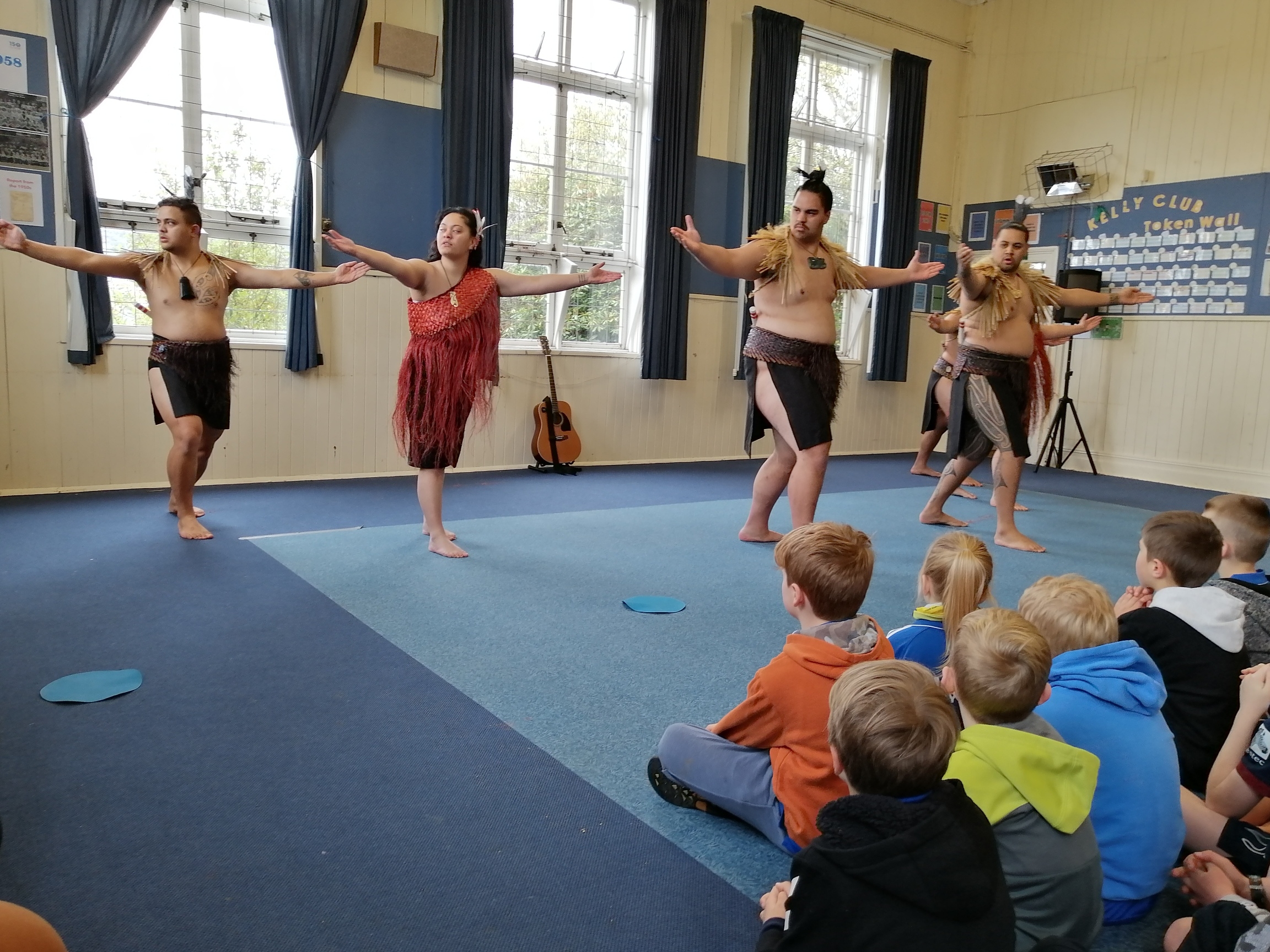 Our favourite performances were when they asked for boys to come up and copy what they did. Leon, Leo and Shaun were picked. It was hilarious.They showed us a weapon called a taiaha. One of the myths was about a girl out at sea and a boy who liked her but he could hardly see her because she always had to go see her family out at sea. So he went to someone who told him if you get her to drink this she will always be with you but she will never be able to go back to the sea.