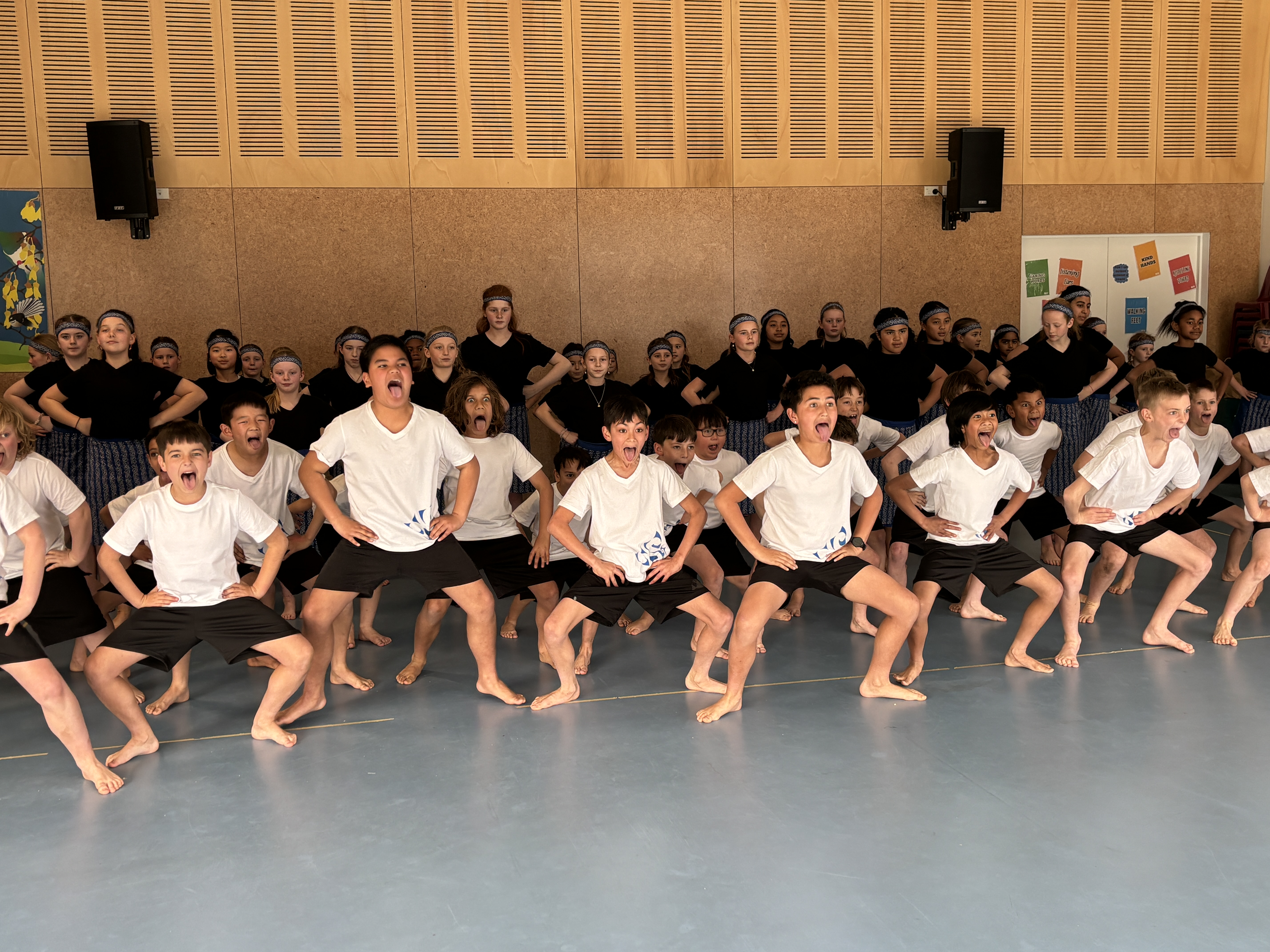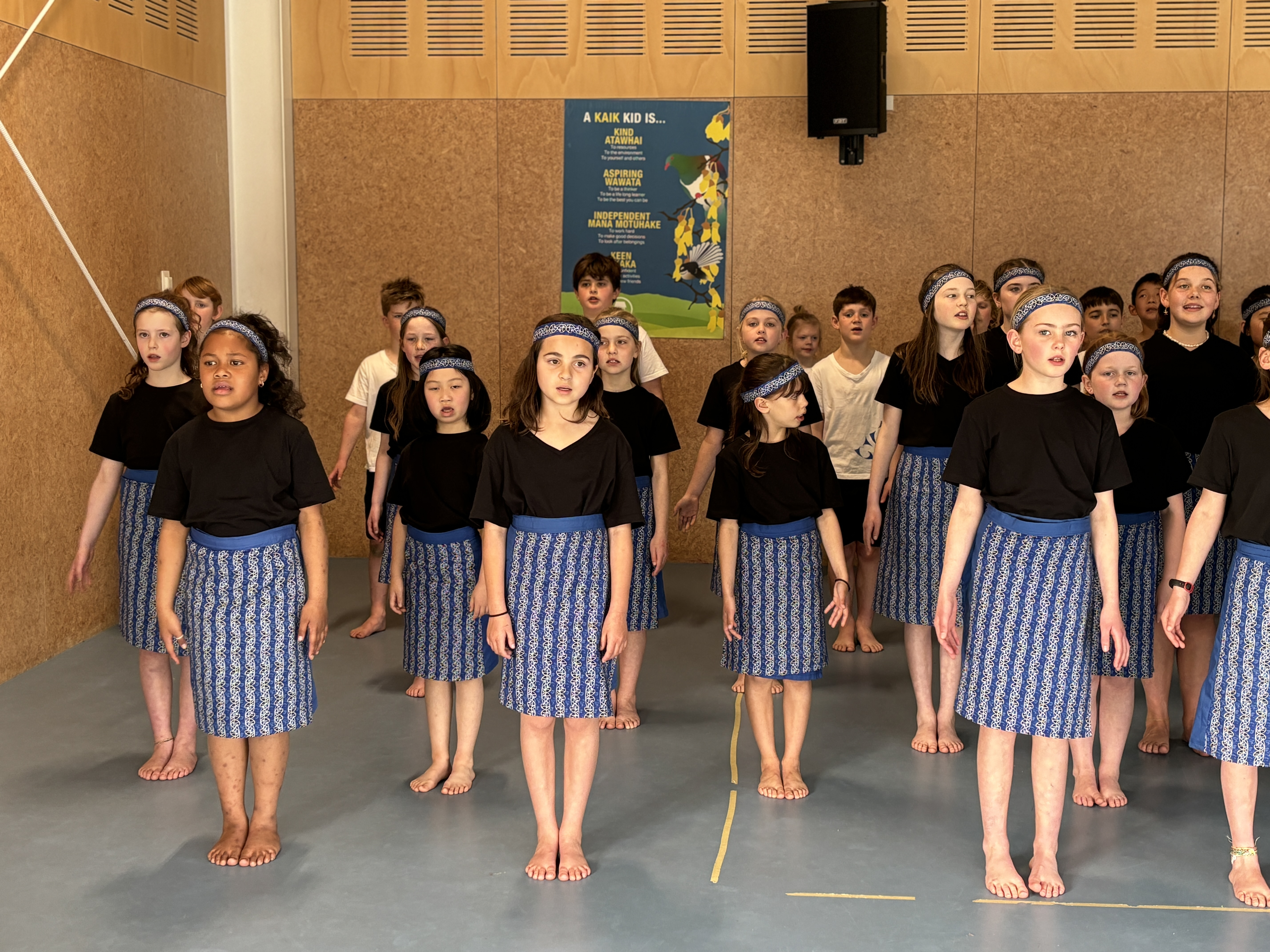 We would like to extend a special thank you to those who have supported us throughout this journey. A special mention goes to Grace, Anh, and Amanda, who dedicated countless hours sewing our beautiful new skirts. Their hard work allowed our tamariki to take the stage looking and feeling their best. We are also deeply grateful to the Kaikorai Parents Group, whose generous contributions provided the fabric for our skirts, the t-shirts, and the new shorts that completed our uniform. Your support enabled our group to represent our kura with pride and unity.