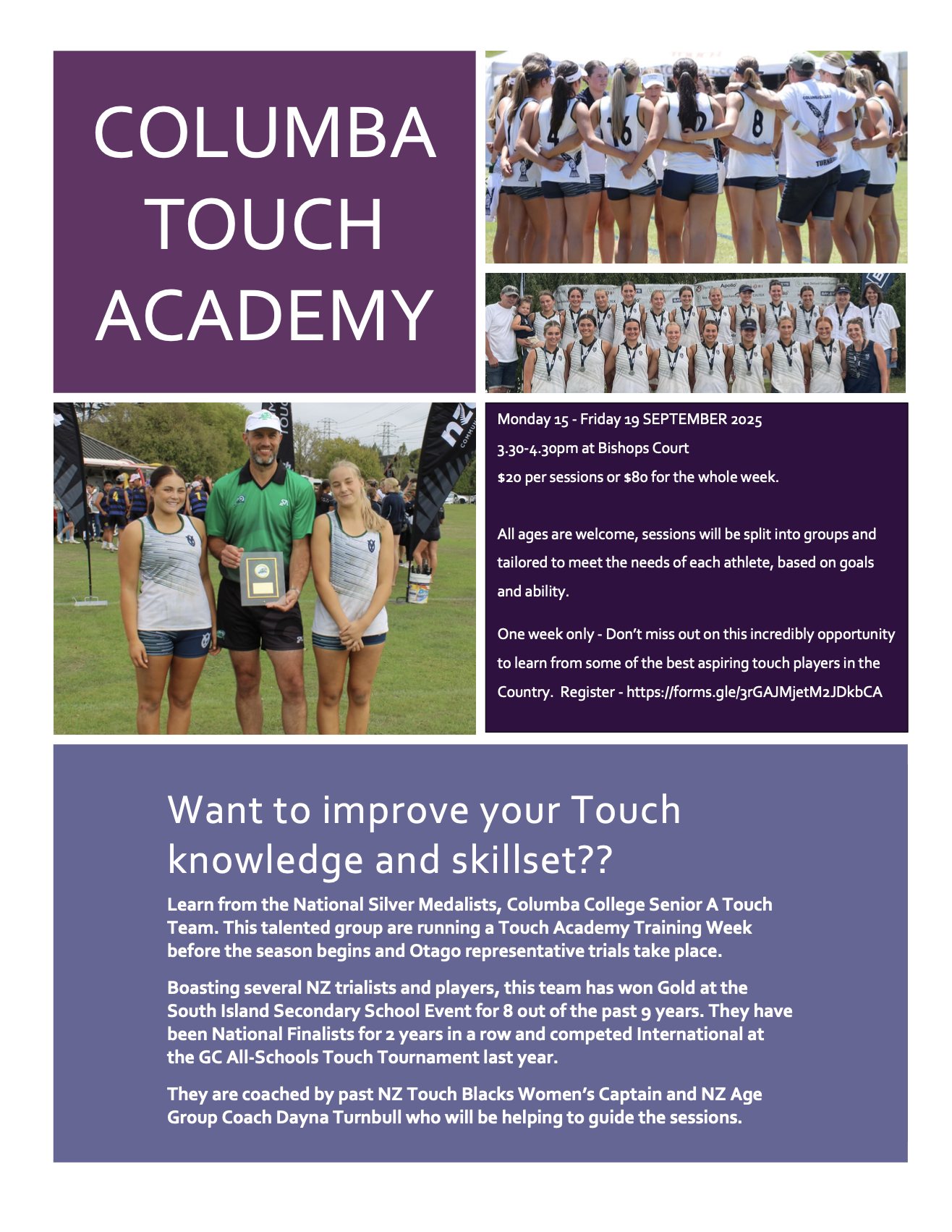 For one week only, this exciting opportunity is a chance to learn new skills and further develop your knowledge of the game before school teams are finalised and Otago age-grade representative trials take place in October.