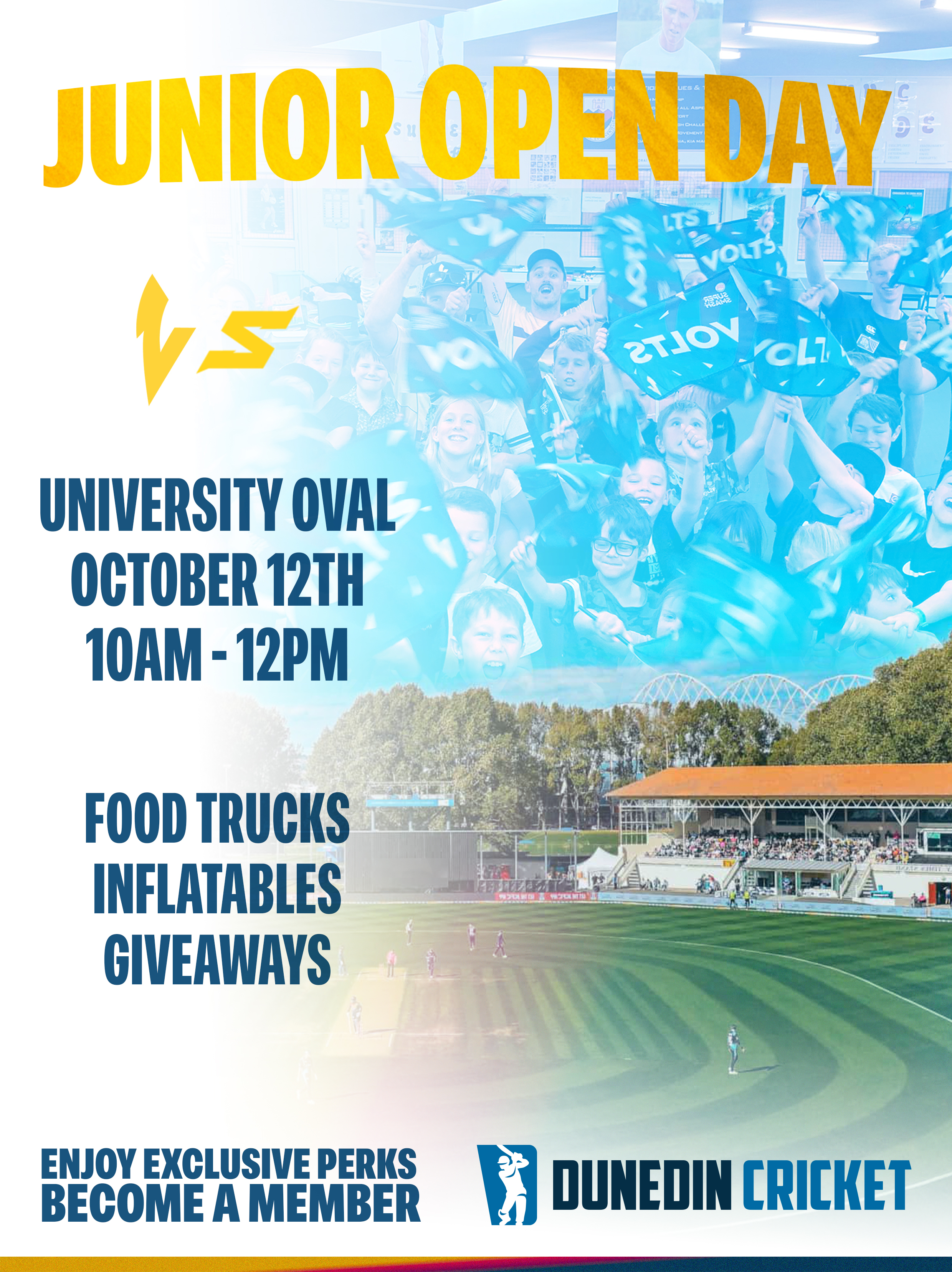 Bring the family along to meet local cricket clubs, connect with players, and enjoy a fun day out. Kids can try activities, meet Voltman, jump on the famous bouncy castle, and grab a snack from the food trucks. A great way for new families to explore cricket!