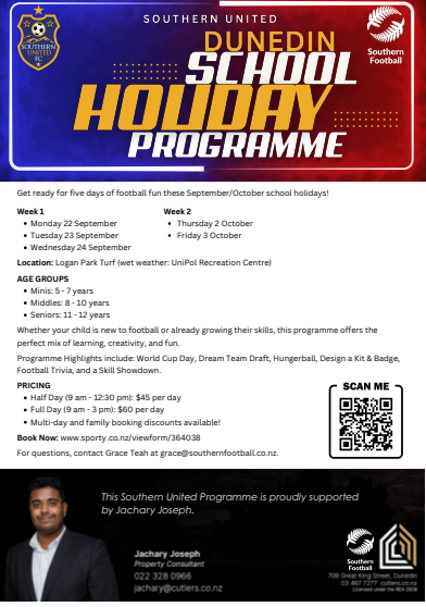 Enquiries: Grace Teah β grace@southernfootball.co.nz
