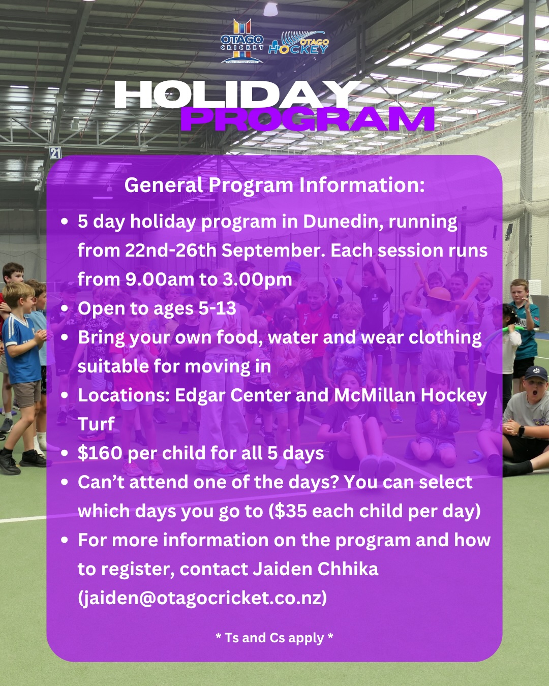 Otago Cricket is excited to be hosting another set of Holiday Programmes for the Term 3 holidays.