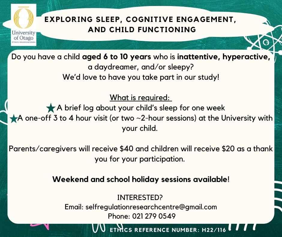 University of Otago Study - Exploring Sleep, Cognitive Engagement and Child Functioning - see attached poster