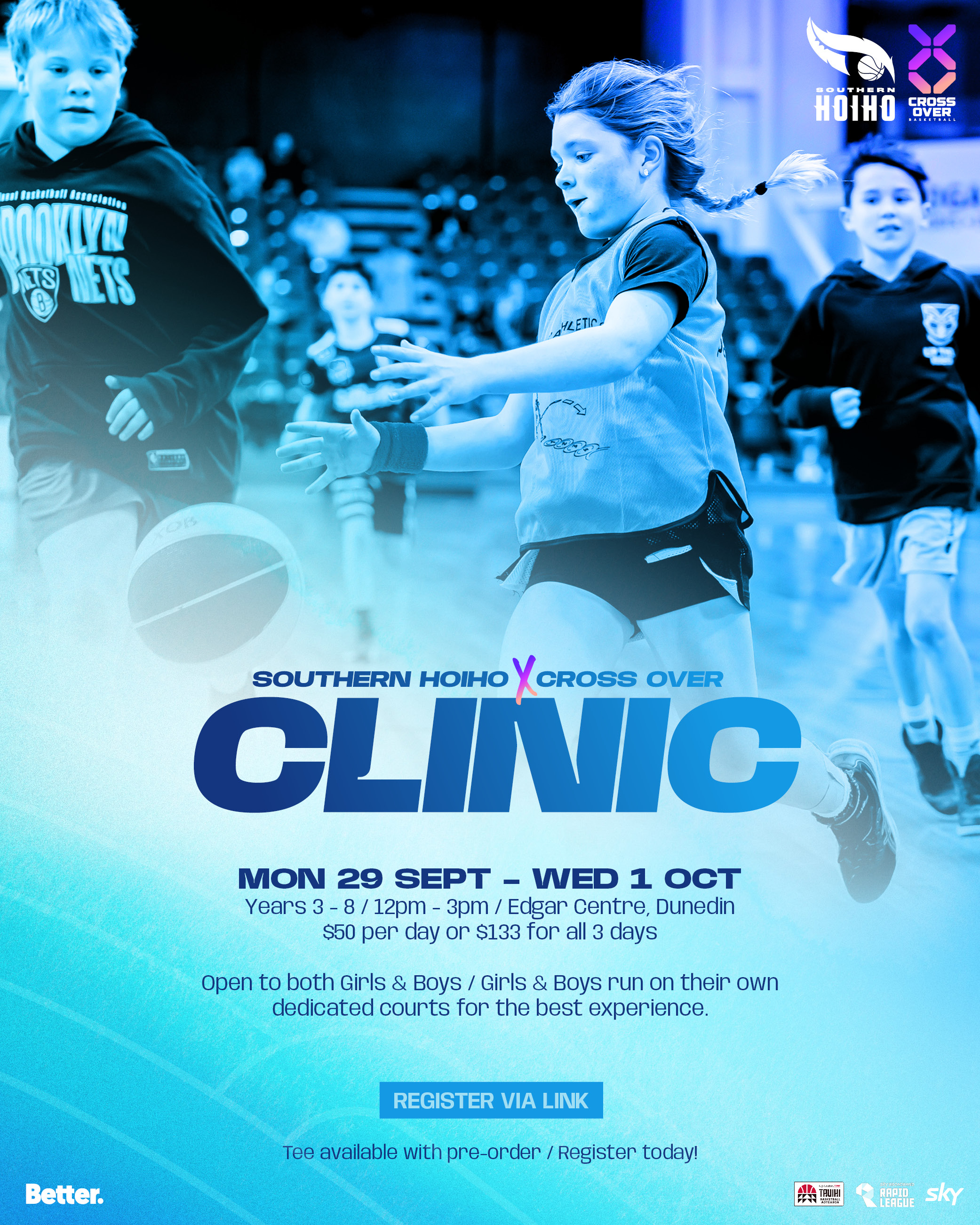 A unique opportunity to train with Cross Over coaches and Southern Hoiho players β some of the best basketballers in the South!