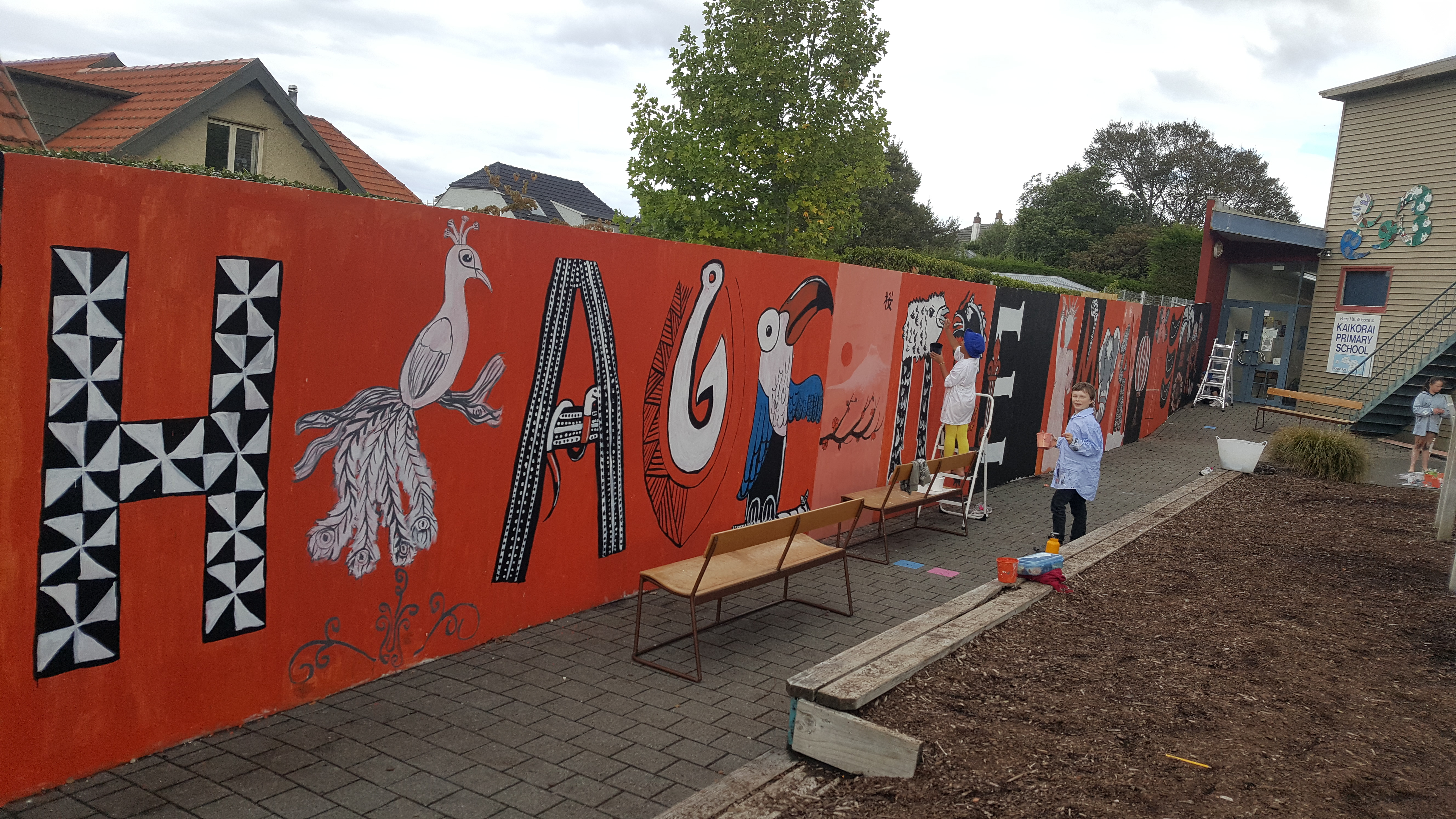 A big thank you to Otago Paint Solutions for supplying most of the paint. Bruce Mahalski for his tips of the trade and Room 2A for the muscles behind the painting – putting out and bringing in the benches and ladders each day.