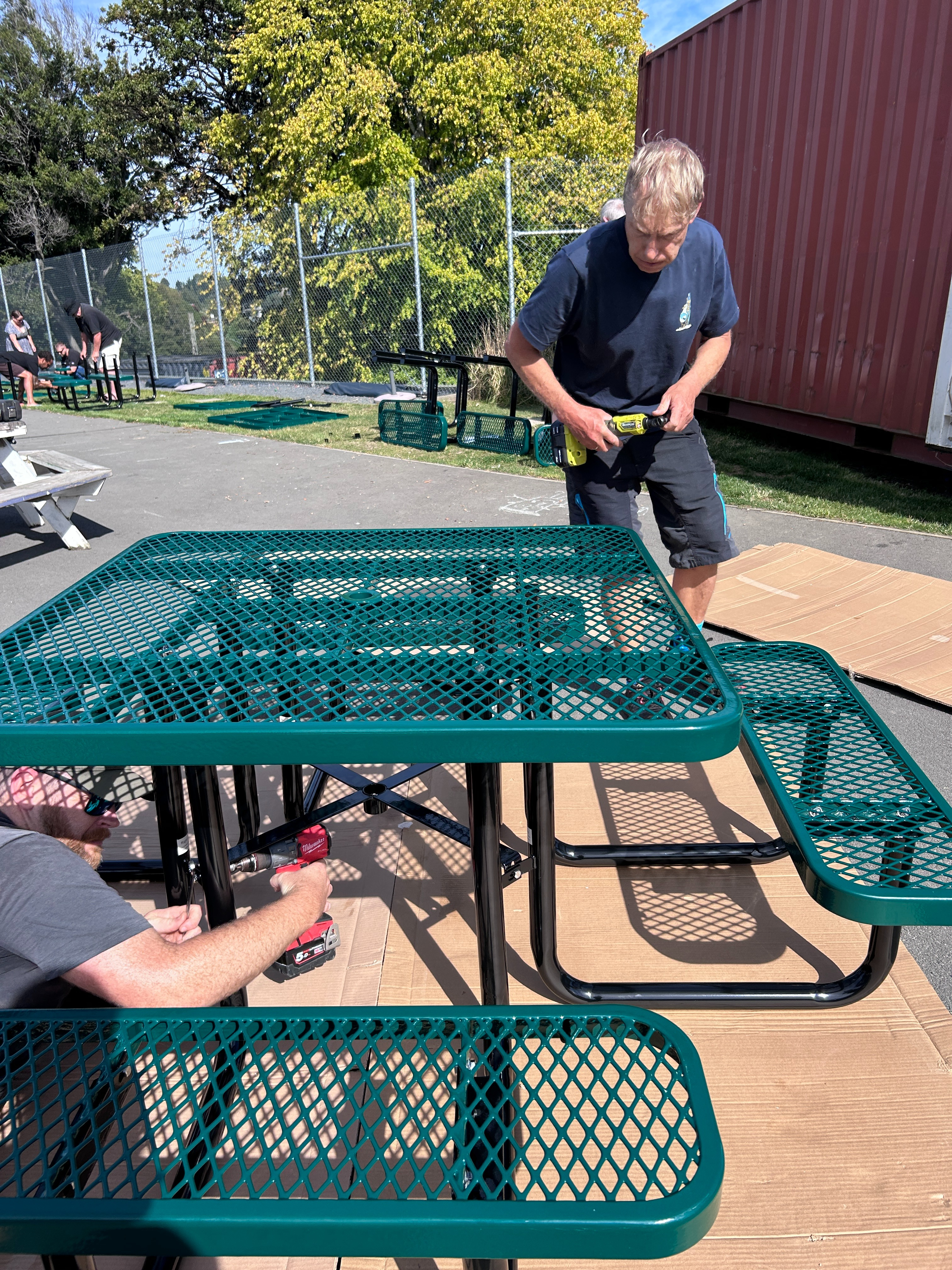 A huge thank you to everyone who came out for Sunday's workbee! It was amazing to see such a fantastic turnout, including a very helpful grandad. Despite the 25º heat, we worked hard to assemble our new tables, which are already proving to be a great addition to the school. We're also delighted that some of the old tables have found new homes, including 3 of the tables at the community gardens.