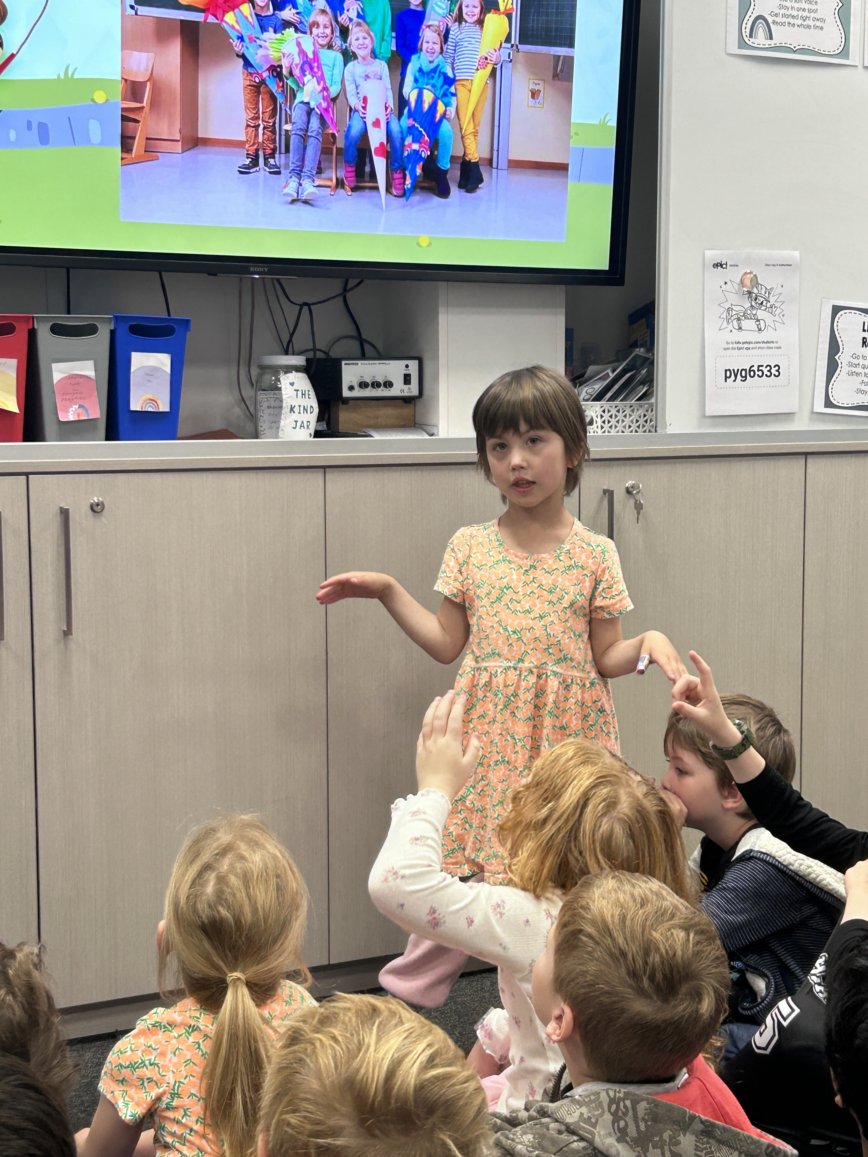 For the kindness she displays to her classmates. You make our classroom a lovely place to be.
