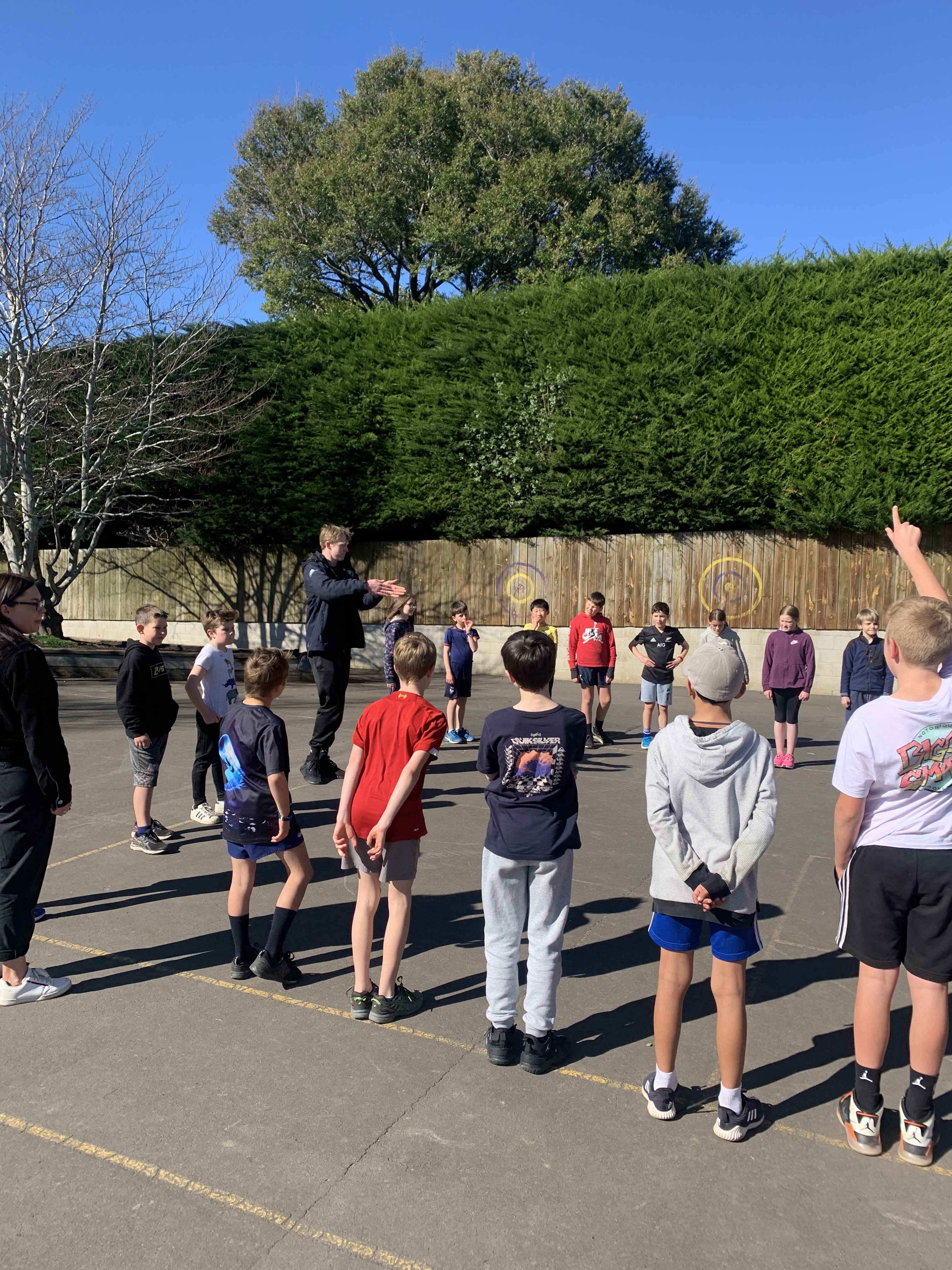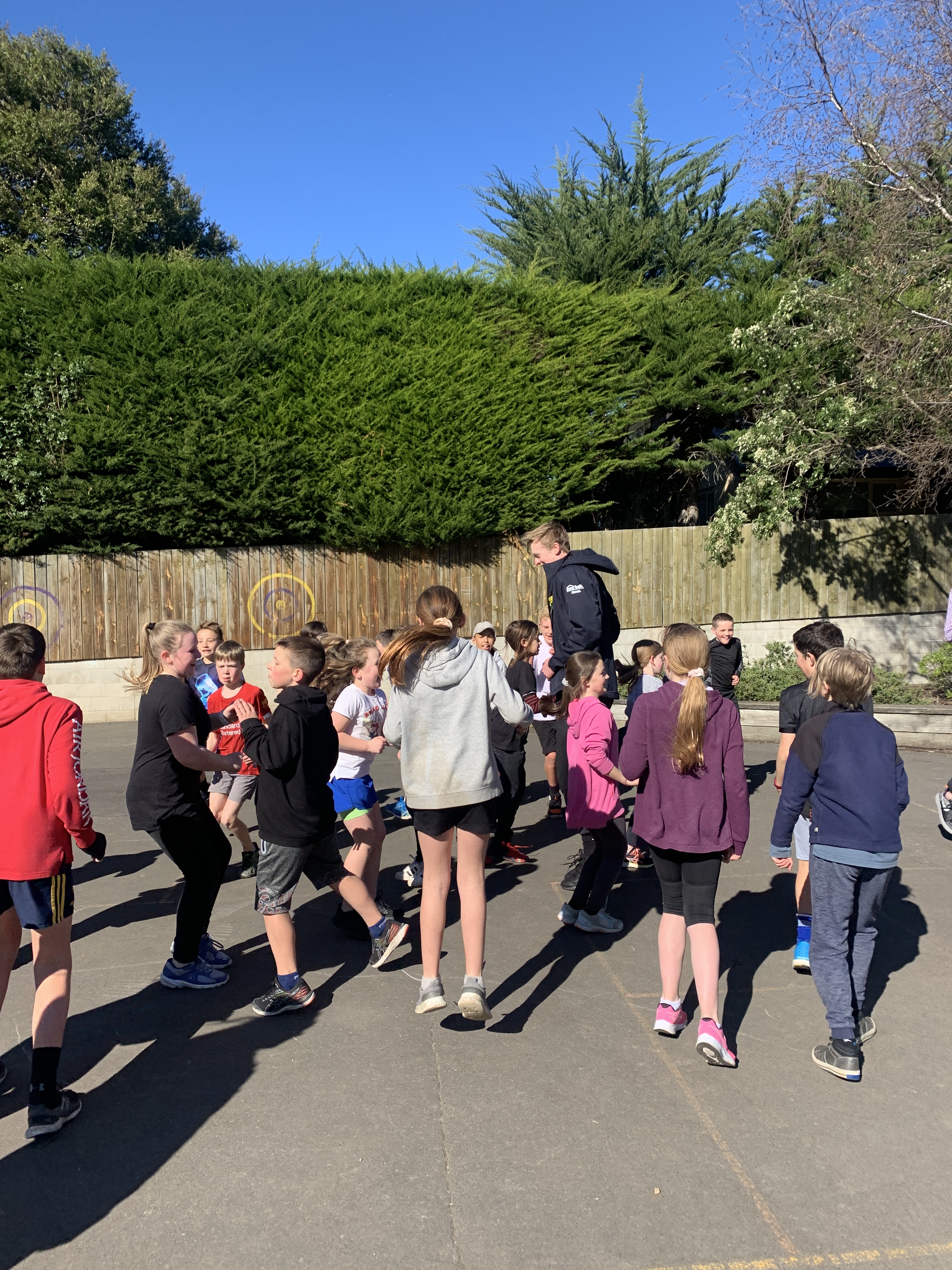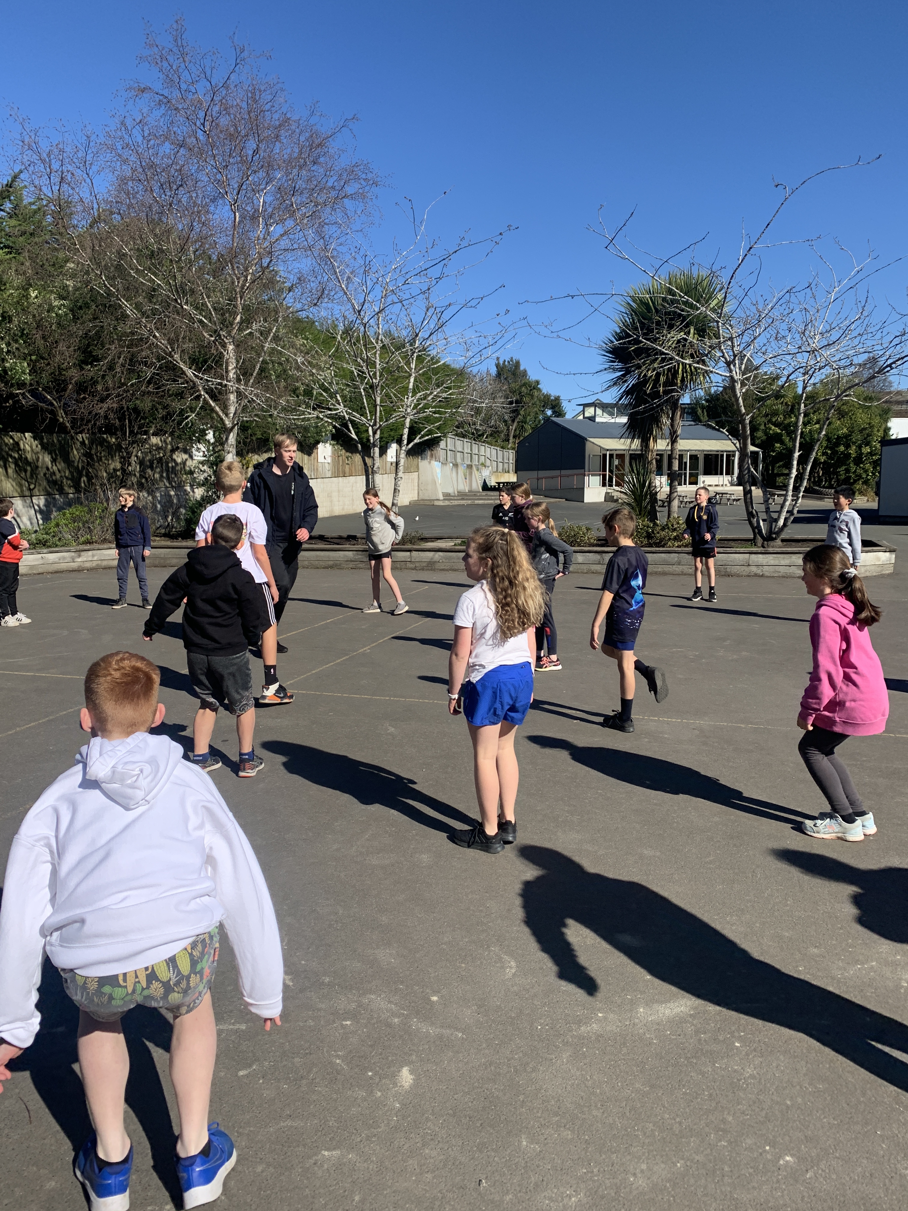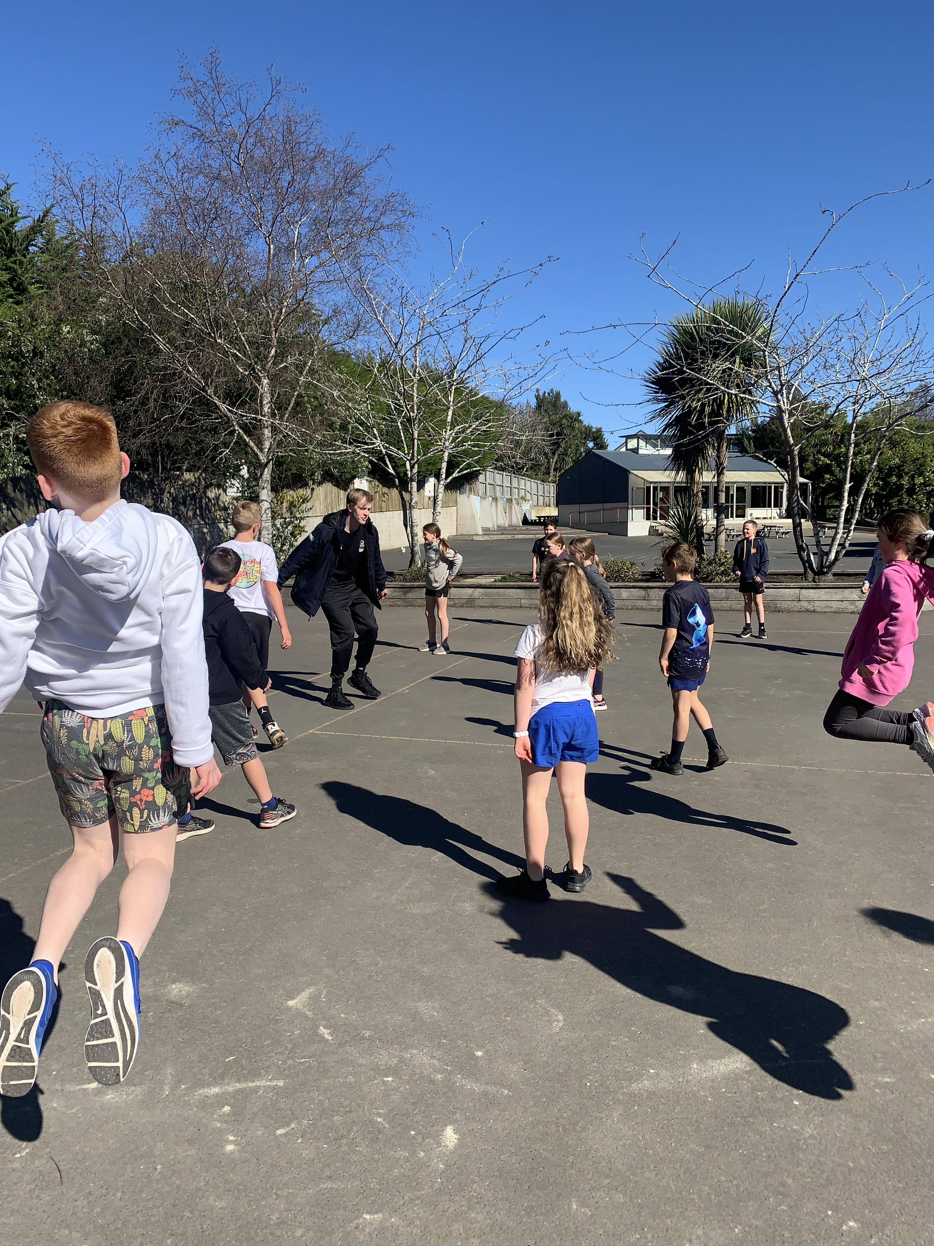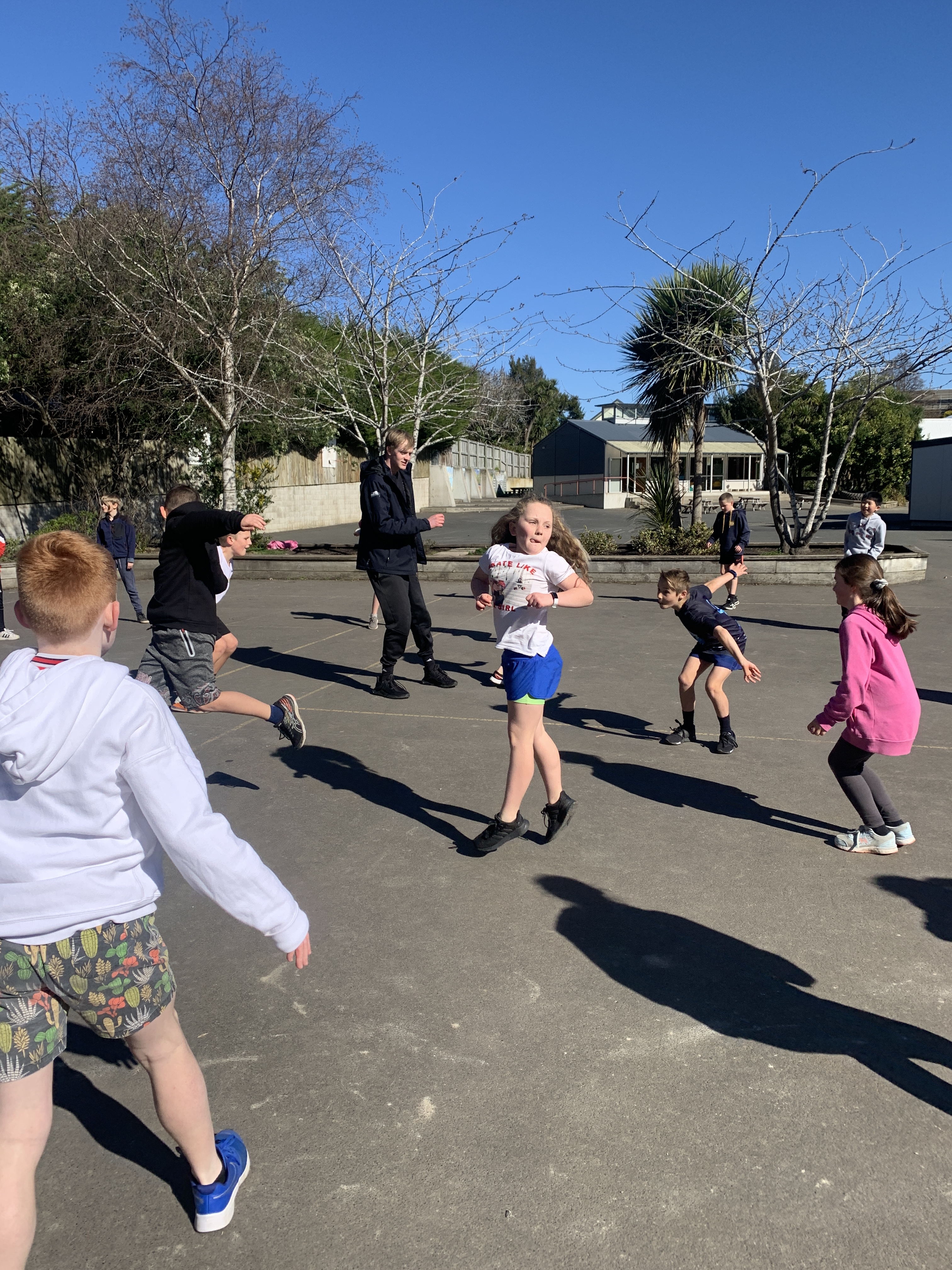 We have really enjoyed having the team from Otago Polytech taking all classes for the fundamental skills sessions. They have been learning and refining the basics of run - jump - throw. The team from OP has been really enthusiastic and encouraging and the seniors have especially enjoyed the lunchtime games they have involved themselves in.