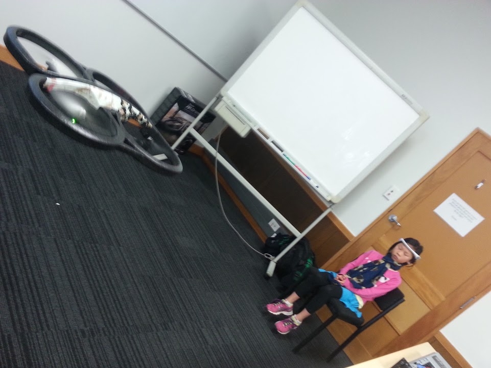 Then we went down stairs and they had a mind control pad where you wear something like a boomerang thing around your forehead soon it was my turn I tried it and you had to relax I relaxed so this thing that looked like a U.F.O buzzed up in the air and down again.