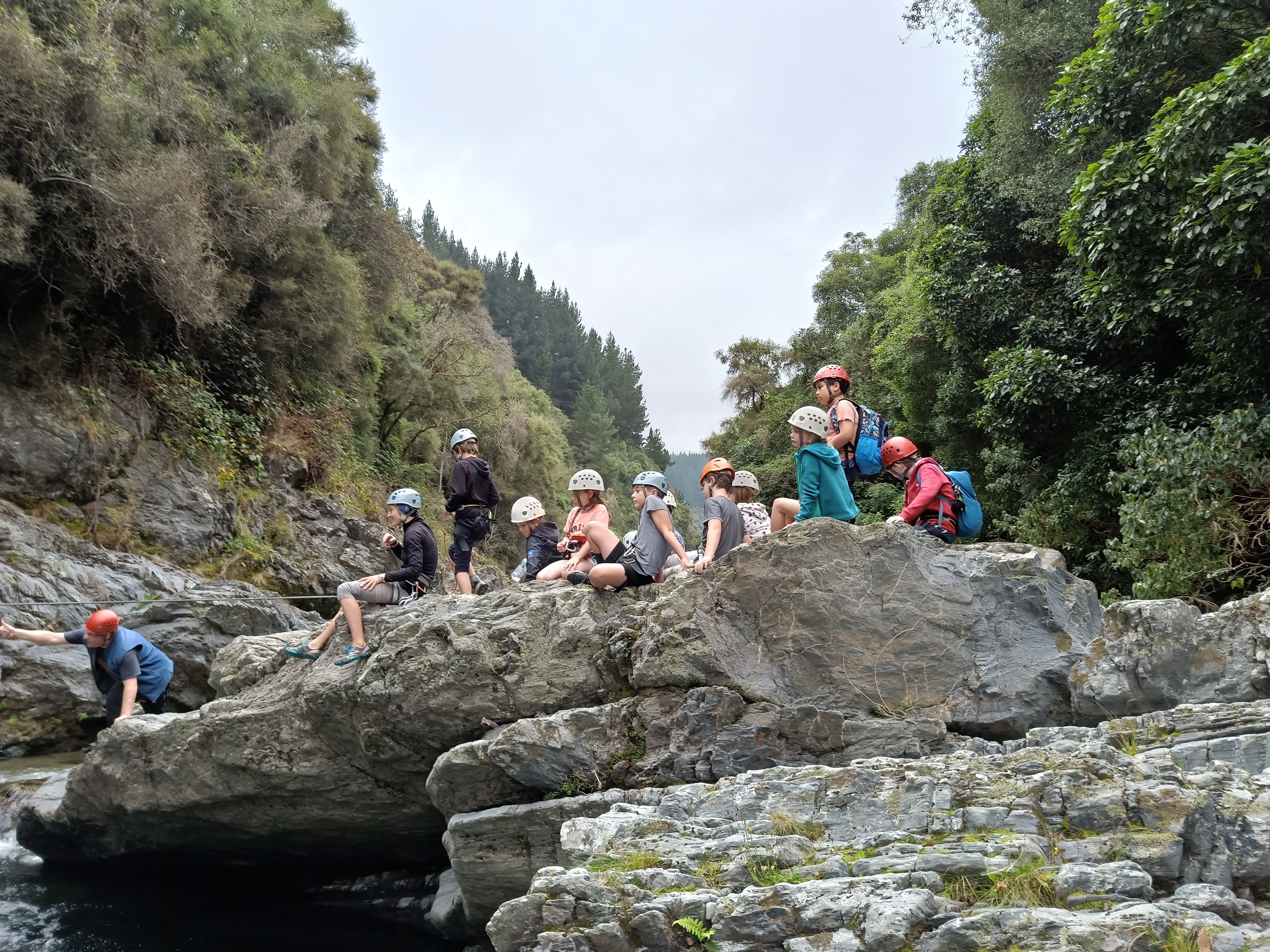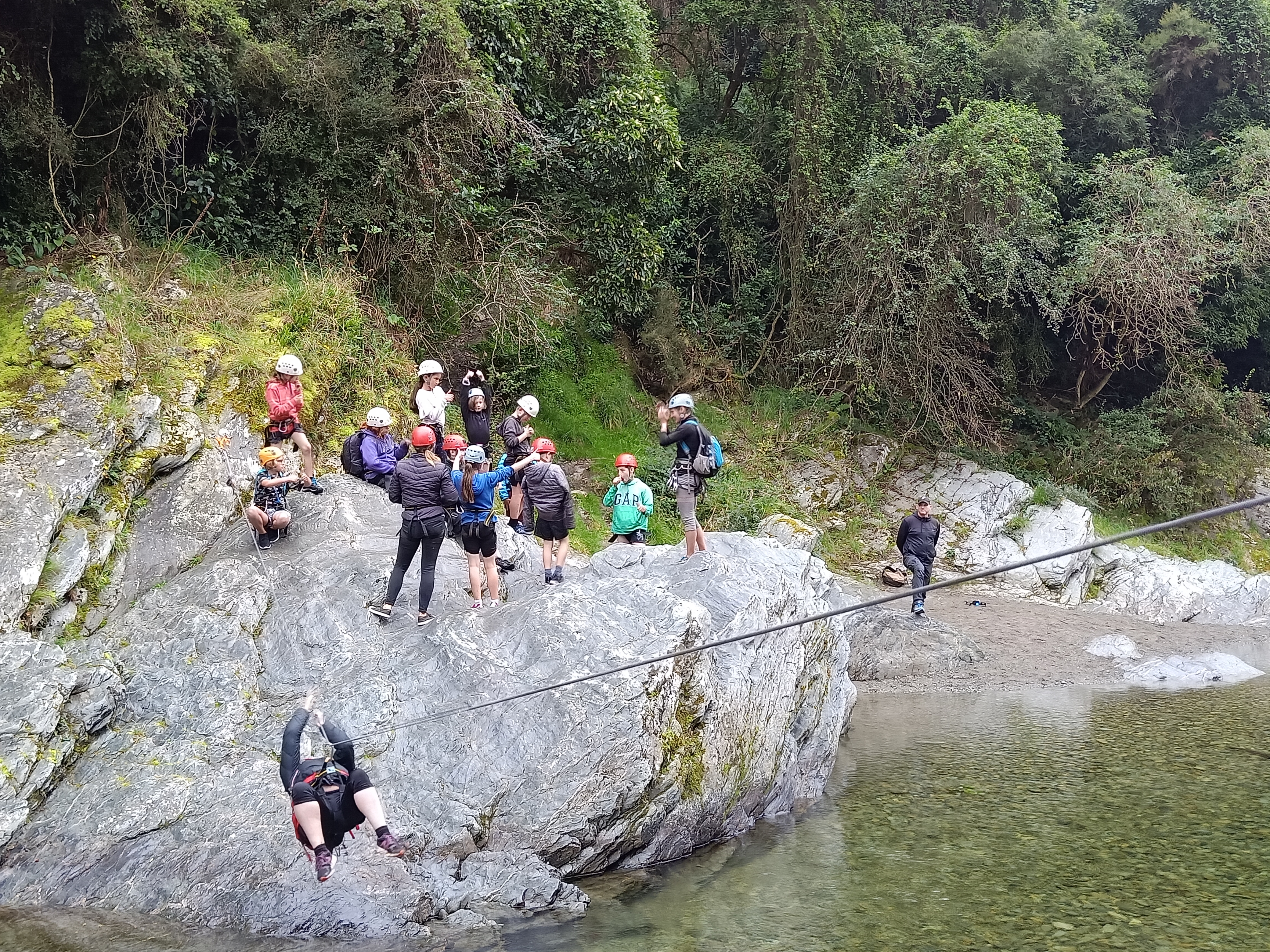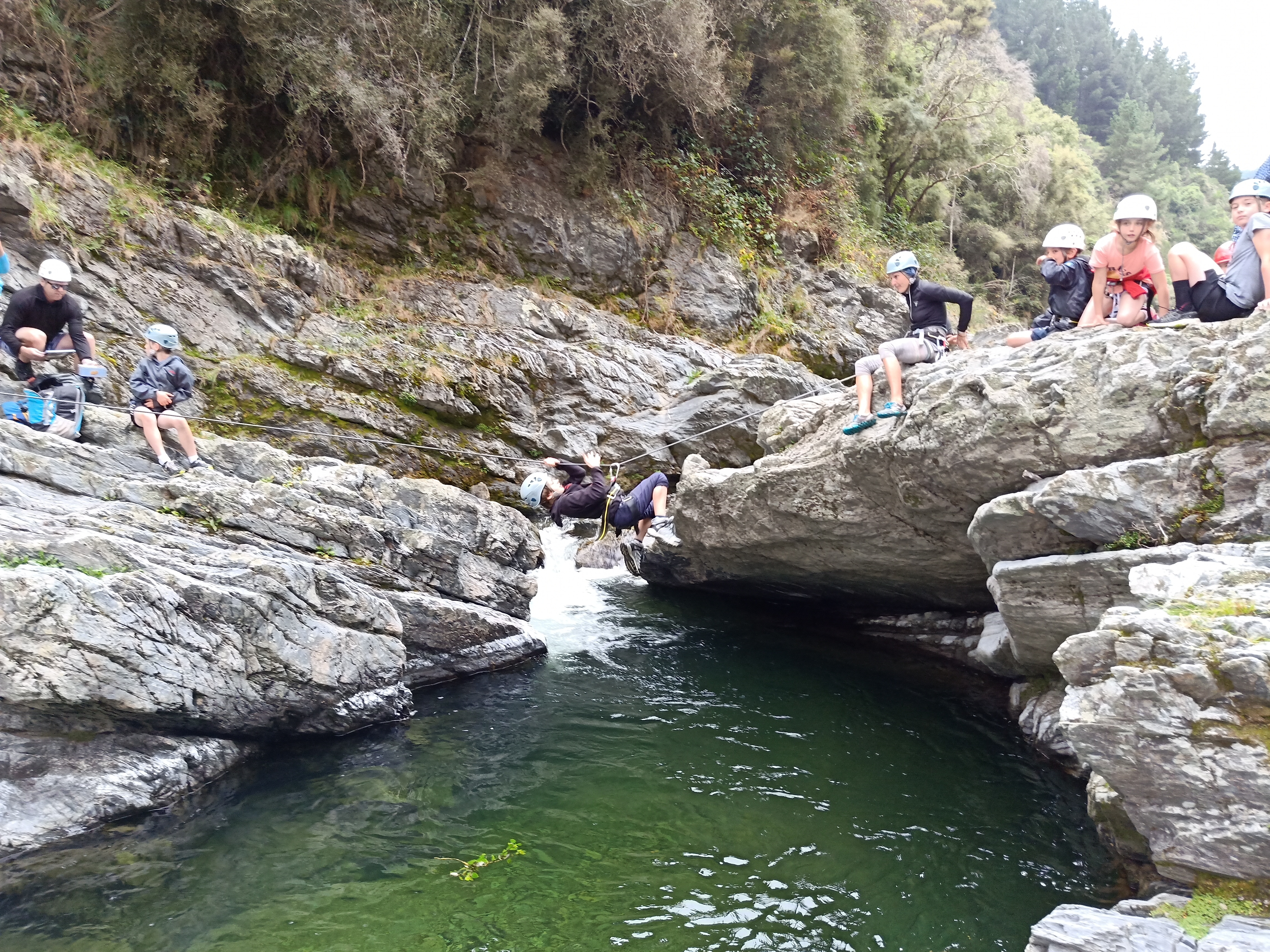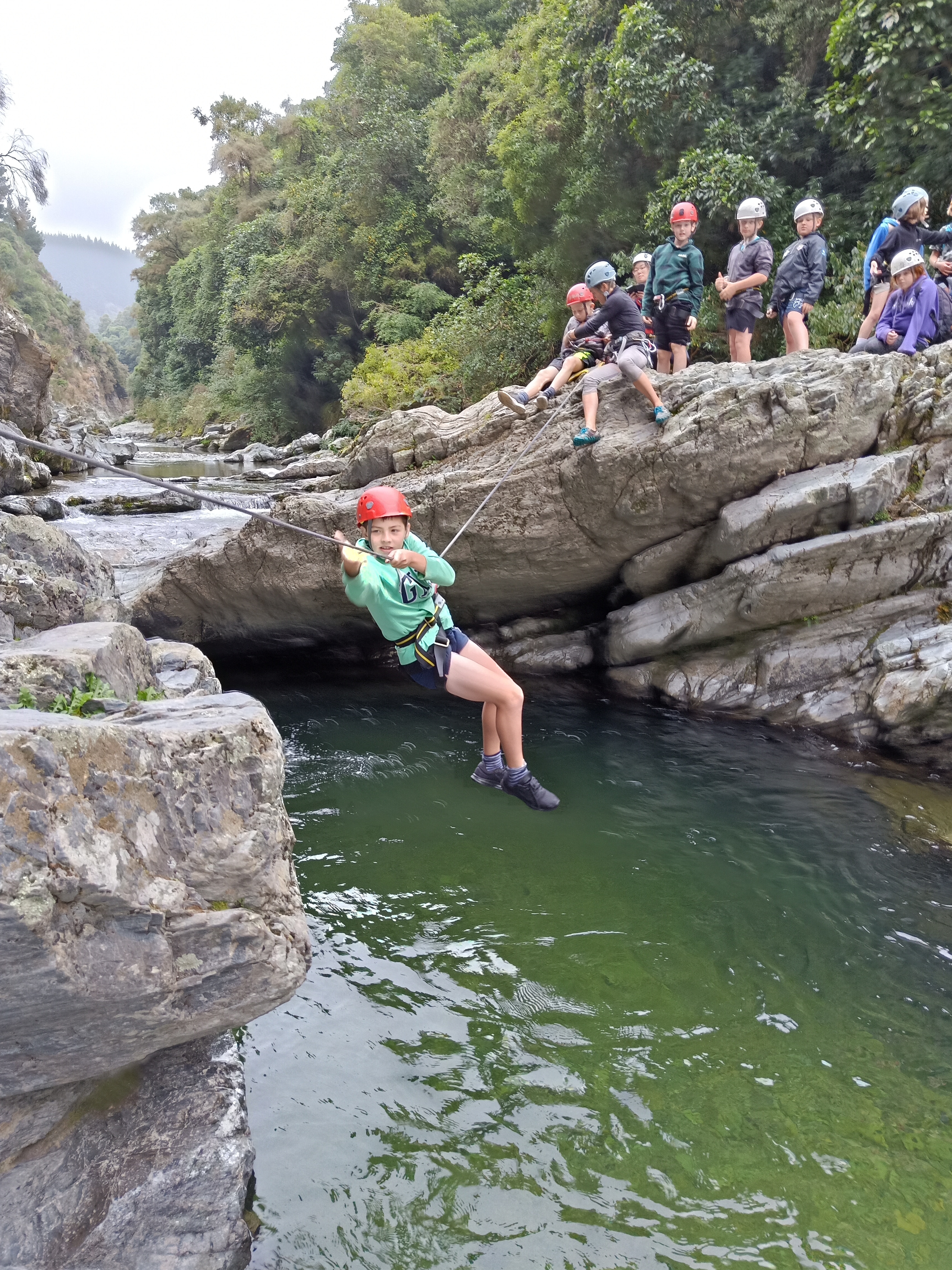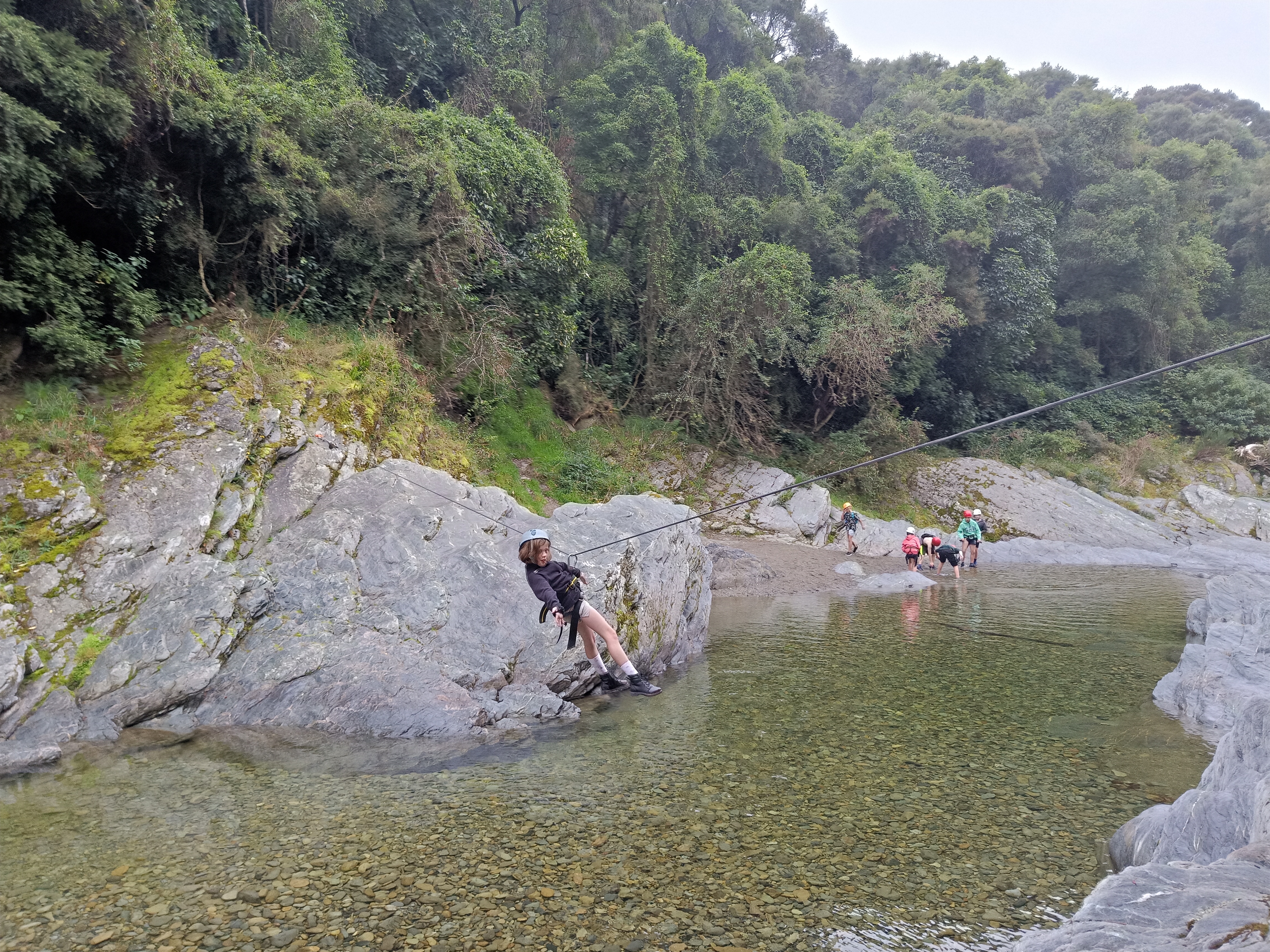 The children walked down a river with some deep crossings to get to the poet Mrs Gillies' house, where she read us some poems and her daughter serenaded us with a song. They covered themselves in soap and flew down the waterslide. They created new and advanced technology to float in the river and challenged themselves on the confidence course. Children climbed and clambered over rocks and gorges using ropes and carabiner clips, many abseiling for the first time. Many children overcame a fear of heights and pushed themselves much further than they ever thought possible. Children sailed in the breeze and kayaked through the water. They cooked on coals and smothered their faces in smores and sticky marshmallow.