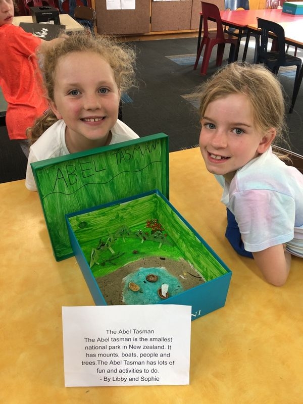 The year 5’s and Room 4’s year 4 group had a great week together while the year 6’s were on camp. On Tuesday we explored the thirteen national parks of New Zealand. We had to find these on a map and look at all the activities we could do there. A popular choice was the Abel Tasman national park.