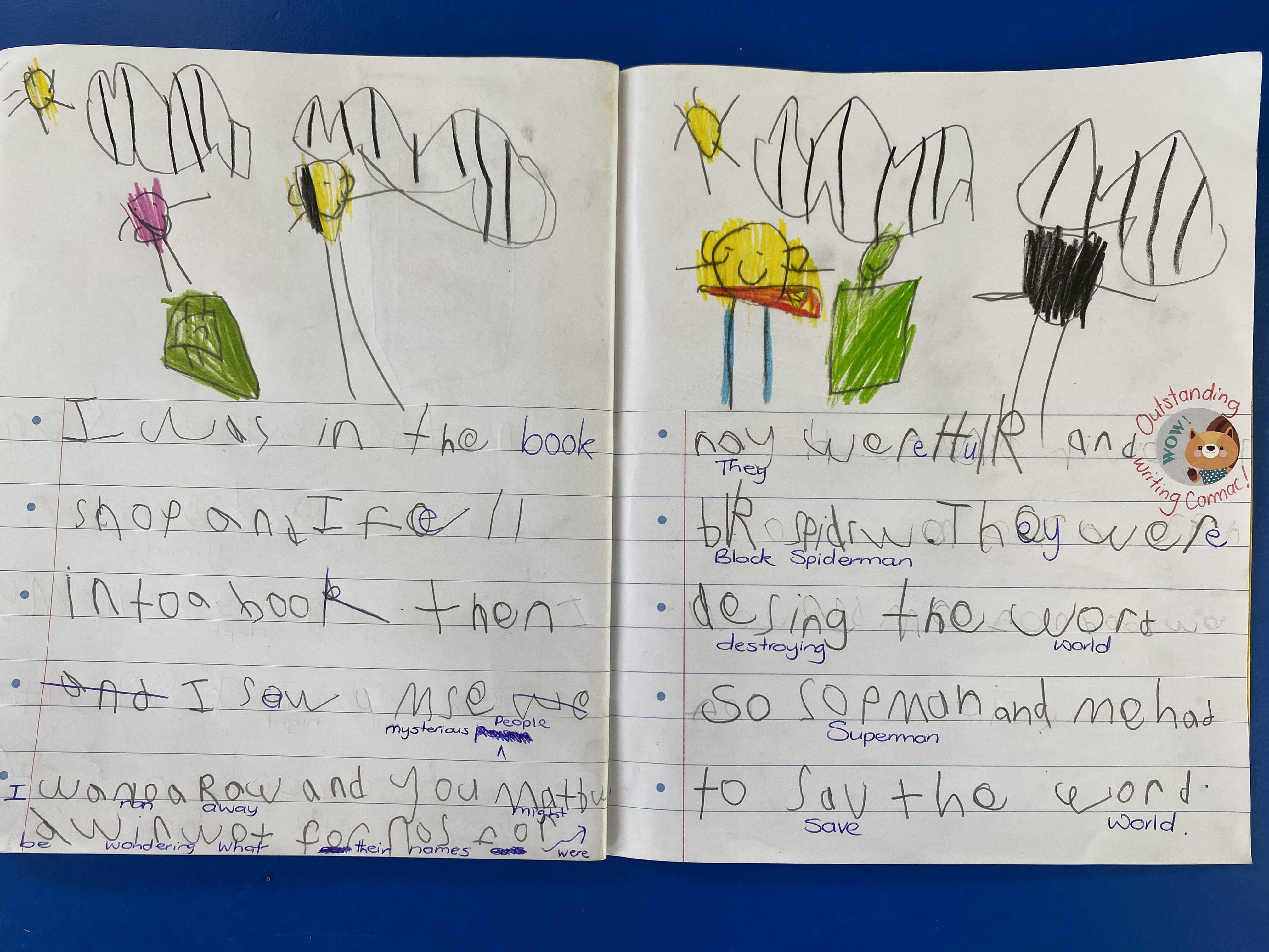 My favourite part of the term was when we retold the story called “Adventures in the Molar System''. One day we might be a famous adventurer in the molar system movie company. We were able to use water colours and make covers to complete a whole entire book.