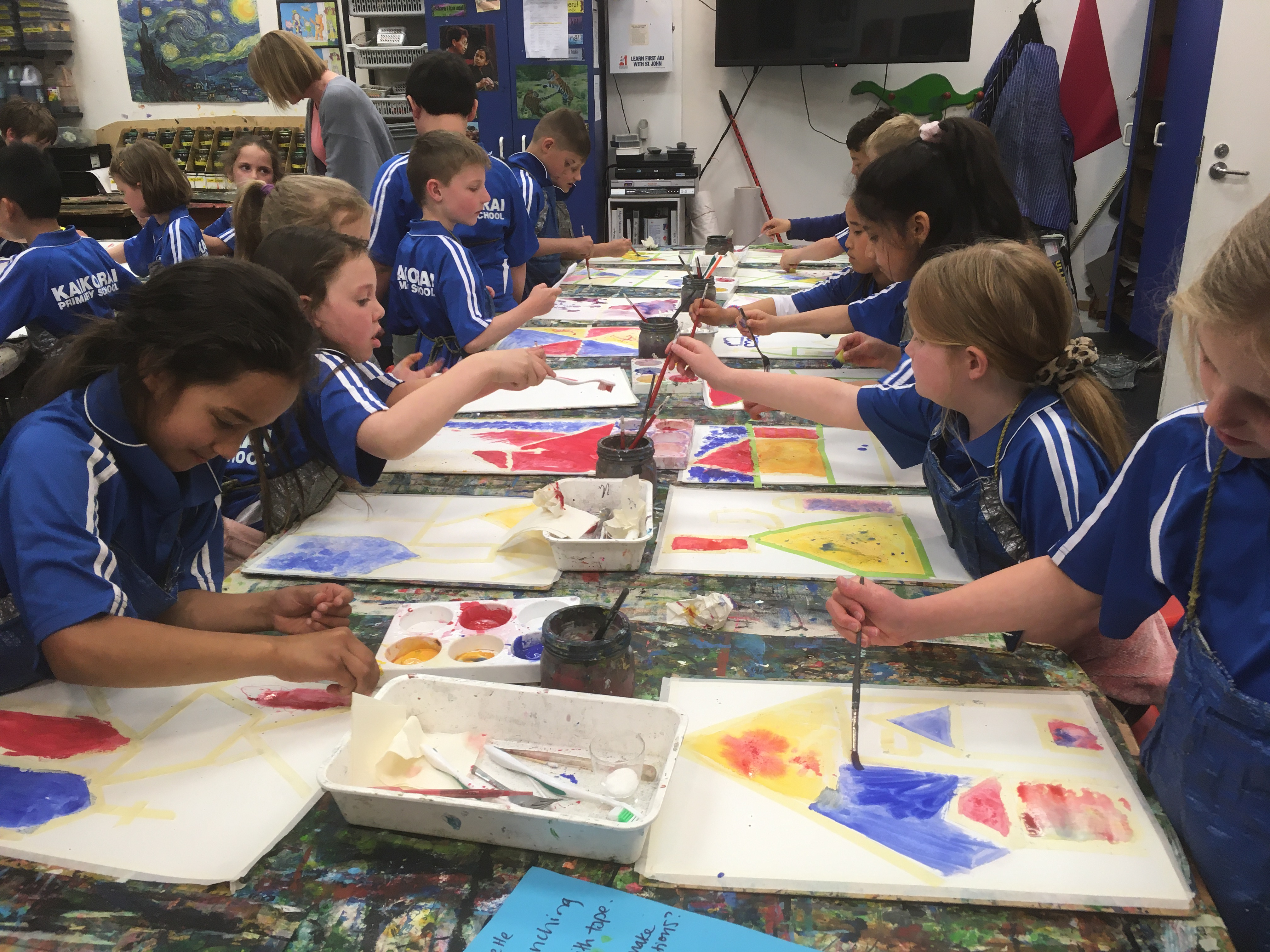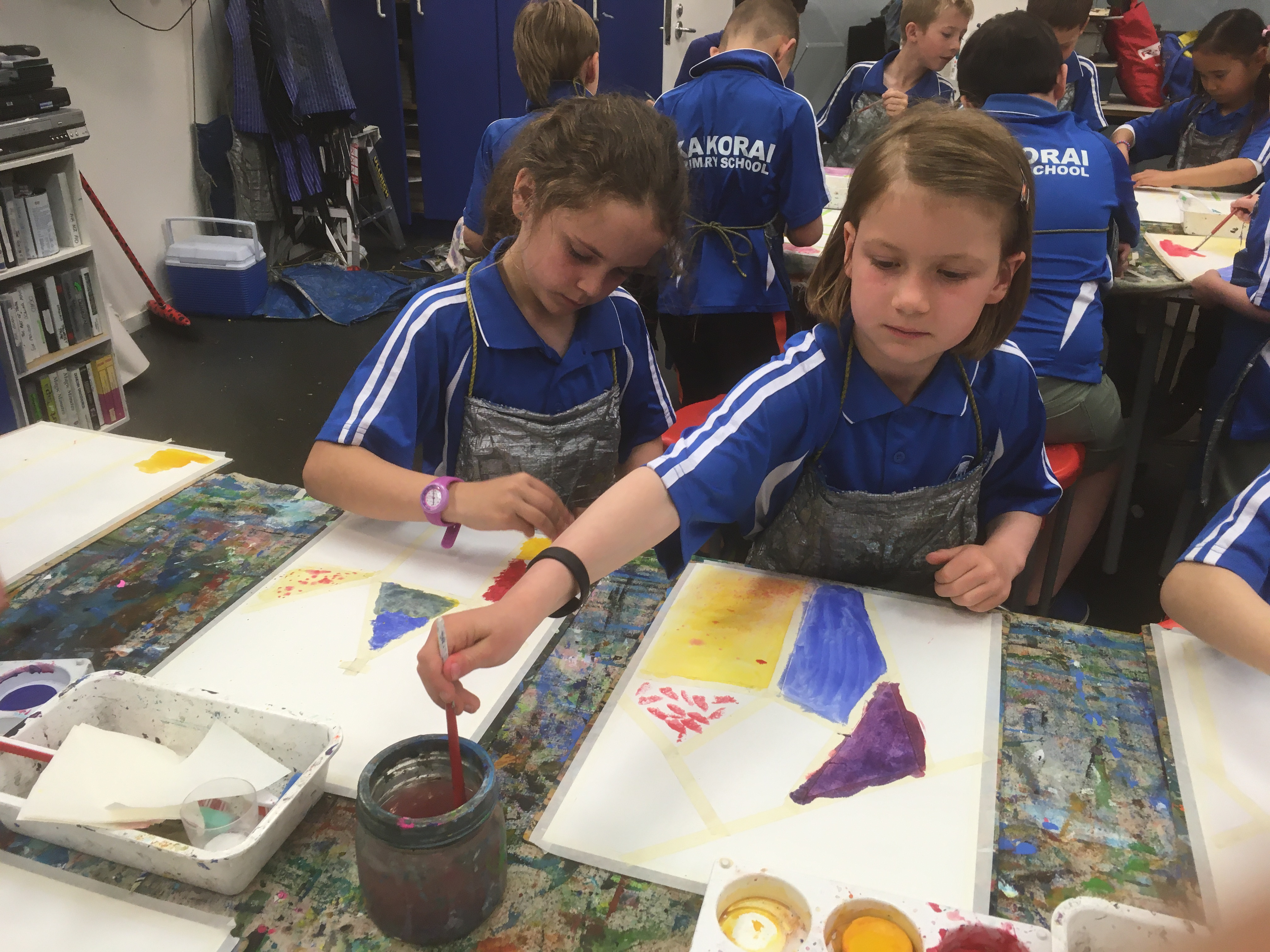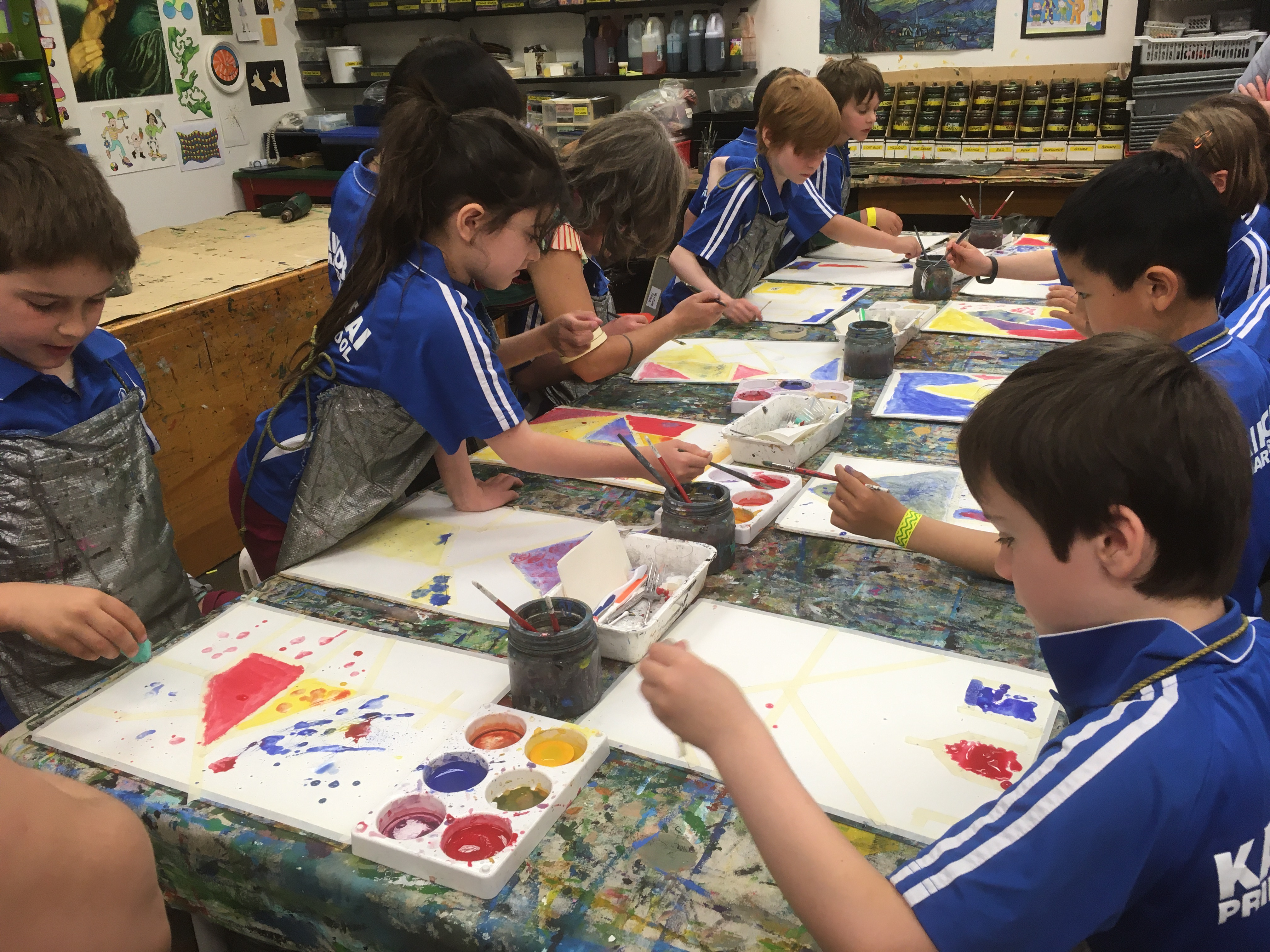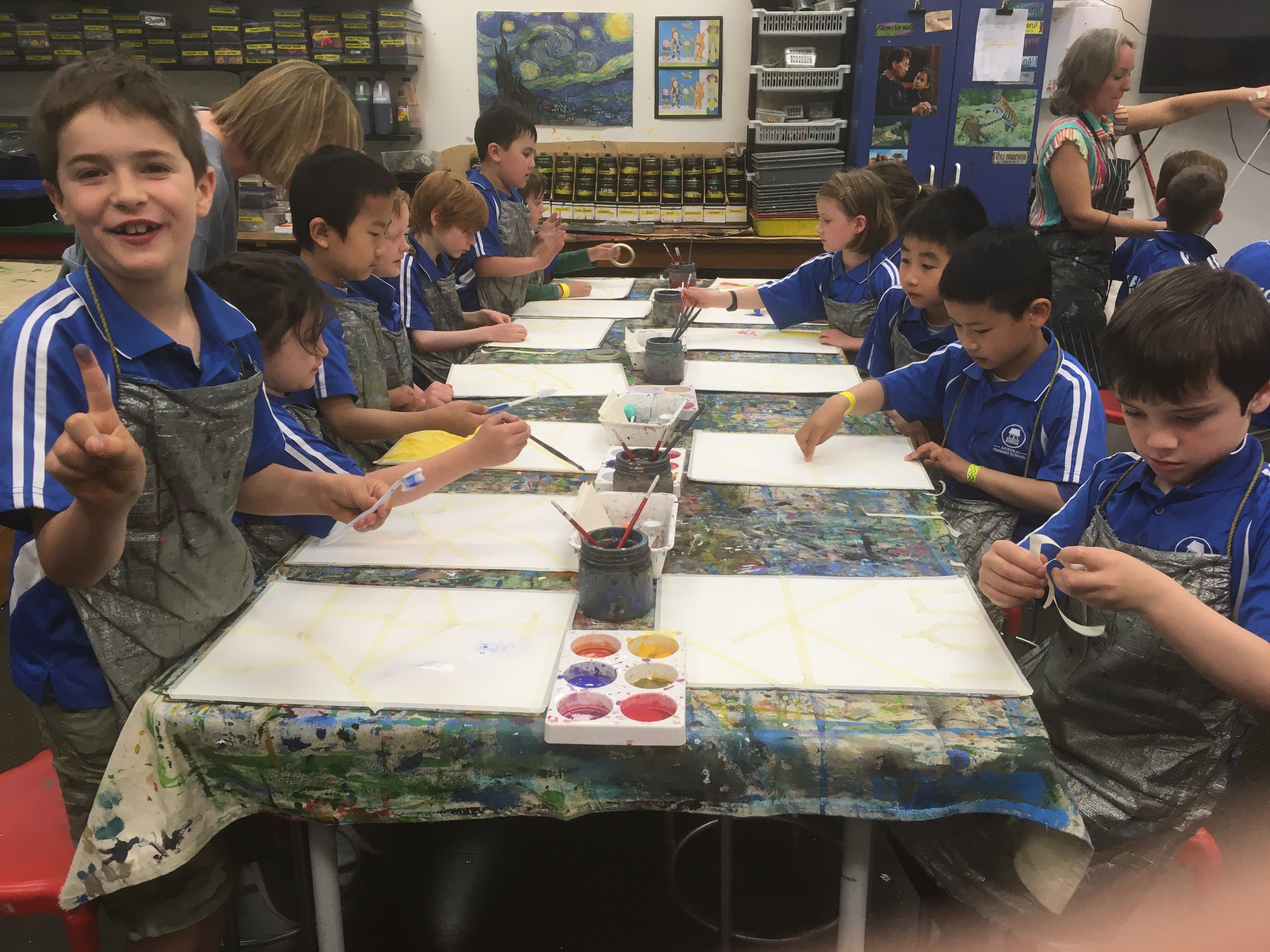 Room 6 squeezed in an art gallery visit in week 8 and worked with Jen Boland. After having a careful look around the art gallery, travelling from country to country, they created a cityscape using a range of painting techniques. It was a great way to finish the year!