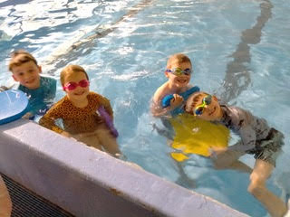 We have been swimming. I like floating with my friend Freddie. By ManaiaAt swimming I love diving off the side of the pool and floating on my tummy. By Freddie