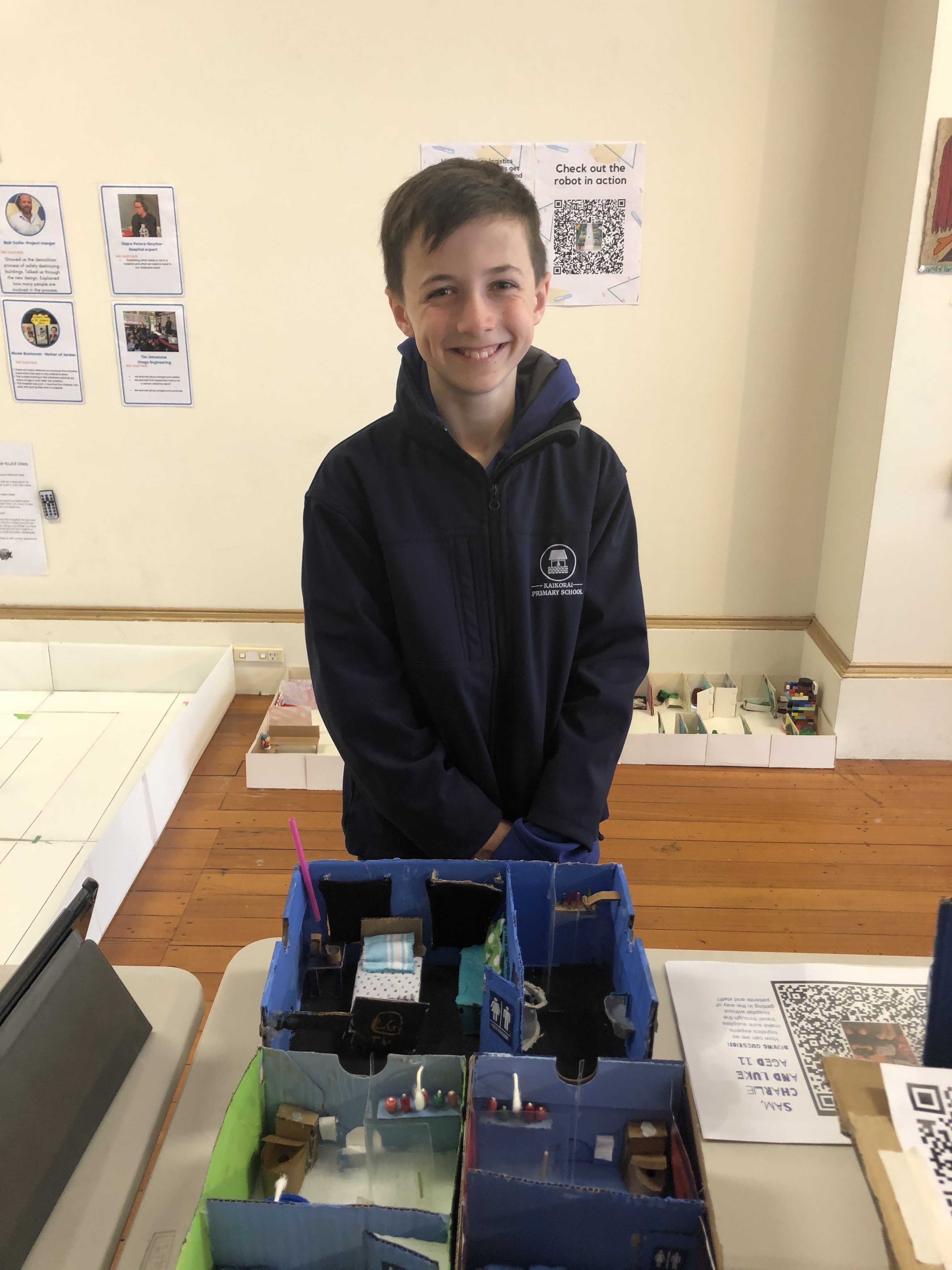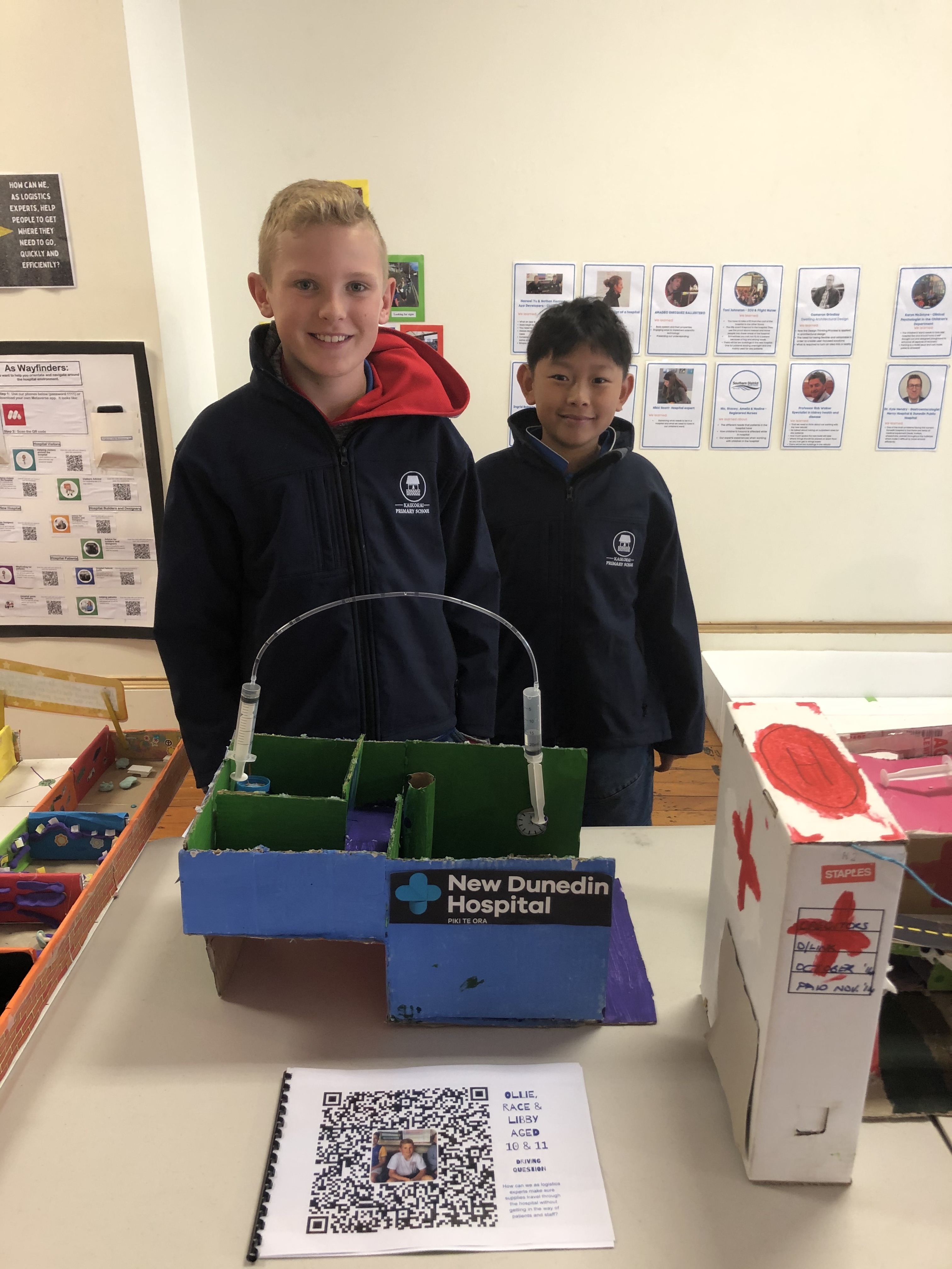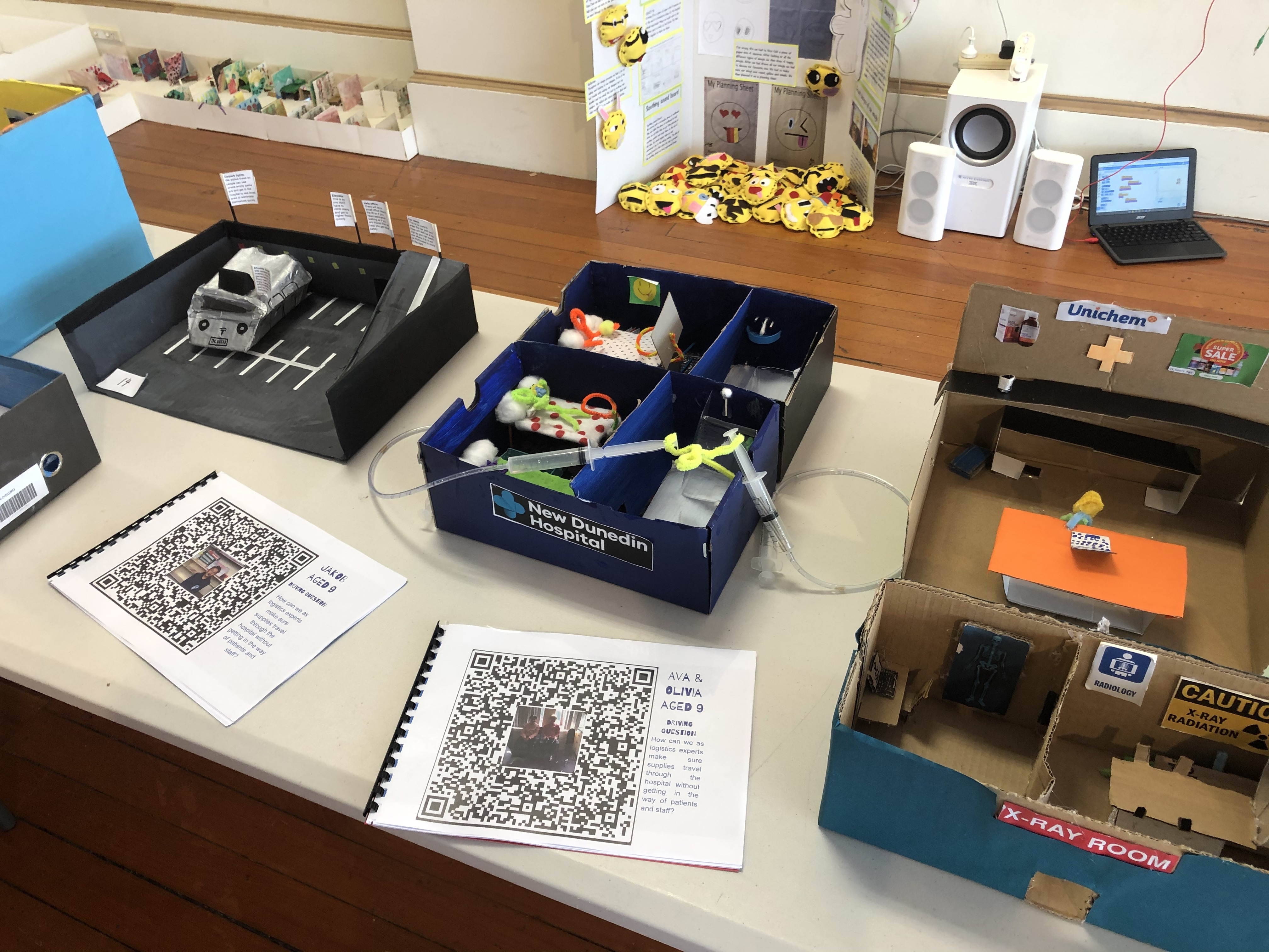 The exhibition held in the Dunedin Community Gallery was a huge success with work from each class being showcased. The Hospital community was amazed at the innovative ideas the kids were able to come up with and are even talking about changing some of their planning to include these. One idea included adding a holographic screen in the walls to make the patients feel at ease when visiting the hospital. We are very proud of the students who represented Kaikorai School down at the gallery, they showed confidence and initiative when showing the public around the gallery.