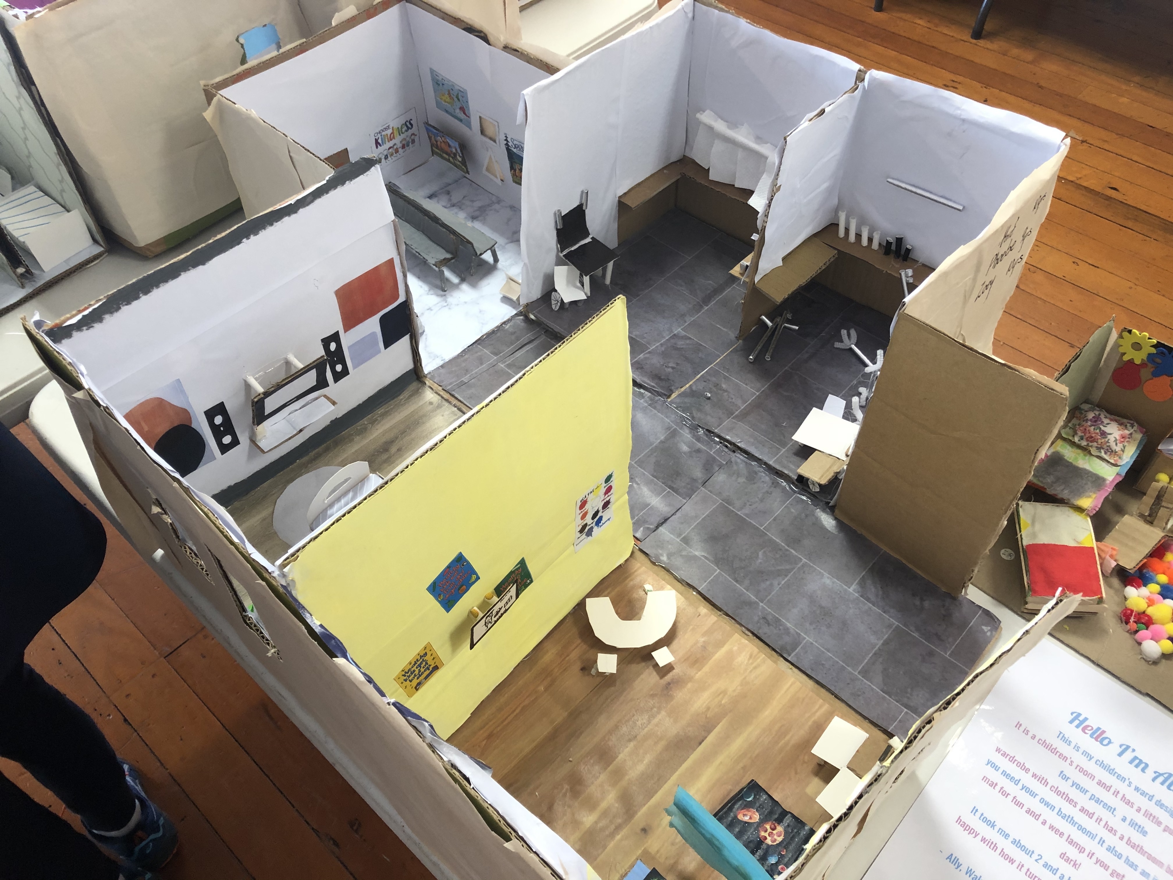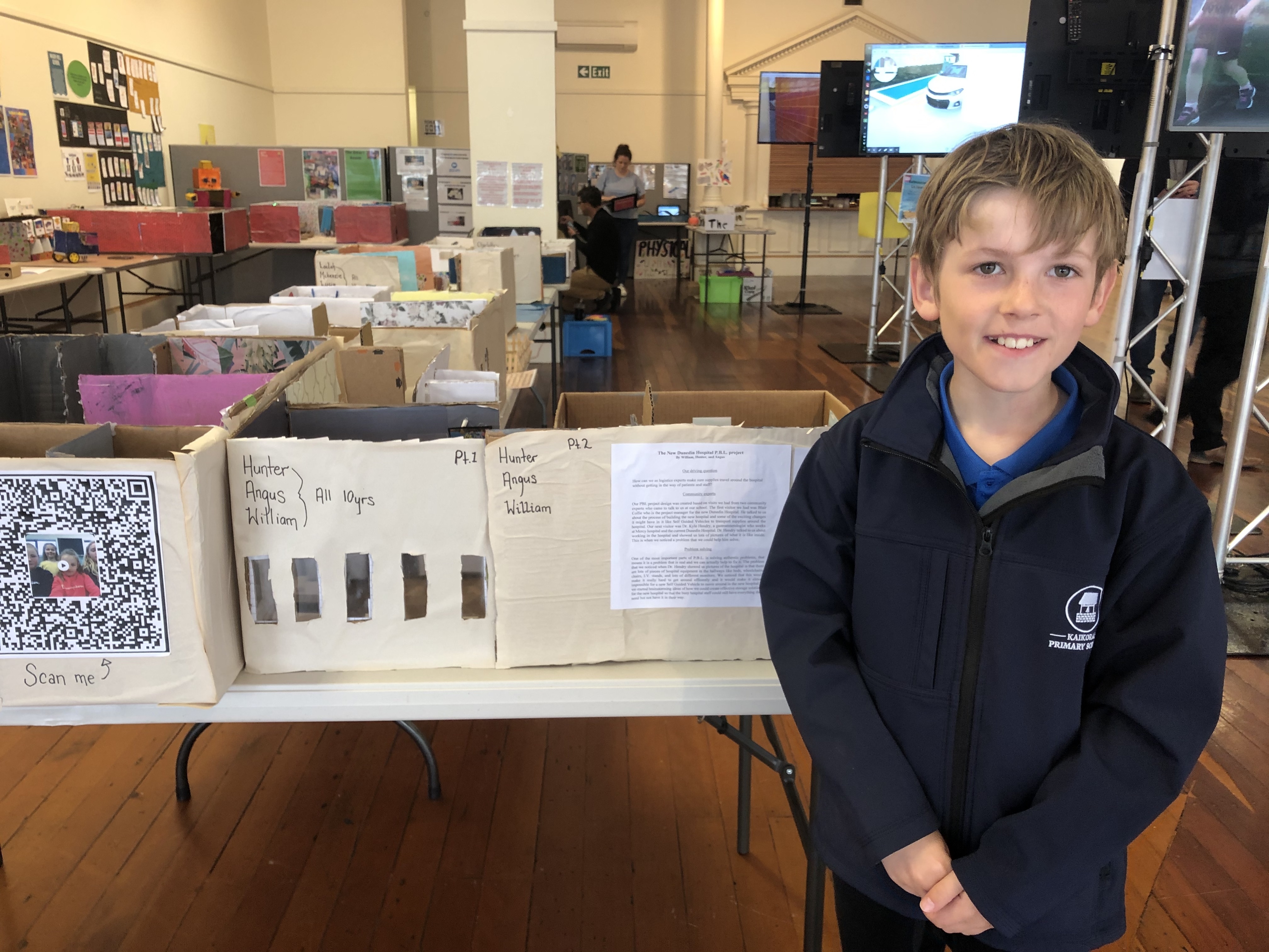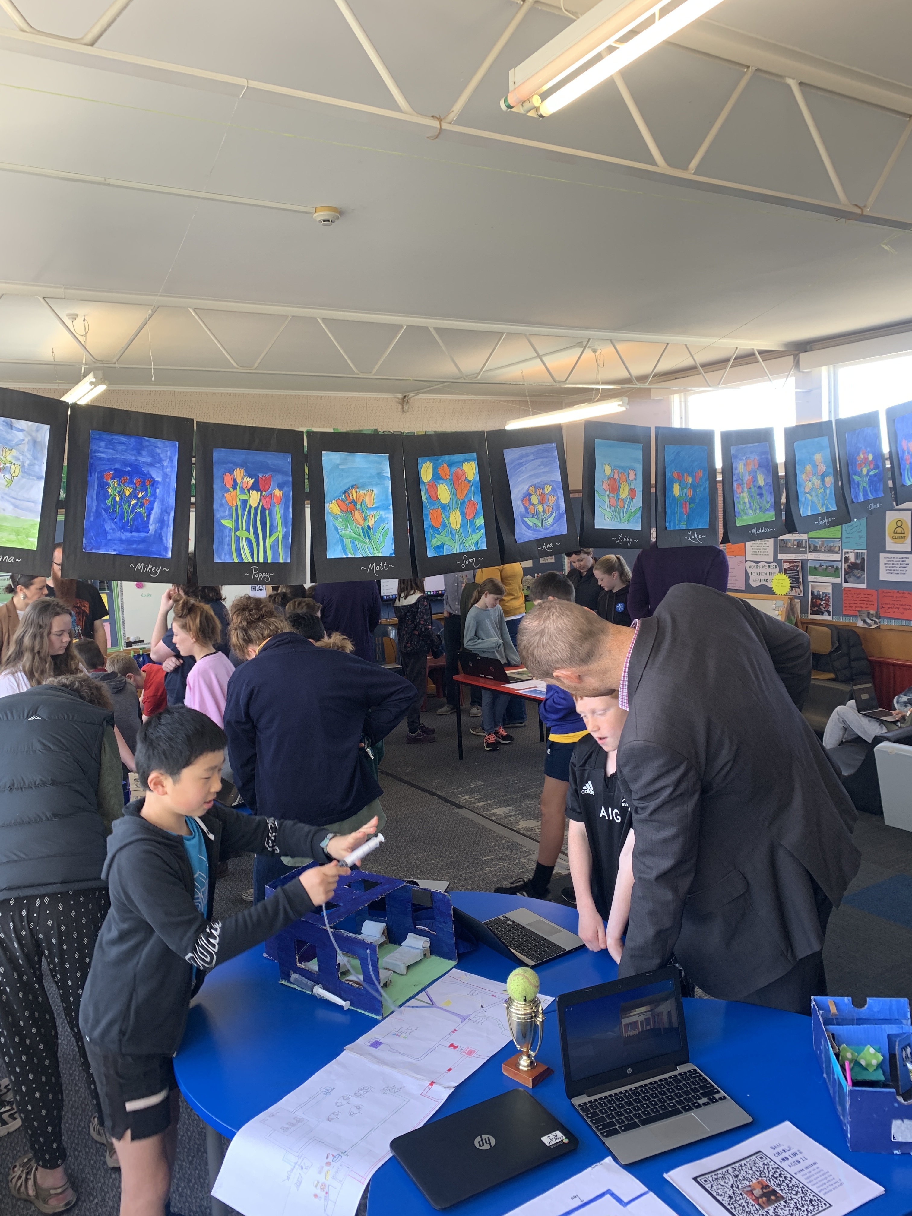 The exhibition held in the Dunedin Community Gallery was a huge success with work from each class being showcased. The Hospital community was amazed at the innovative ideas the kids were able to come up with and are even talking about changing some of their planning to include these. One idea included adding a holographic screen in the walls to make the patients feel at ease when visiting the hospital. We are very proud of the students who represented Kaikorai School down at the gallery, they showed confidence and initiative when showing the public around the gallery.