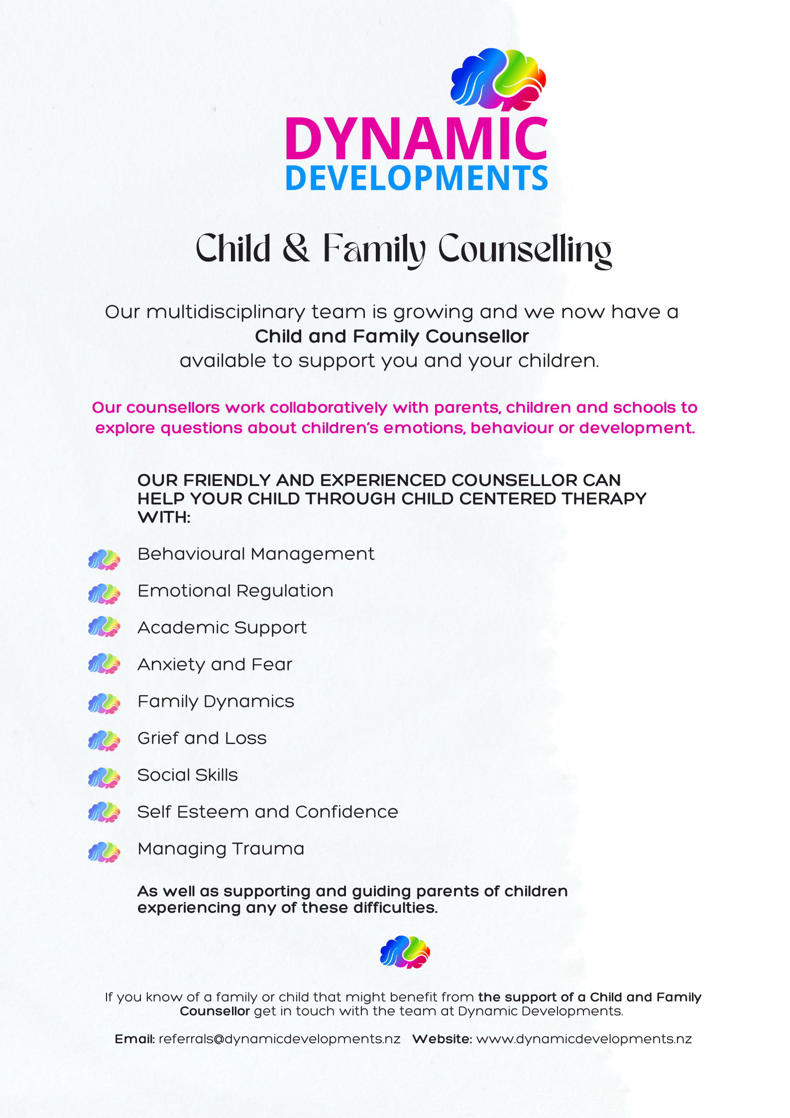 We have recently expanded our team to cover the Otago region with occupational and speech-language therapists and are now offering Counselling services.