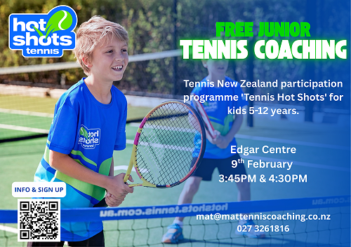 We are a Tennis NZ-registered and certified professional Tennis Coaching team, running the Tennis New Zealand participation programme 'Tennis Hot Shots' for kids 5-12 years across venues in Dunedin. This is a very specific program, modified to fit all ages and stages of development, with no previous experience required.
