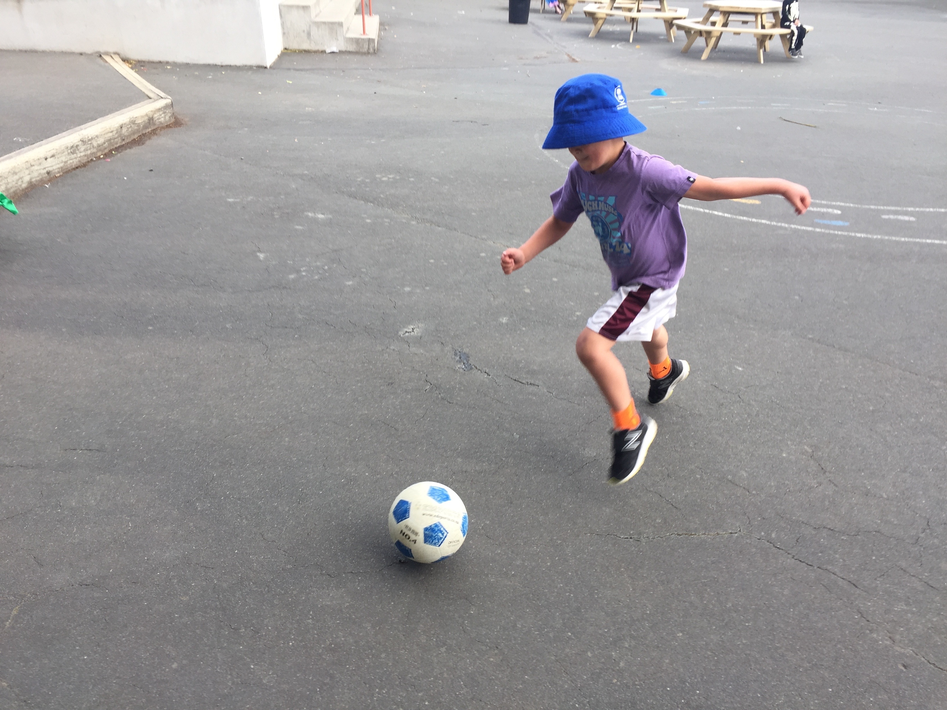 Not too different from regular football, but smaller and with a few differences. At this early stage we are concentrating on not using our hands unless we are the goalkeeper, learning Referee signals and what attack and defence are all about.