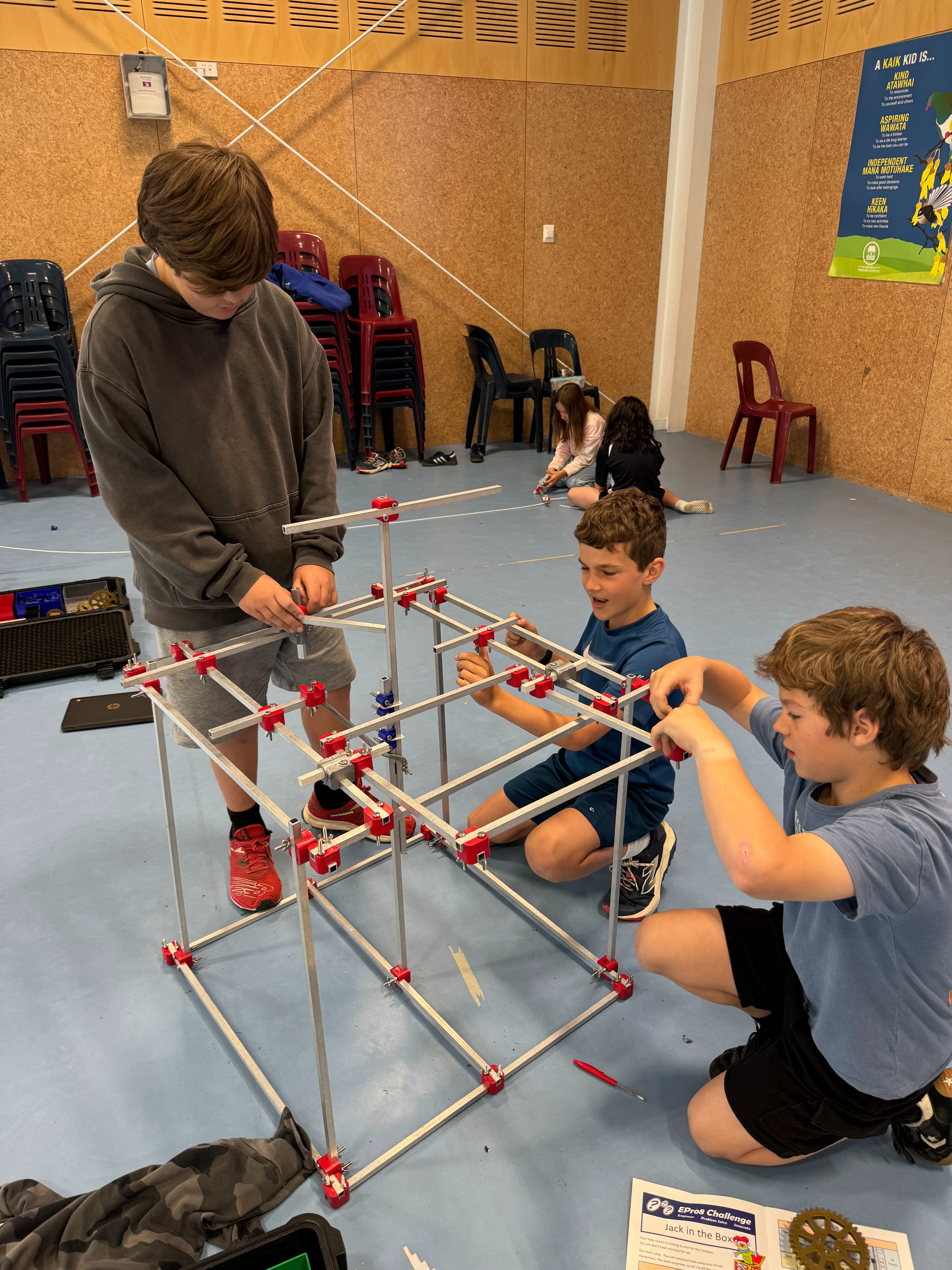 Each class ran their own competition, creating an Ironing Man exoskeleton, before students were chosen to compete in the Kererū competition. There were some tough challenges, creating a ball launcher or a jack in the box and everyone can be very proud of their efforts.