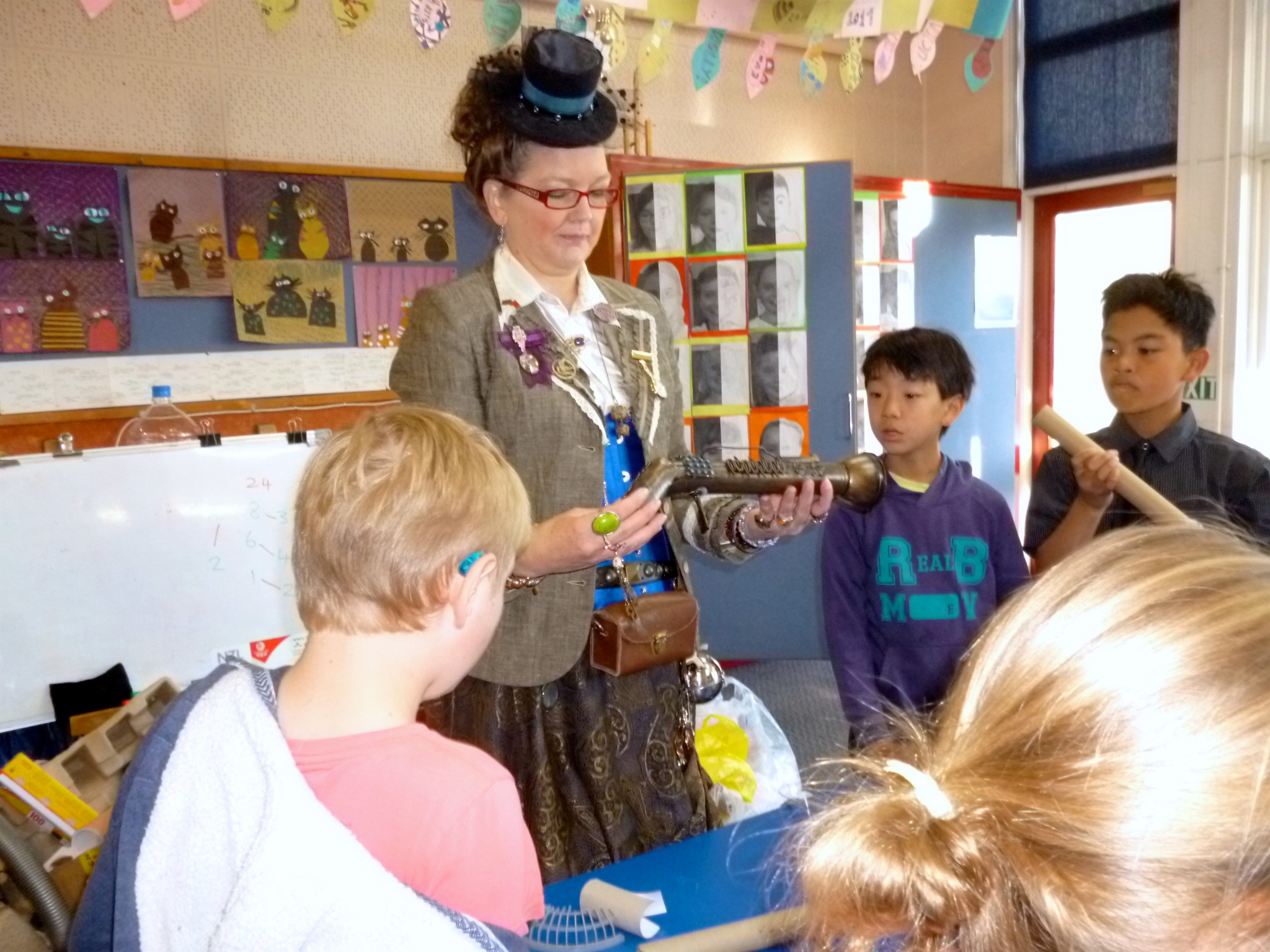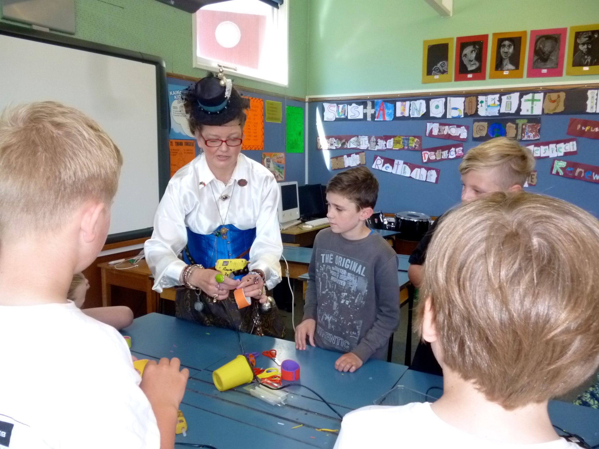 Mrs Michelle Ward is part of the newly formed Dunedin Steampunk Society and is also a teacher at the Otago Polytechnic in the Design Department. She has been involved in elements of creating designs in many movies and events, including The Lord of The Rings and Armageddon. We were very fortunate that she could spare the time to lead these workshops for our classes.