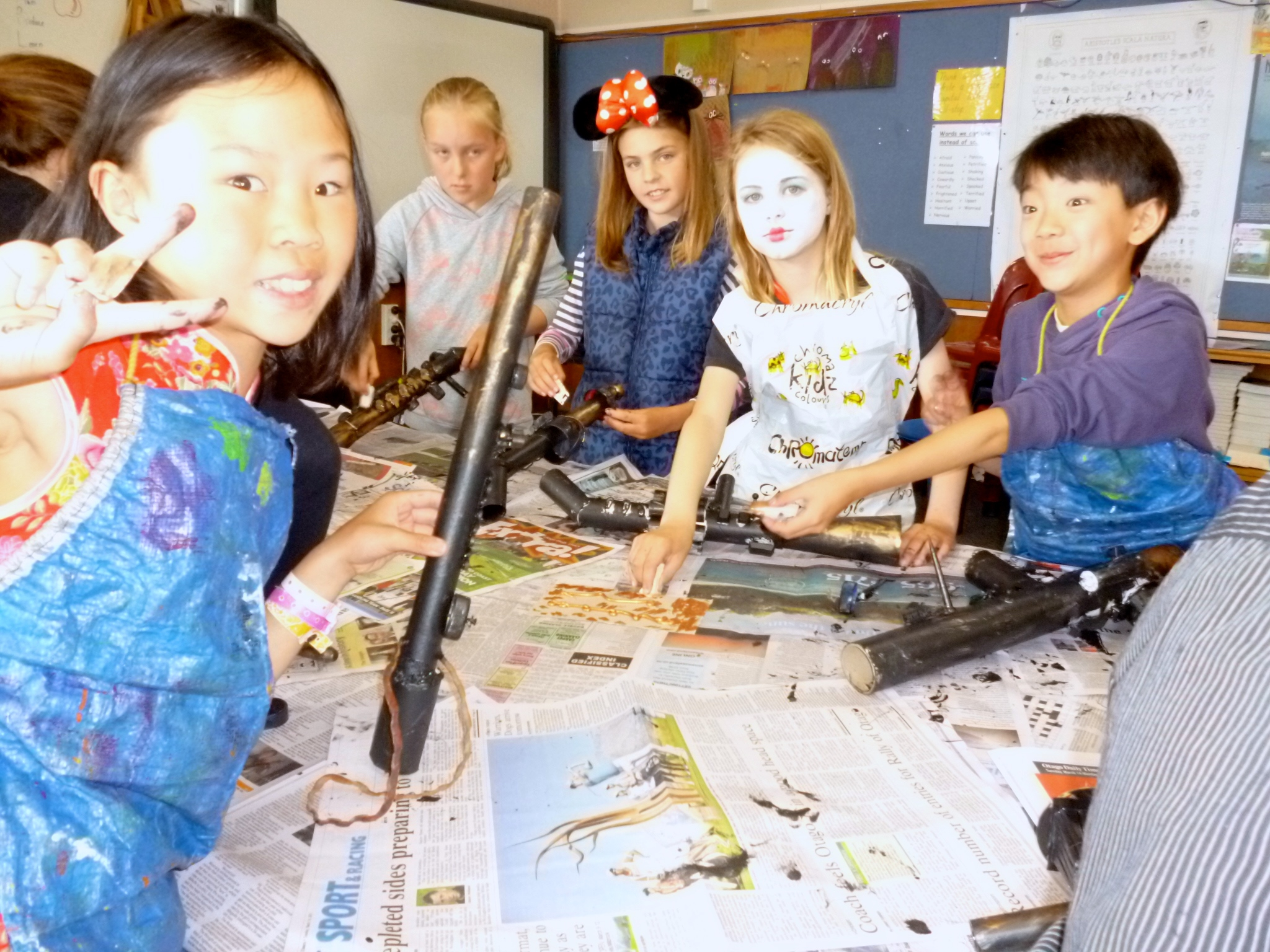 The children have all created either science fiction style ray guns or Steampunk goggles, using a variety of media and developing many skills in design.