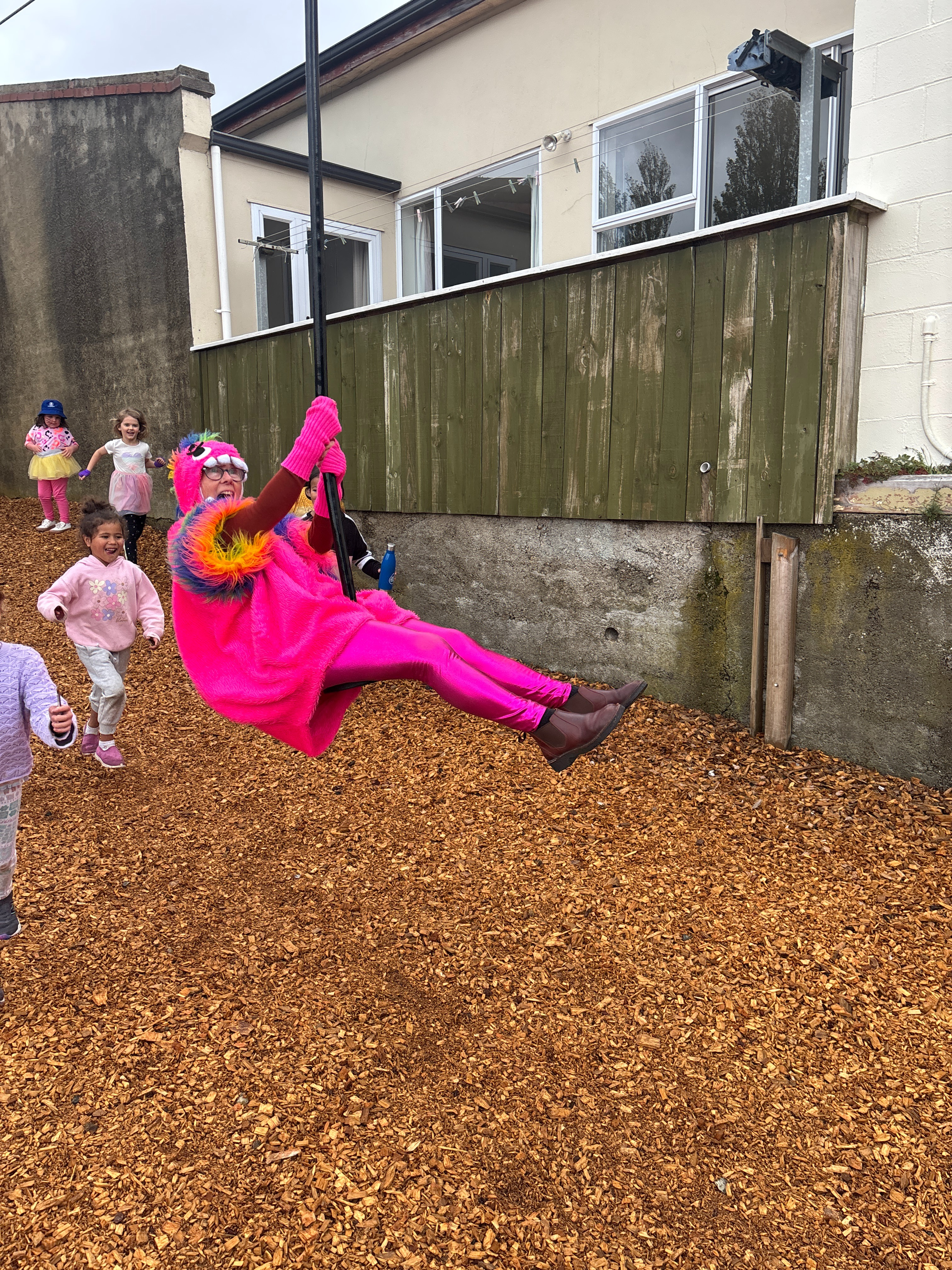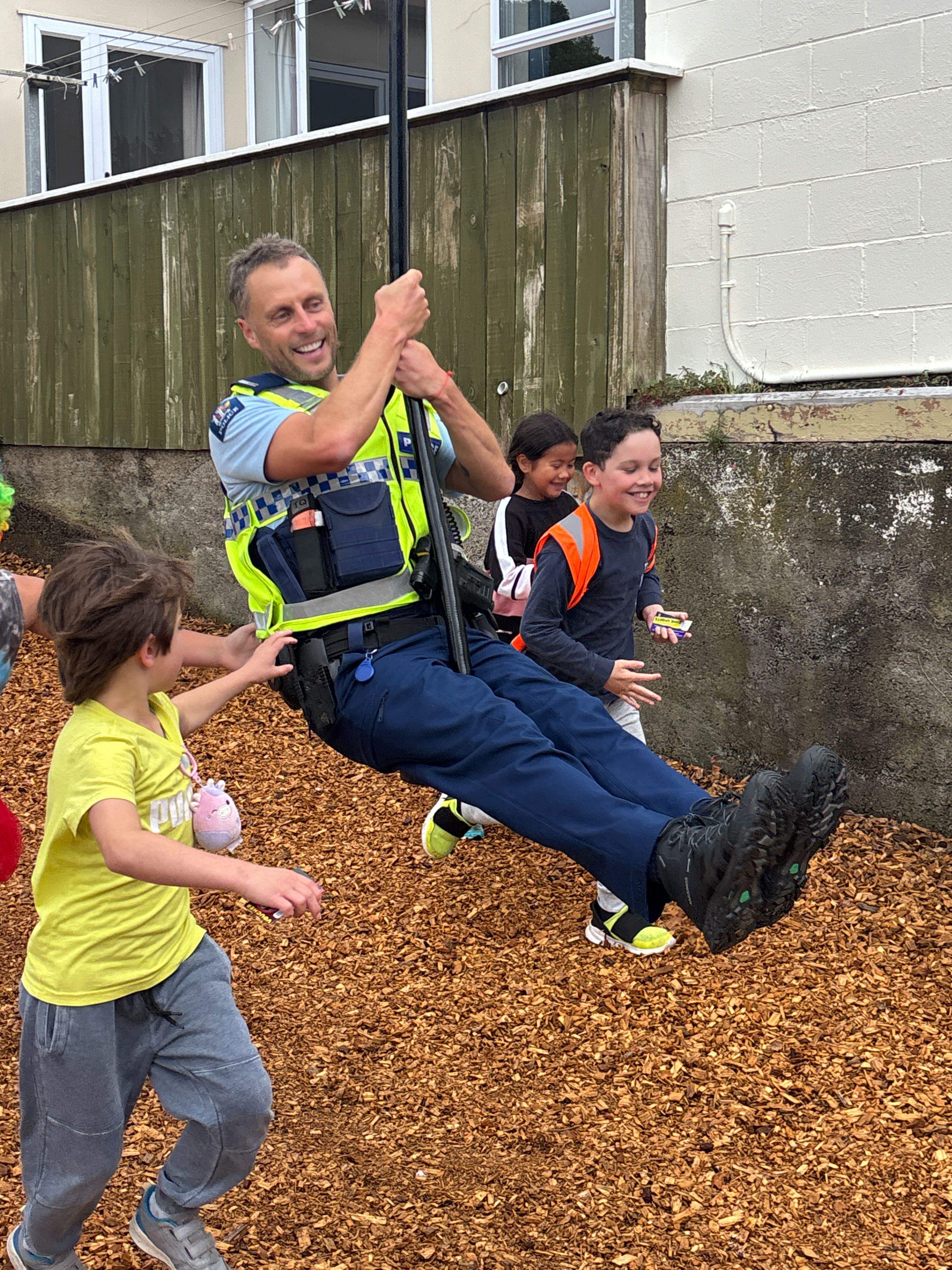 Scout and Constable Eddie joined us for Jump Jam in the hall and then went on a guided tour of the playground. Both thoroughly enjoyed a ride on the flying fox.
