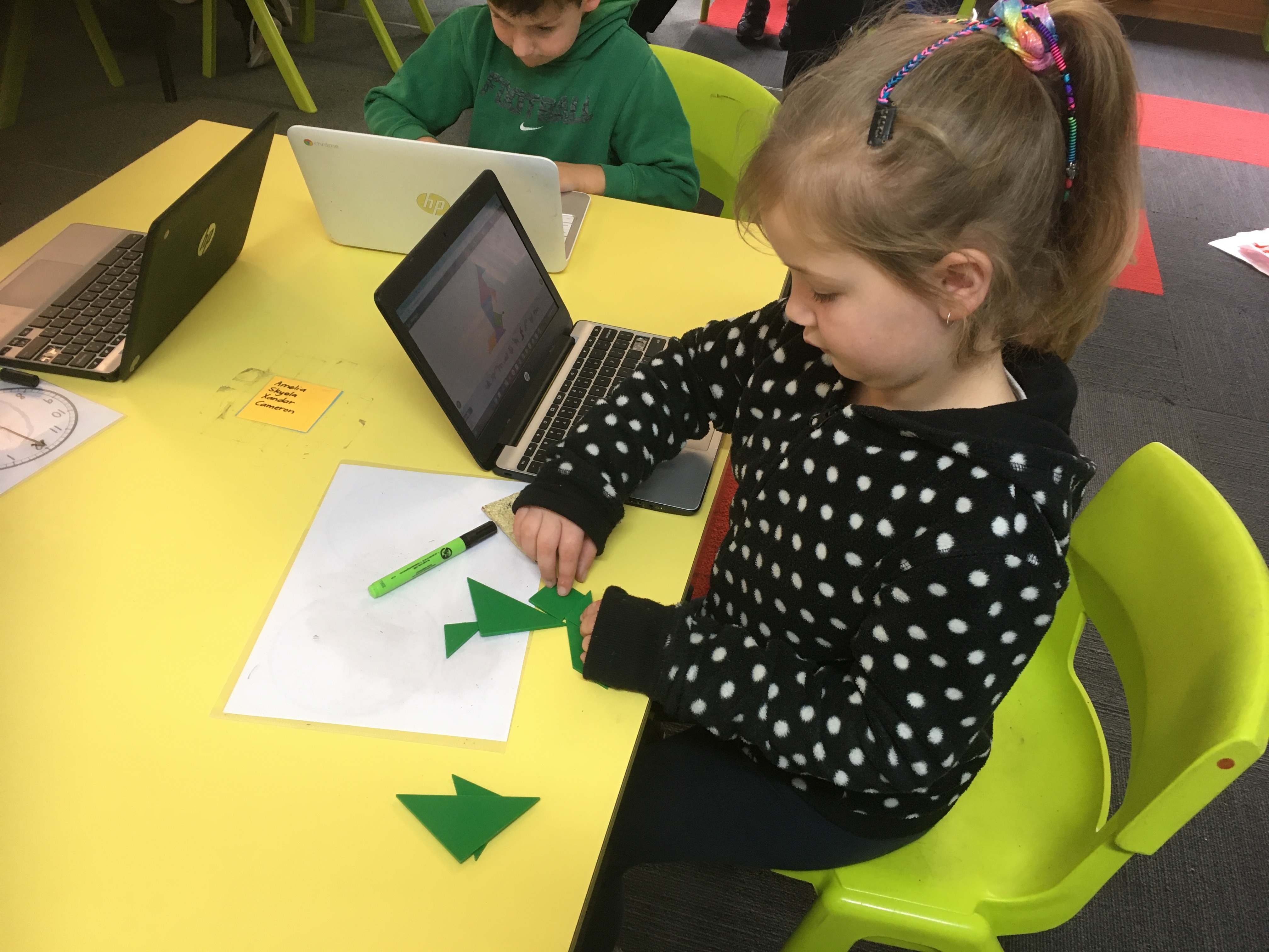 We had to find random places in the school by using photos and then we had to come back to class and write instructions on how to get to that place like how many metres to go to a place.