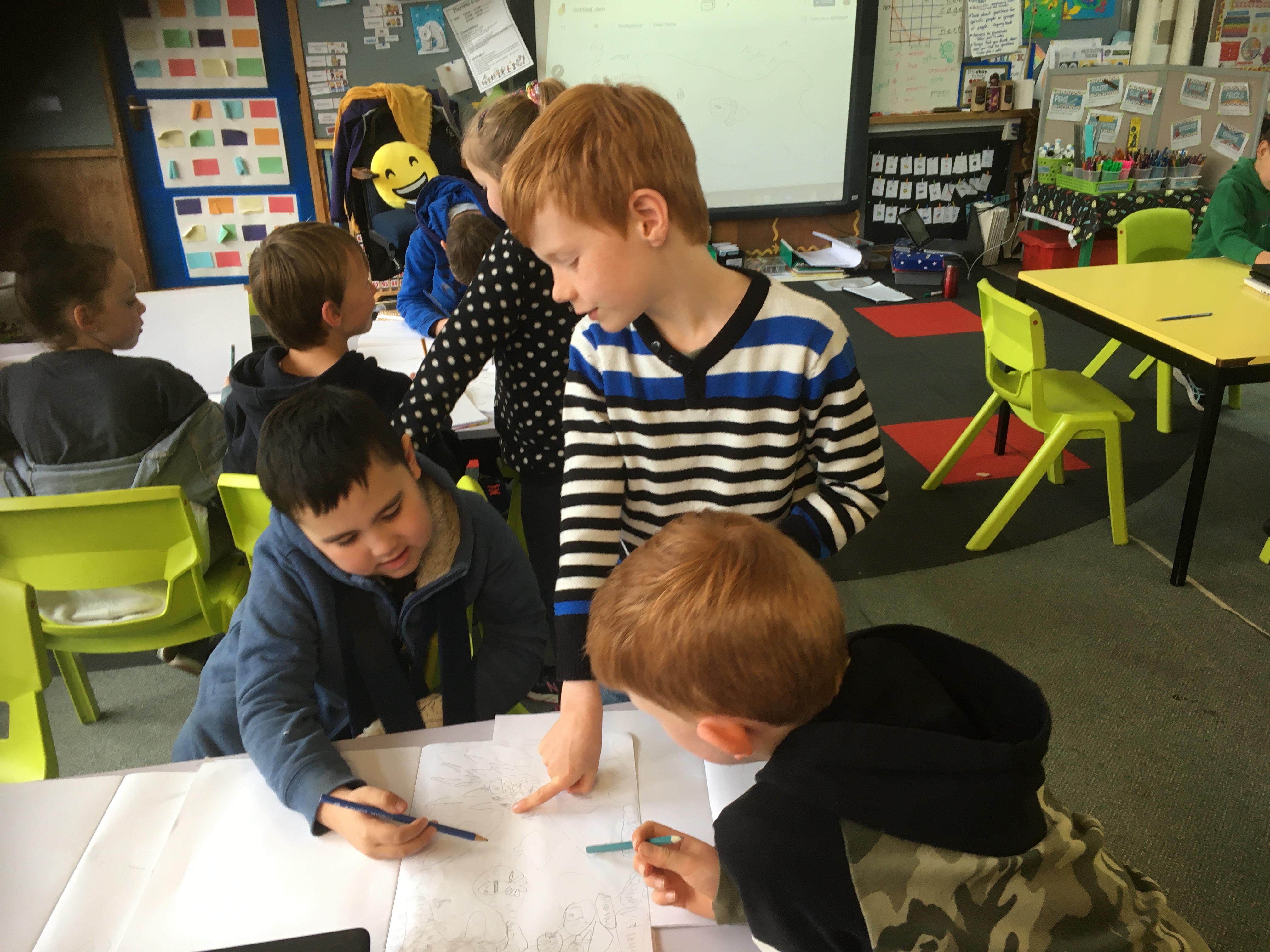 Now we are making a storyboard for a video that we are making to show people how to get to places that we think people might need to find such as the hall and classrooms.