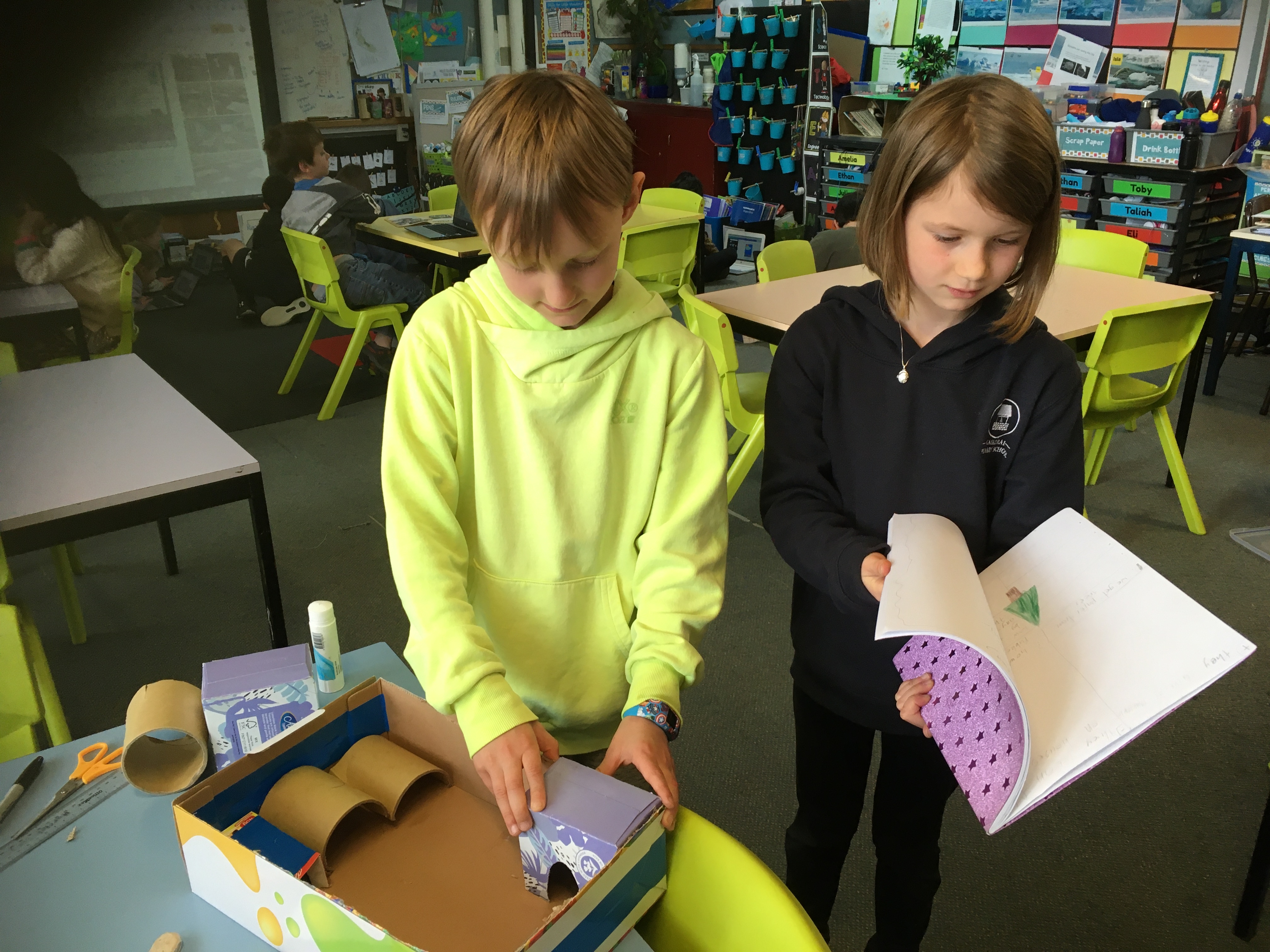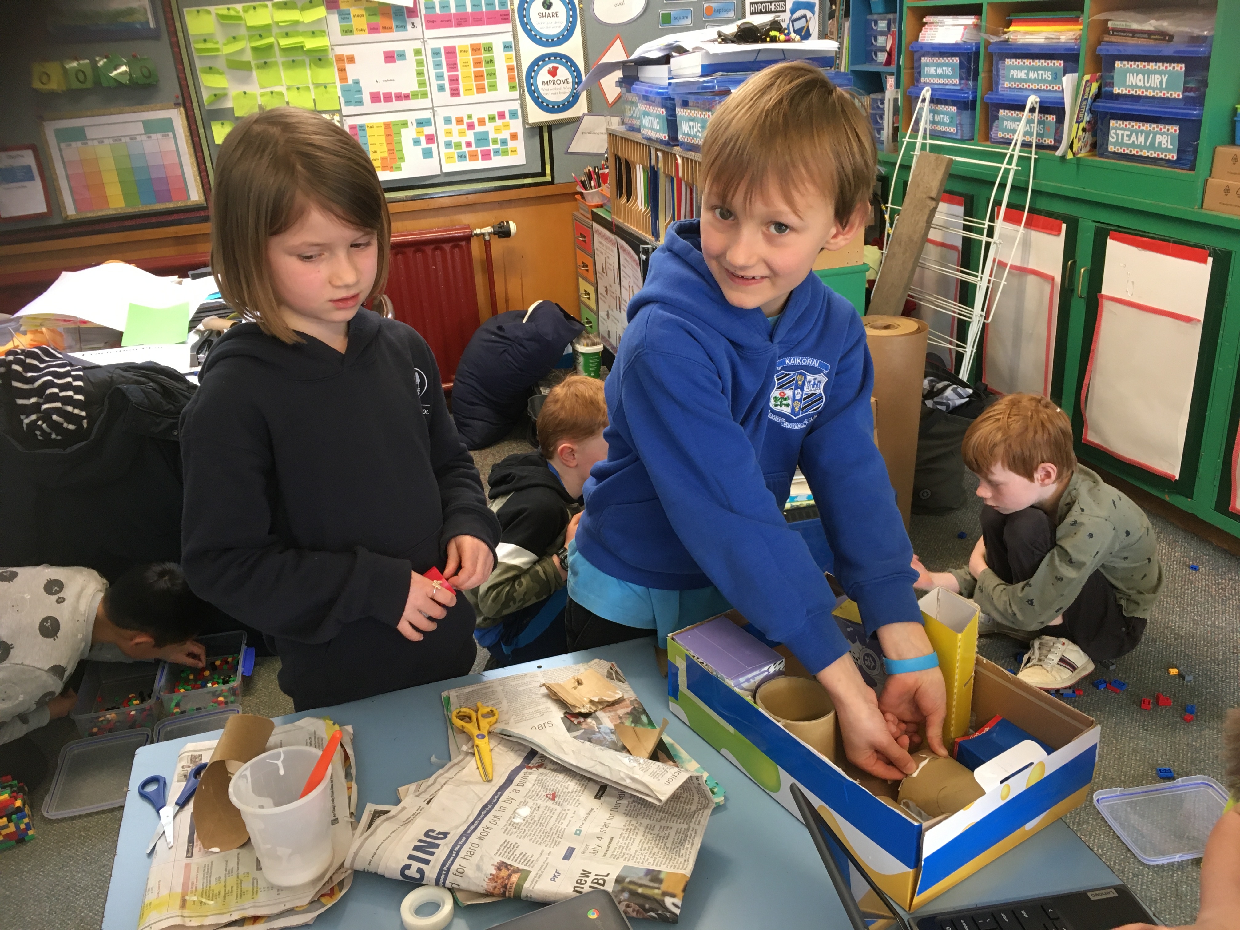 Our project based learning is progressing with students taking their ideas and creating prototypes for their wayfinding solutions. Our next task will be to gather some feedback to improve and refine our ideas. Once we have finished with our school wayfinding products, we'll begin looking at how we can apply our learning to wayfinding solutions for the hospital rebuild. While each class in the middle syndicate has been researching similar ideas, there is a variety of prototypes and products being created.