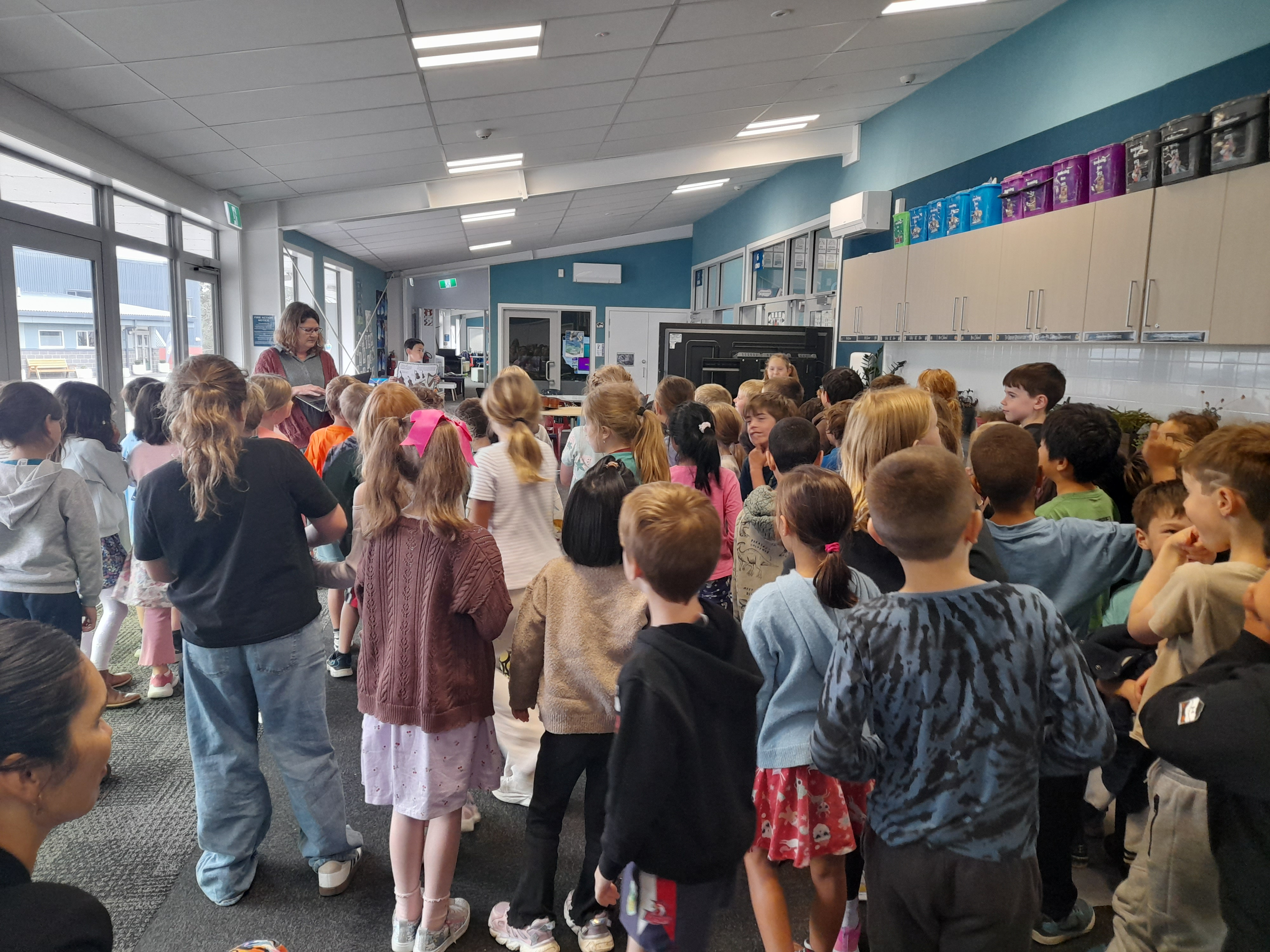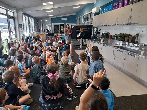 Each Monday afternoon, we have a syndicate assembly in our learning street. There are a mixture of activities each week. We have used narrative picture books as a springboard for thoughtful discussions about our growth mindset, our school's values, and behaviour expectations. These conversations have encouraged students to reflect on their own actions and consider how they can contribute to making our classes, syndicate, and school a great place to be. We have also had some singing and music lessons with active participation. To balance the get-up-and-go activities, some time for mindfulness and calm is incorporated through Relax Kids activities. Our syndicate assemblies also provide a time for us to collaborate on shared projects. We are looking forward to sharing one of these with you at our school art exhibition at the end of the term. Our syndicate assemblies provide lots of opportunities for students from different classes to connect and build relationships, fostering a strong sense of community within the syndicate.