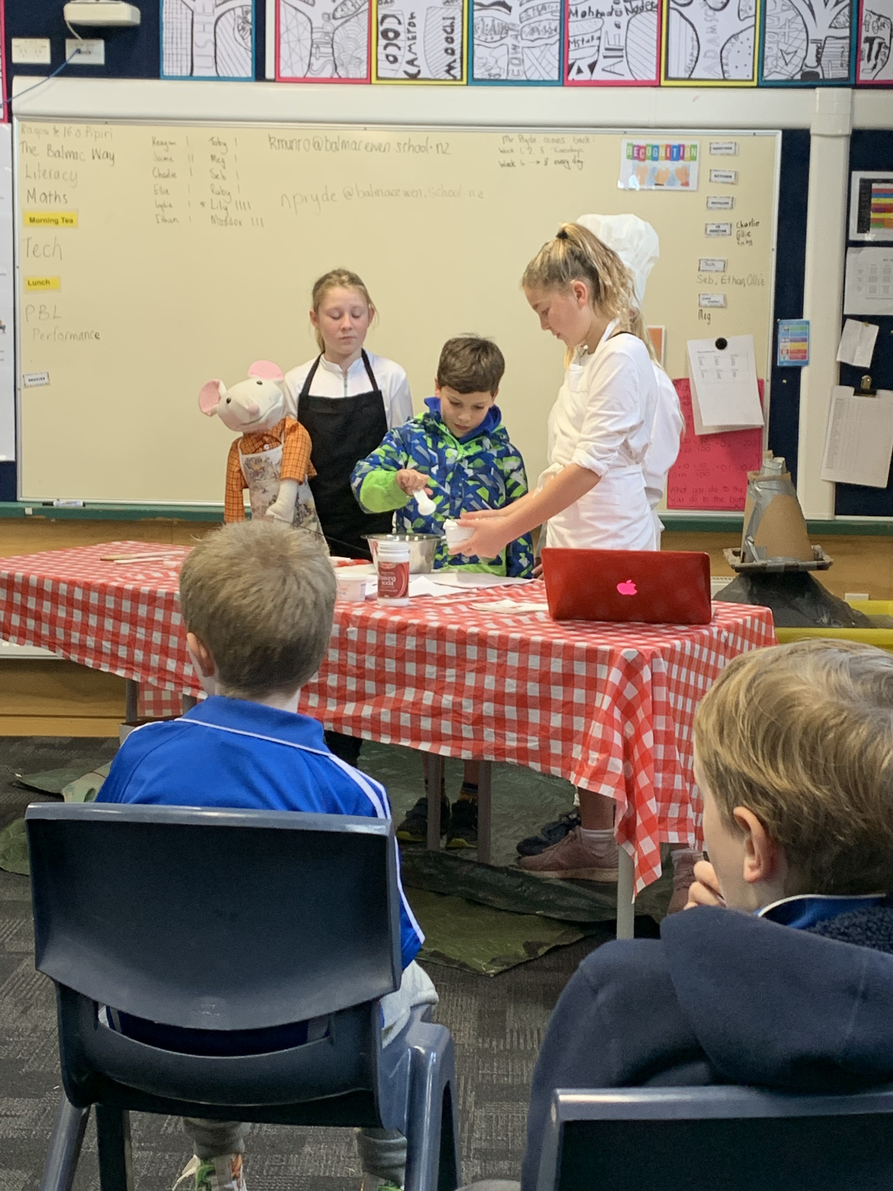 It has been a busy term of making, creating and keeping up with our regular routines. We had a blast (some literal blasts too) at the Balmacewen Science Show. When we arrived we were greeted by a group of past Kaikorai students who gave us a great introduction to the shows. After moving to our areas each group was treated to a number of science shows. The shows were designed by the Balmacewen students using the same Project Based Learning (PBL) model that we use here at Kaikorai. The shows were fantastic. The breadth of science covered was impressive and included rockets, acids and bases, ice cream, explosions and much more.