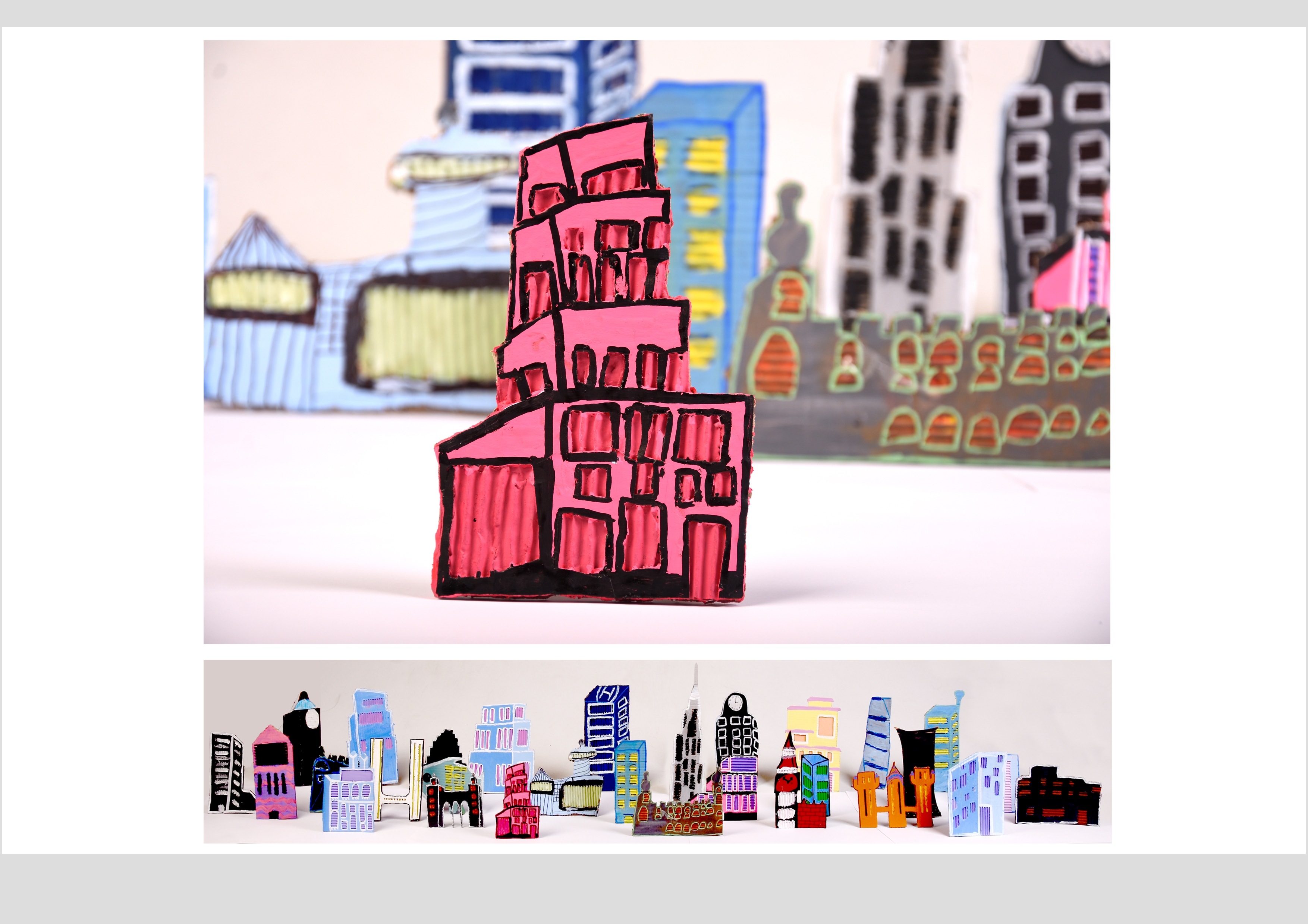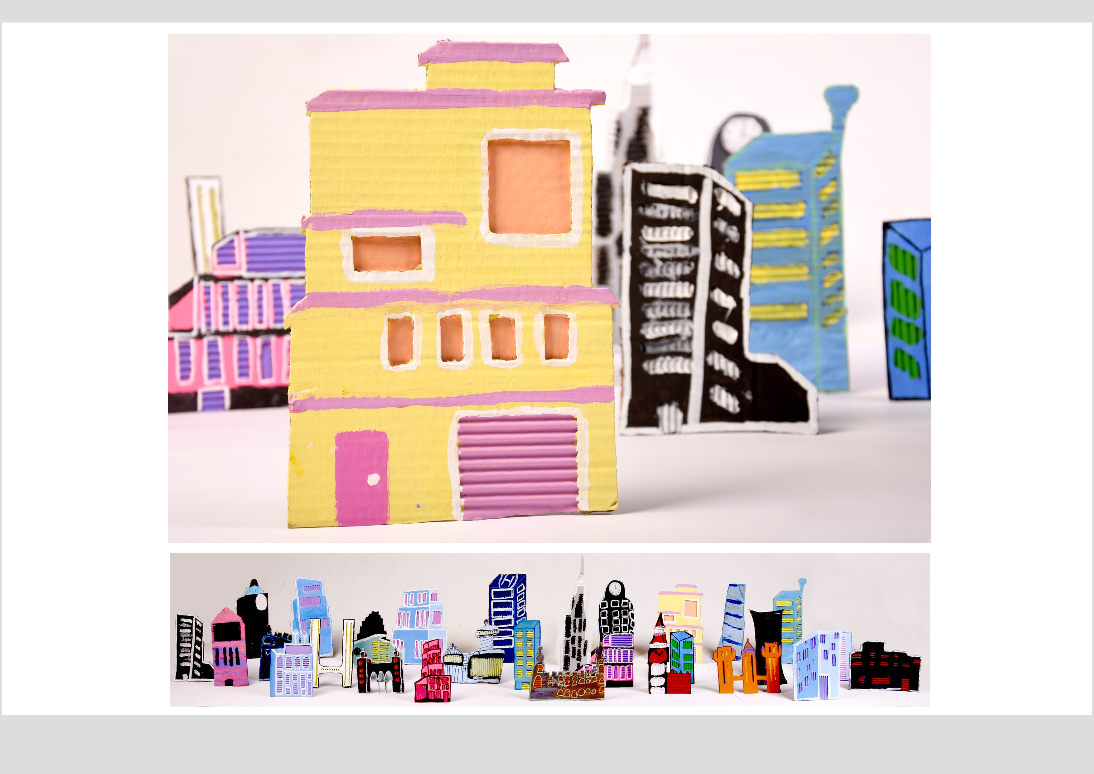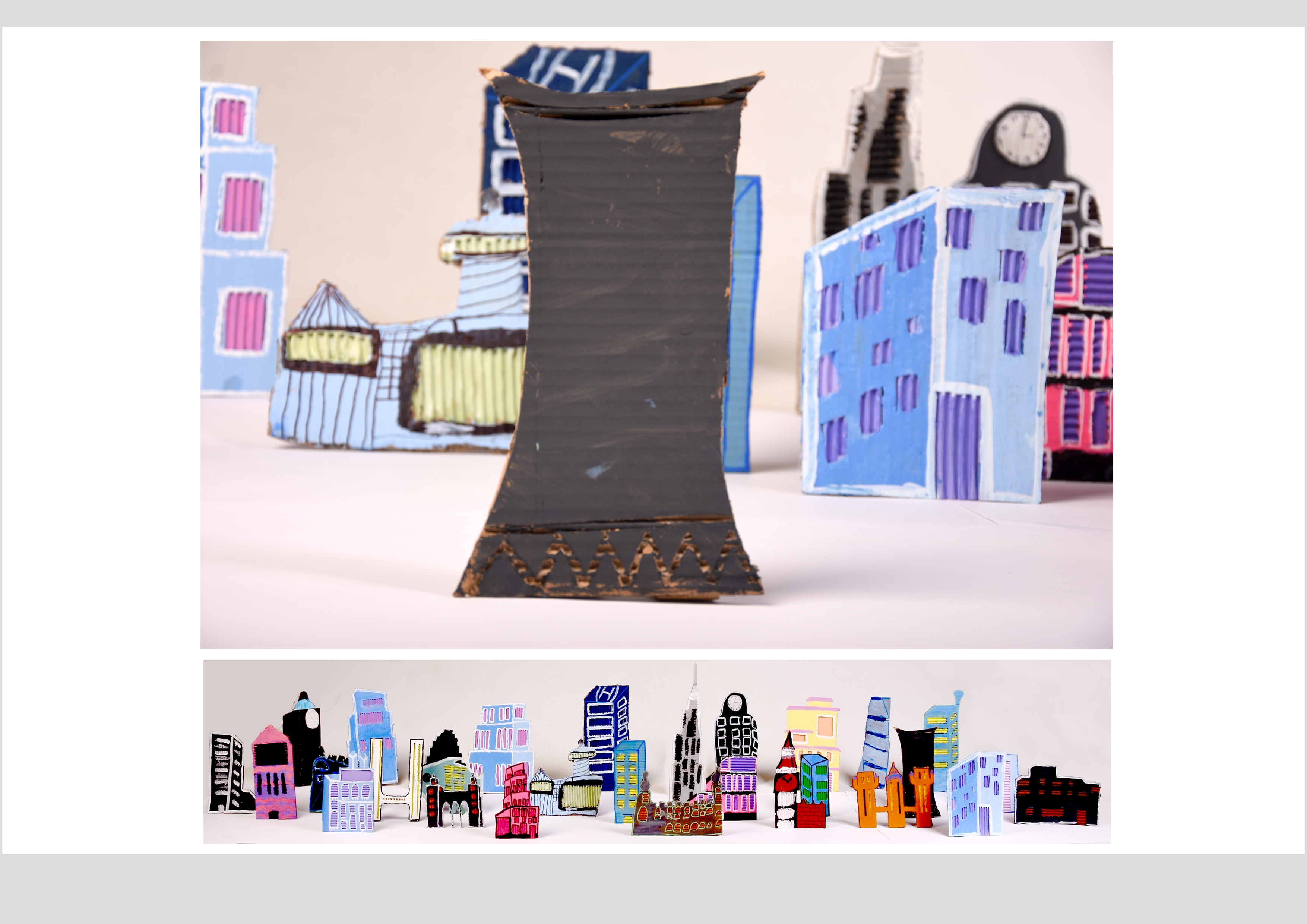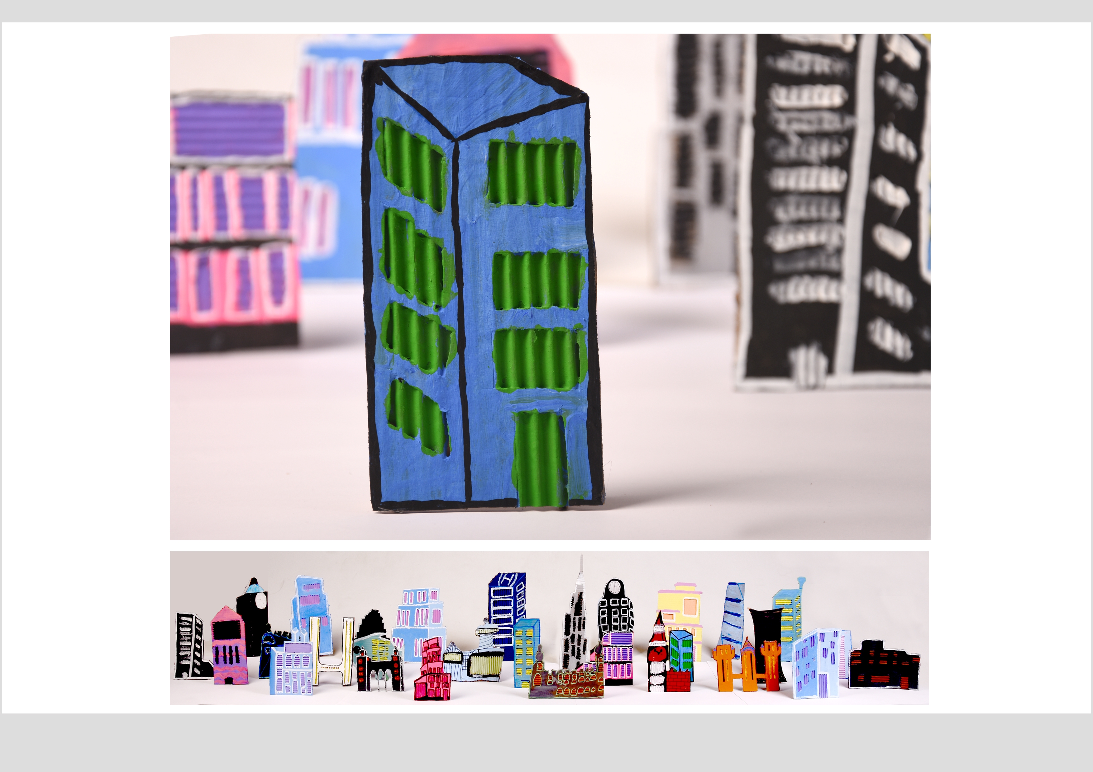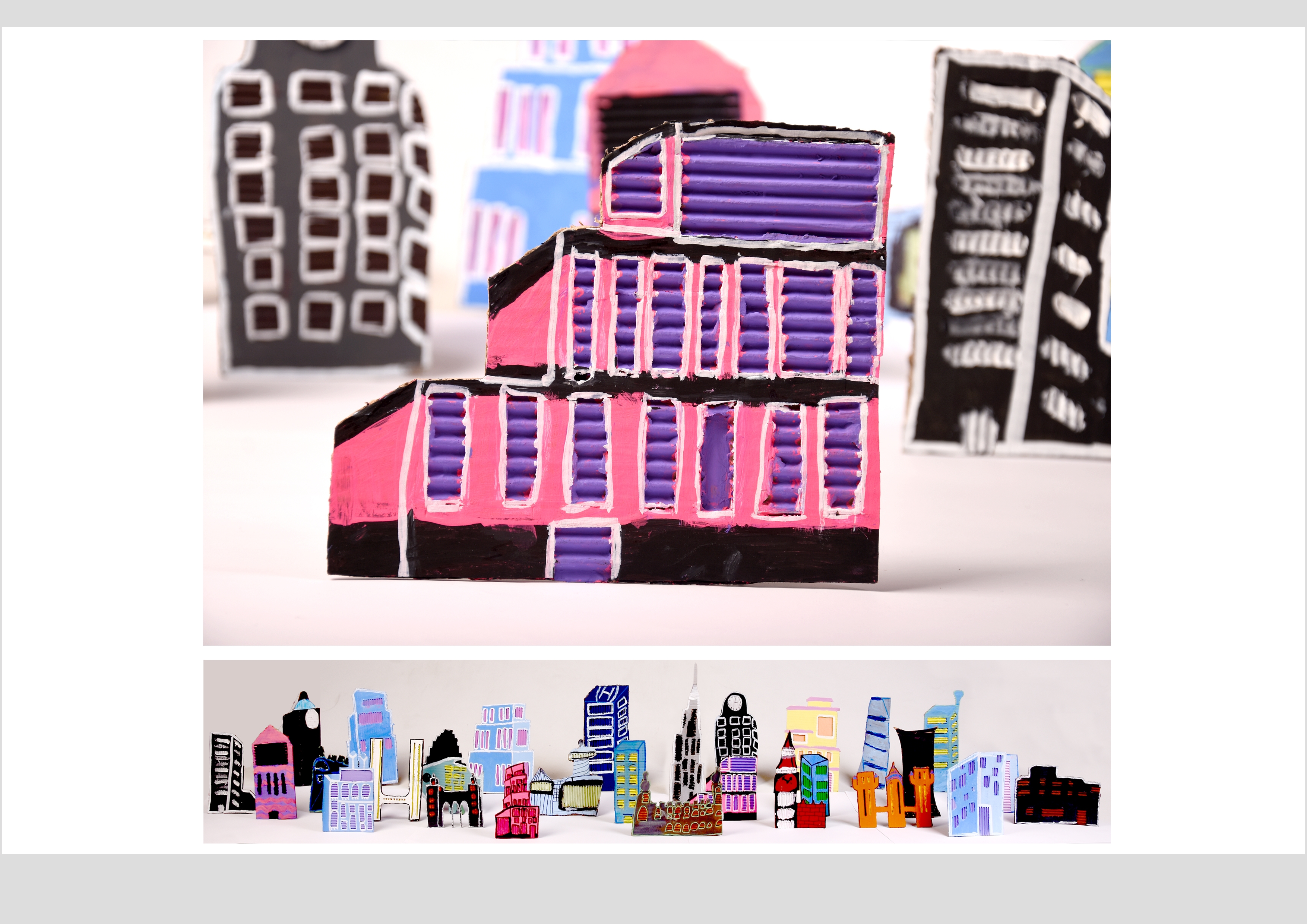 Barbara Gilhooly's was selected as an artist model as she creates cityscapes using buildings created from plywood. Room 2a made their buildings from cardboard to link to last terms sustainability learning. The building concept also links to our current learning of 'Changes' with our new school build and the Dunedin Hospital rebuild.