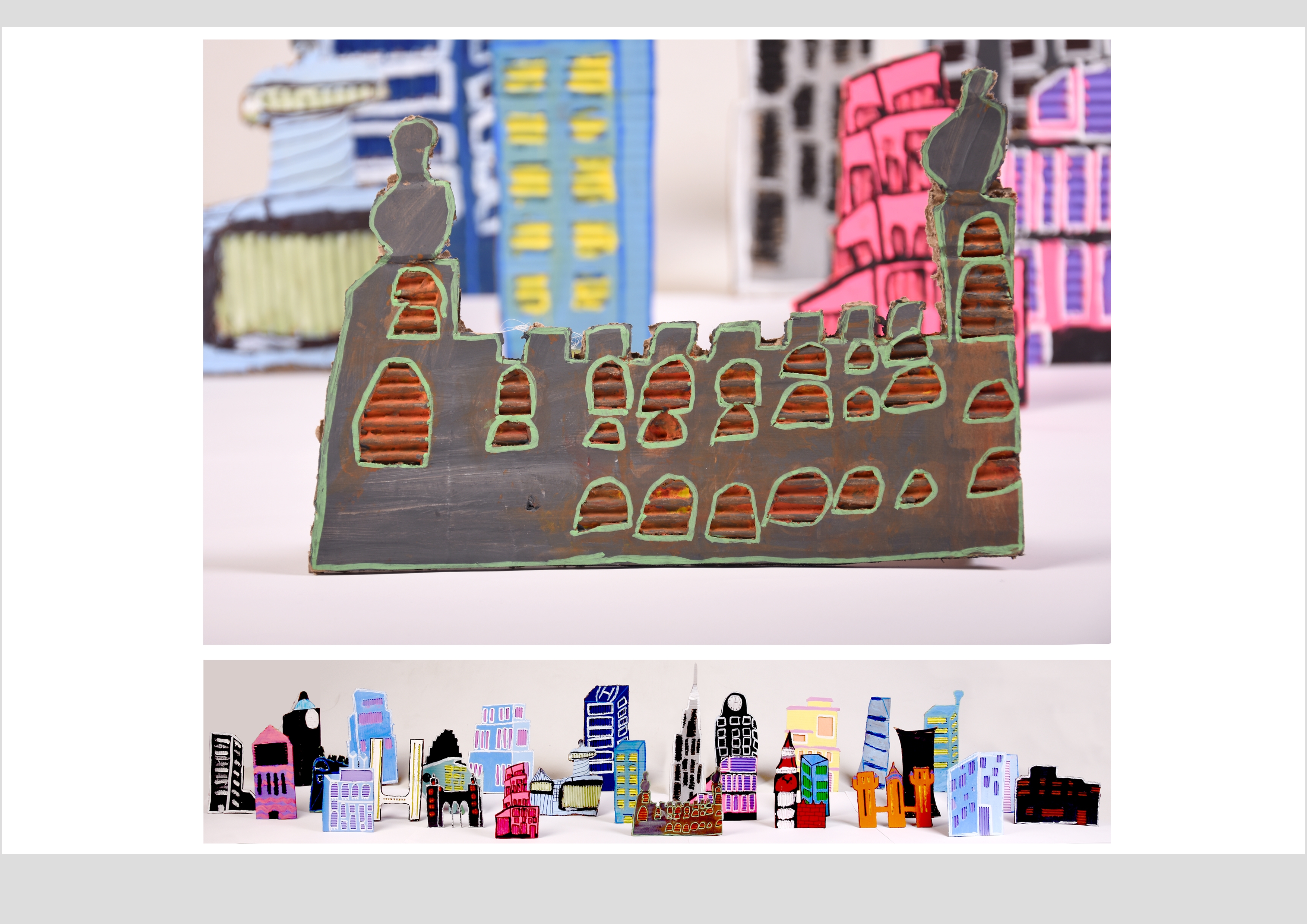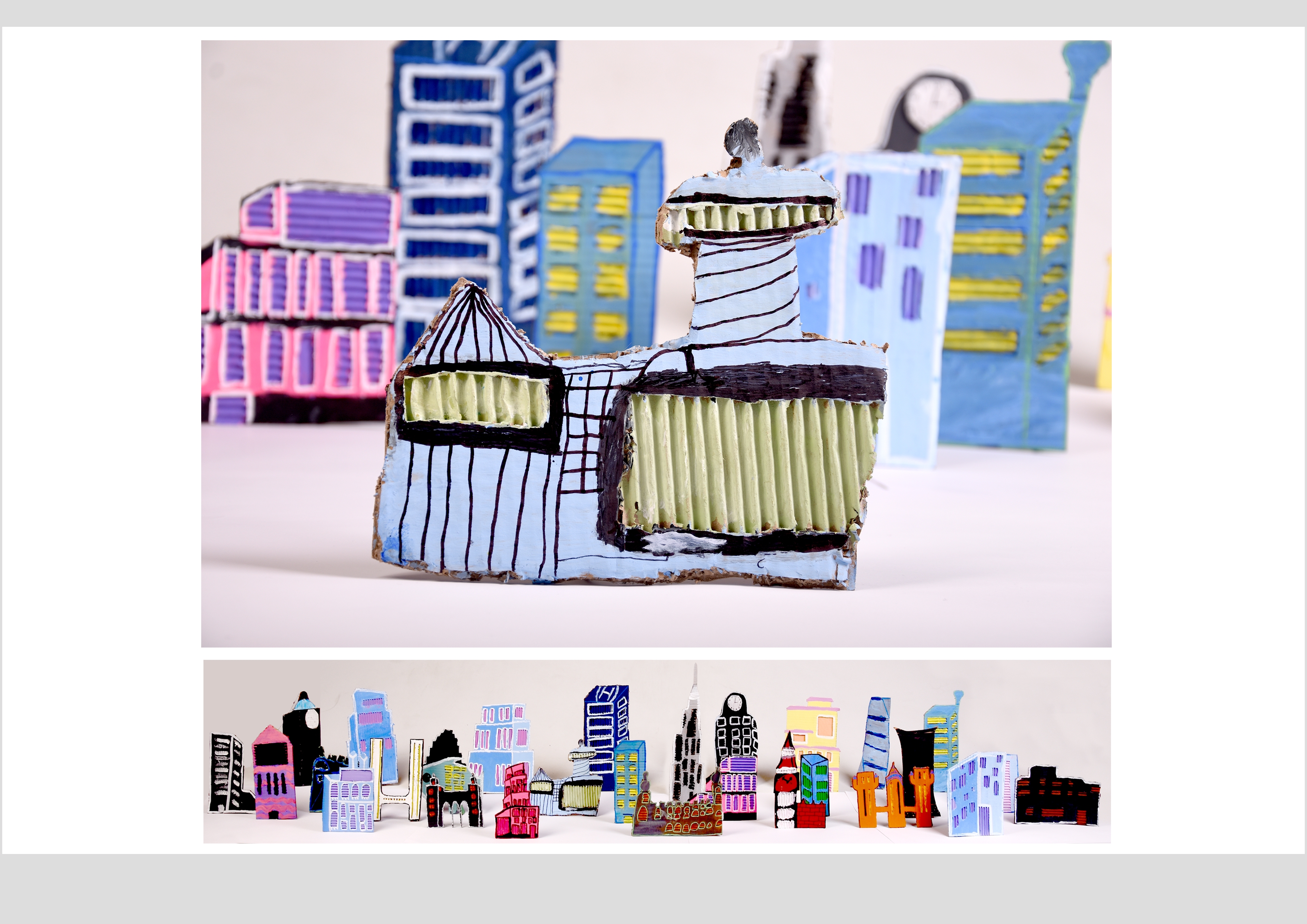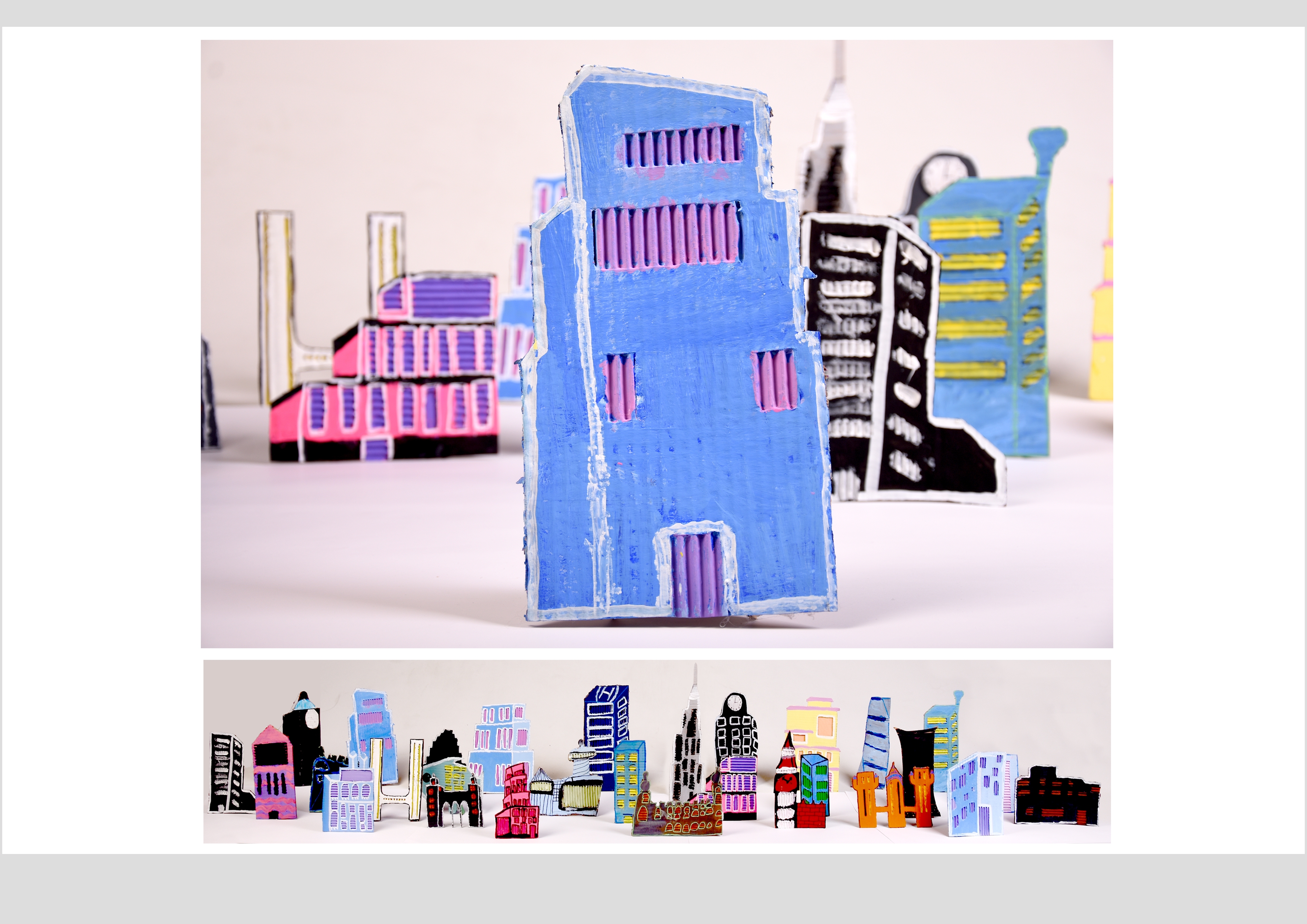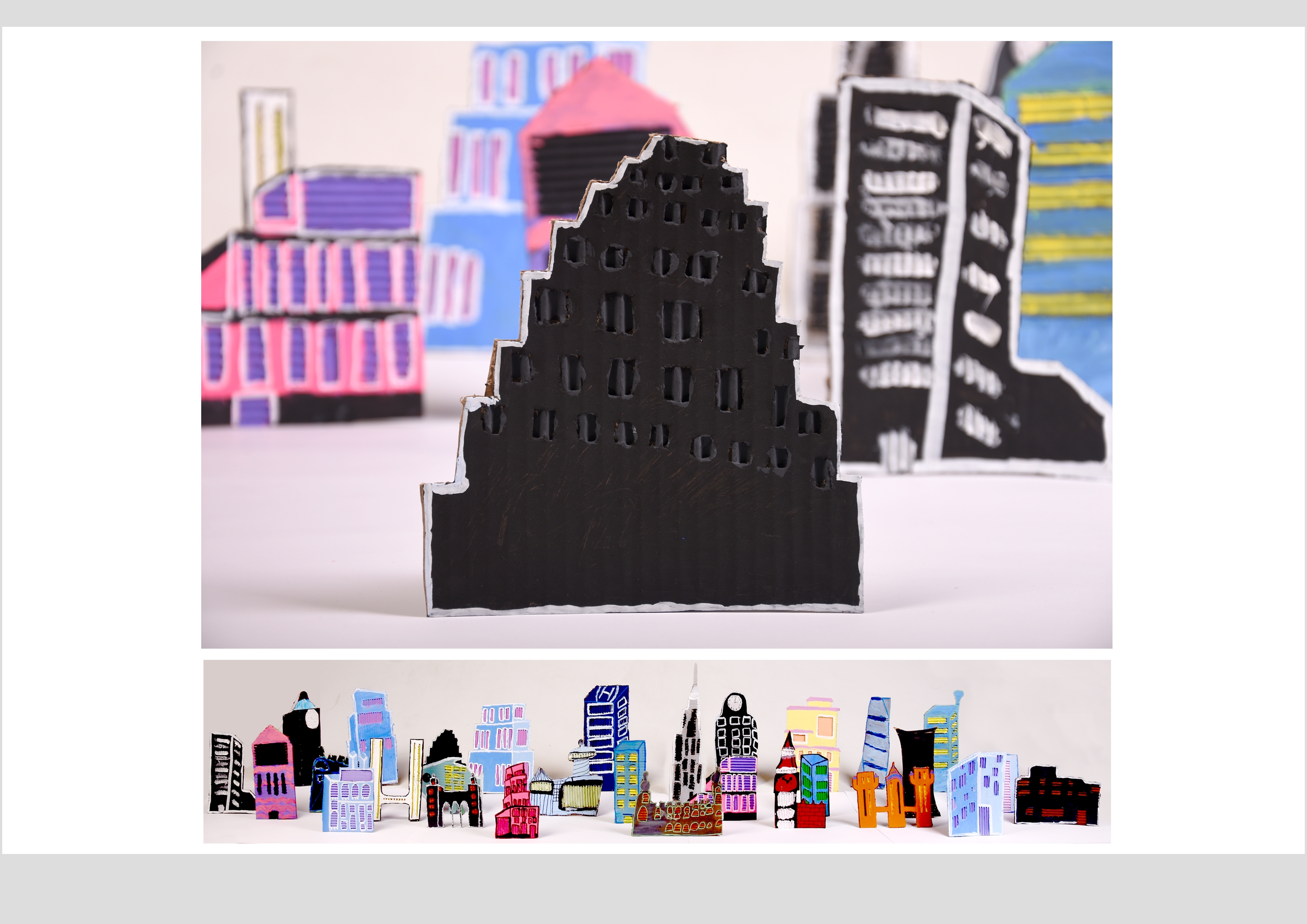 Barbara Gilhooly's was selected as an artist model as she creates cityscapes using buildings created from plywood. Room 2a made their buildings from cardboard to link to last terms sustainability learning. The building concept also links to our current learning of 'Changes' with our new school build and the Dunedin Hospital rebuild.