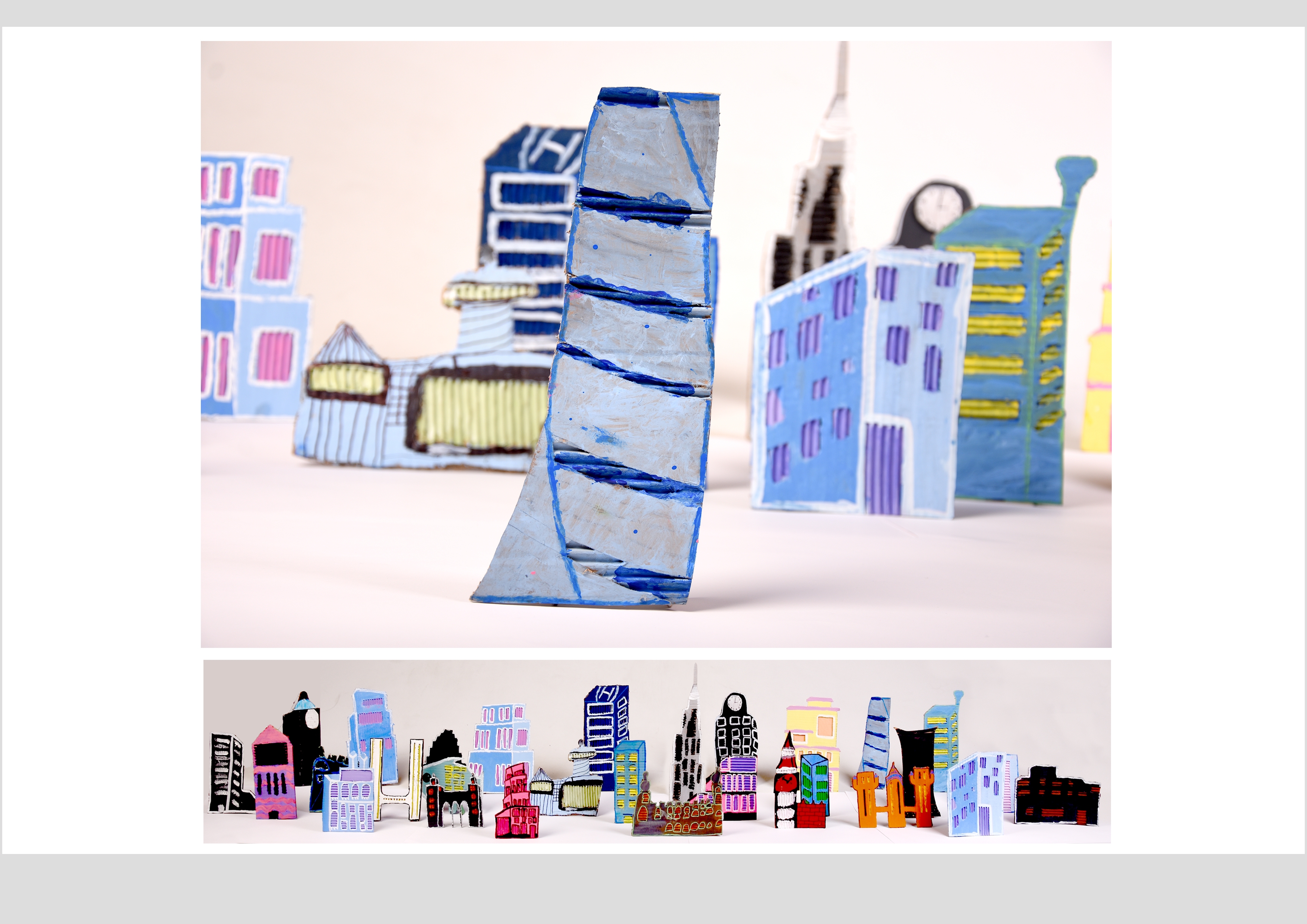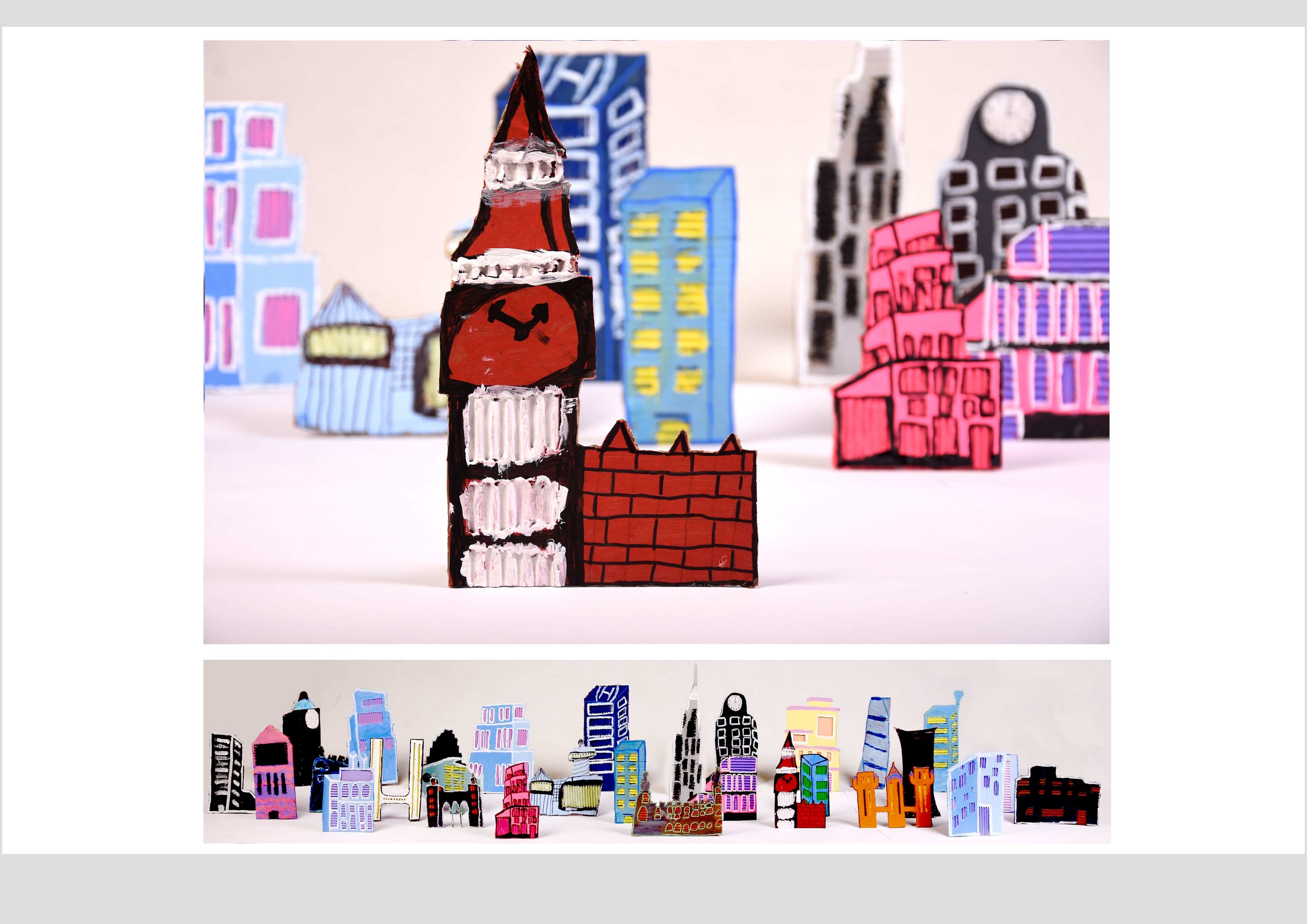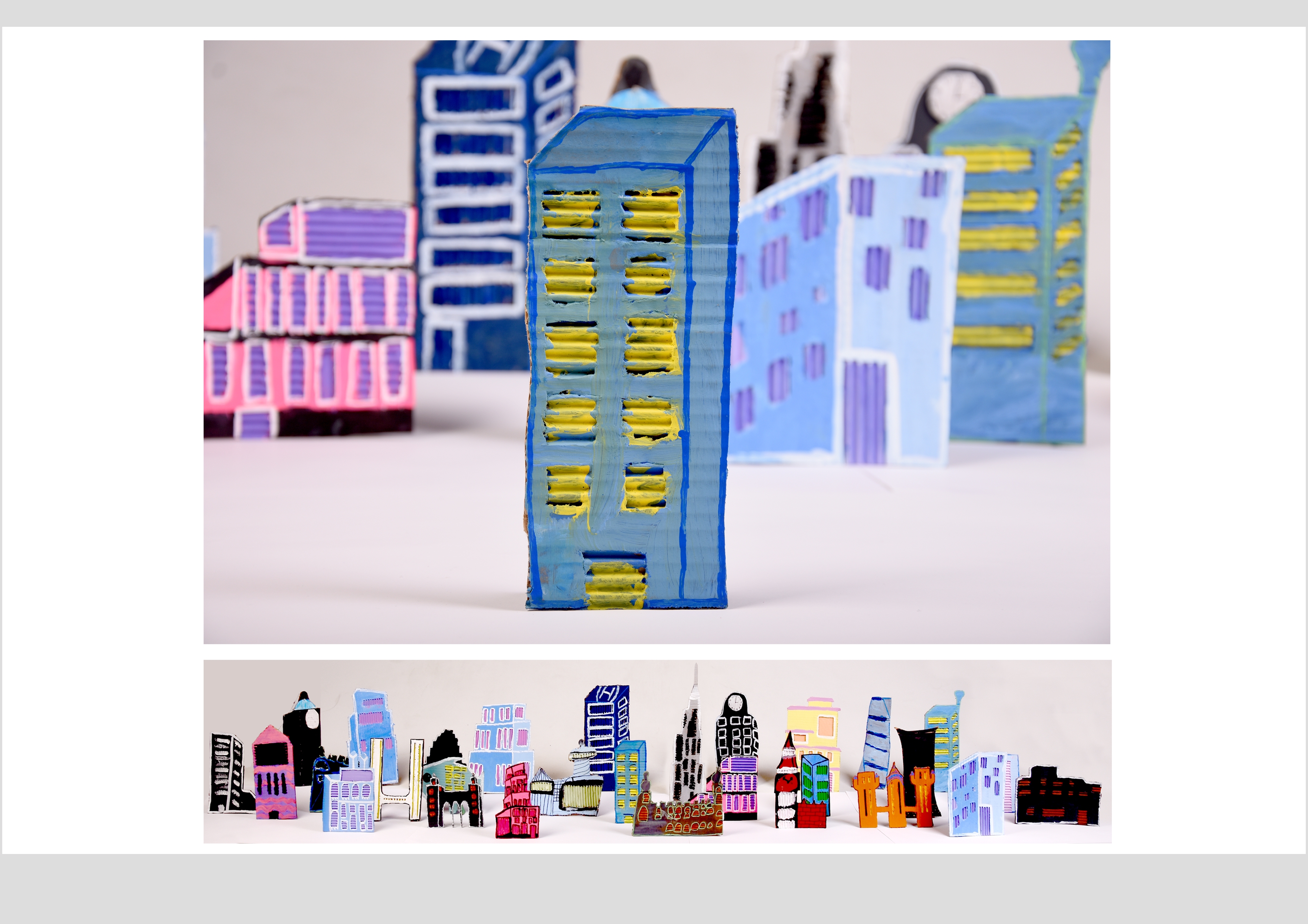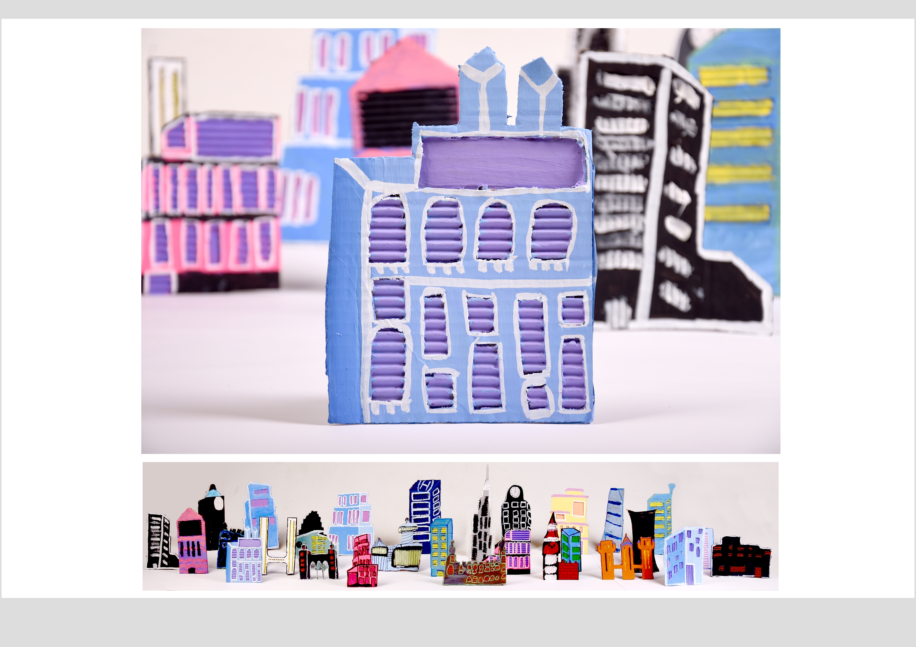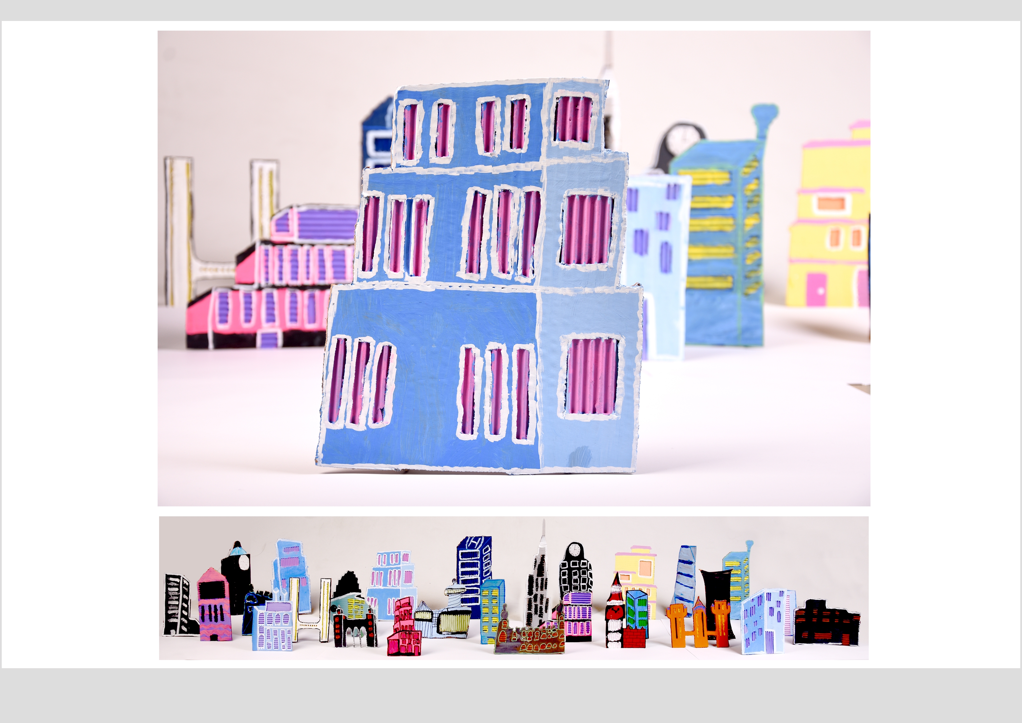 Barbara Gilhooly's was selected as an artist model as she creates cityscapes using buildings created from plywood. Room 2a made their buildings from cardboard to link to last terms sustainability learning. The building concept also links to our current learning of 'Changes' with our new school build and the Dunedin Hospital rebuild.