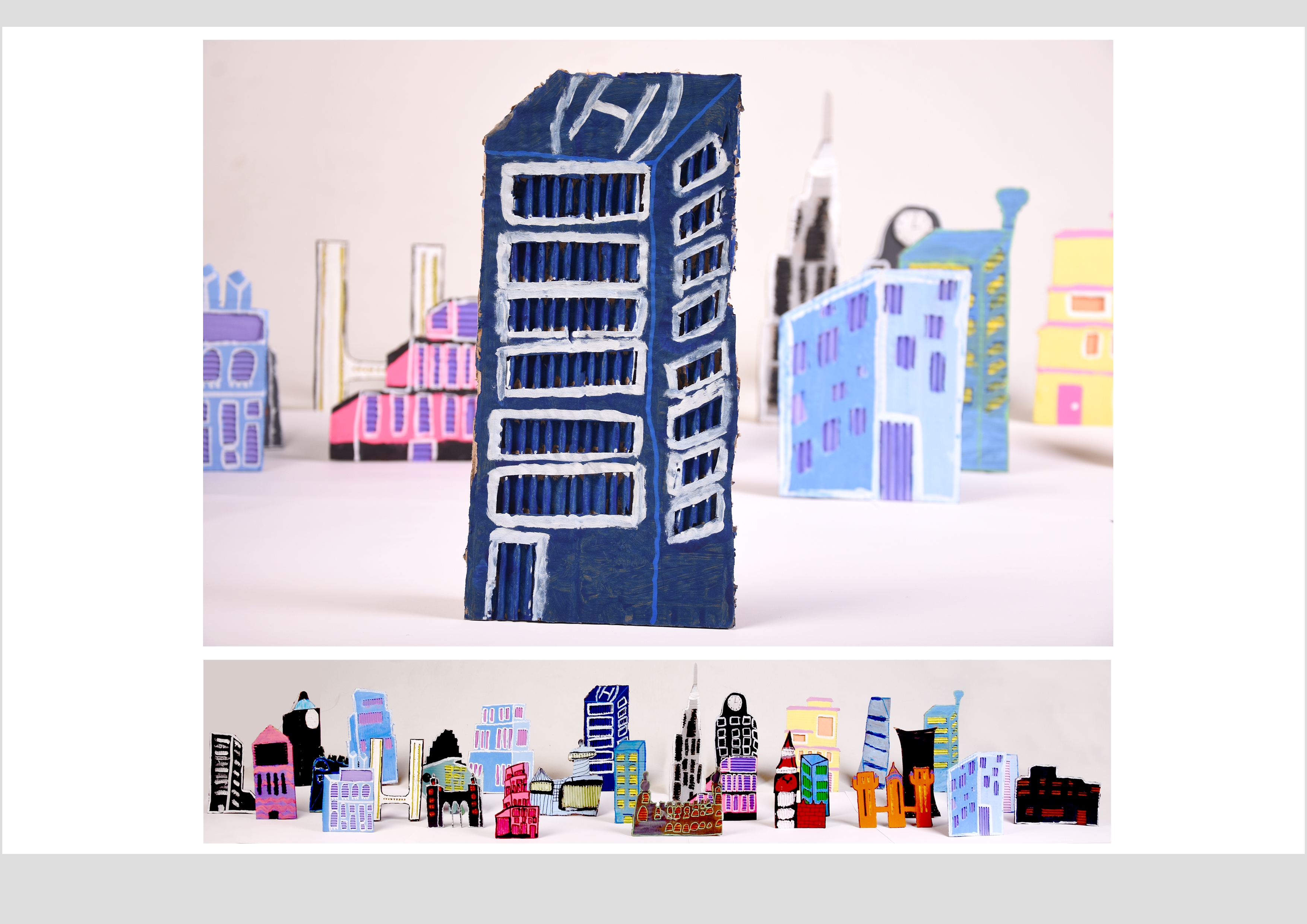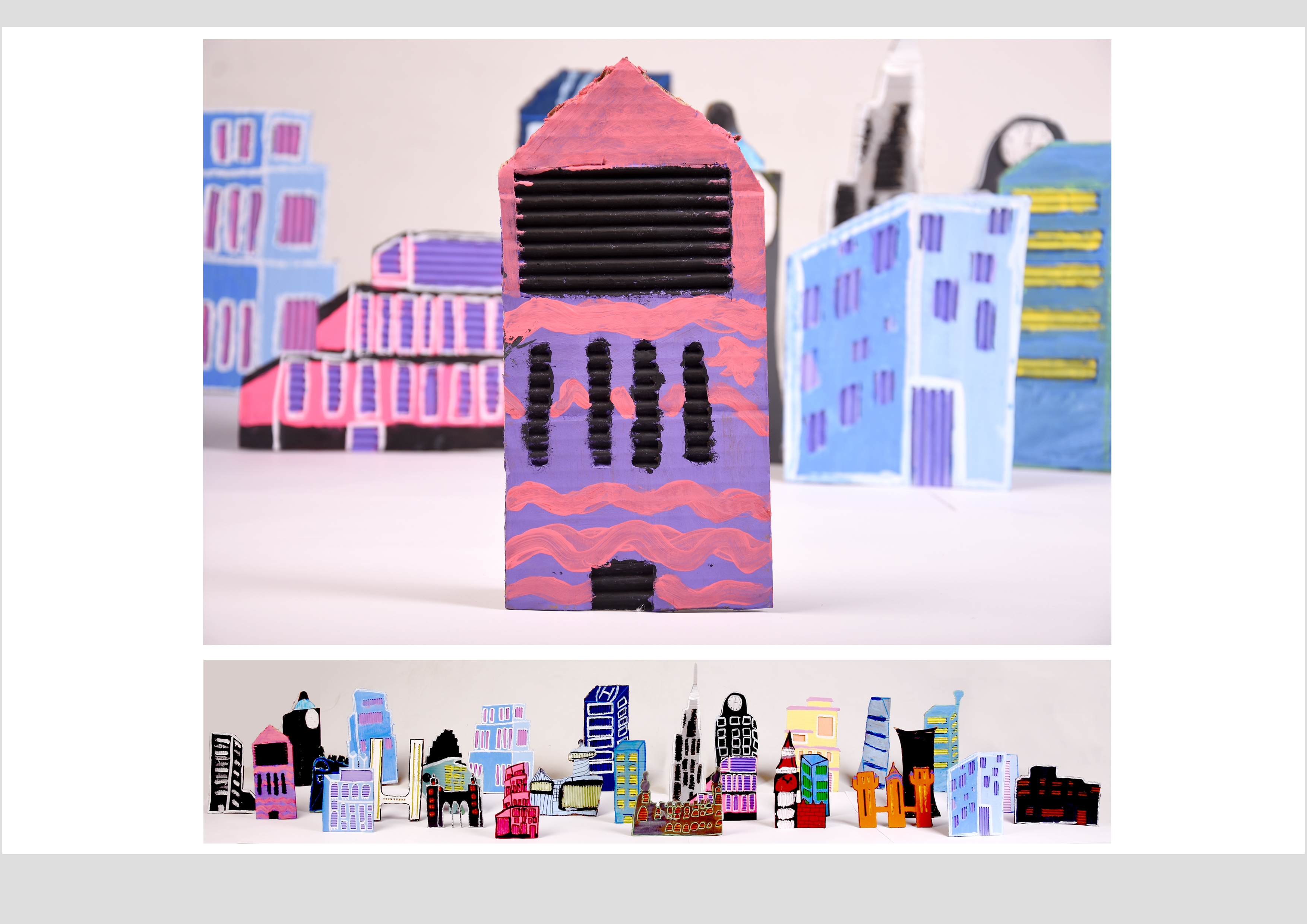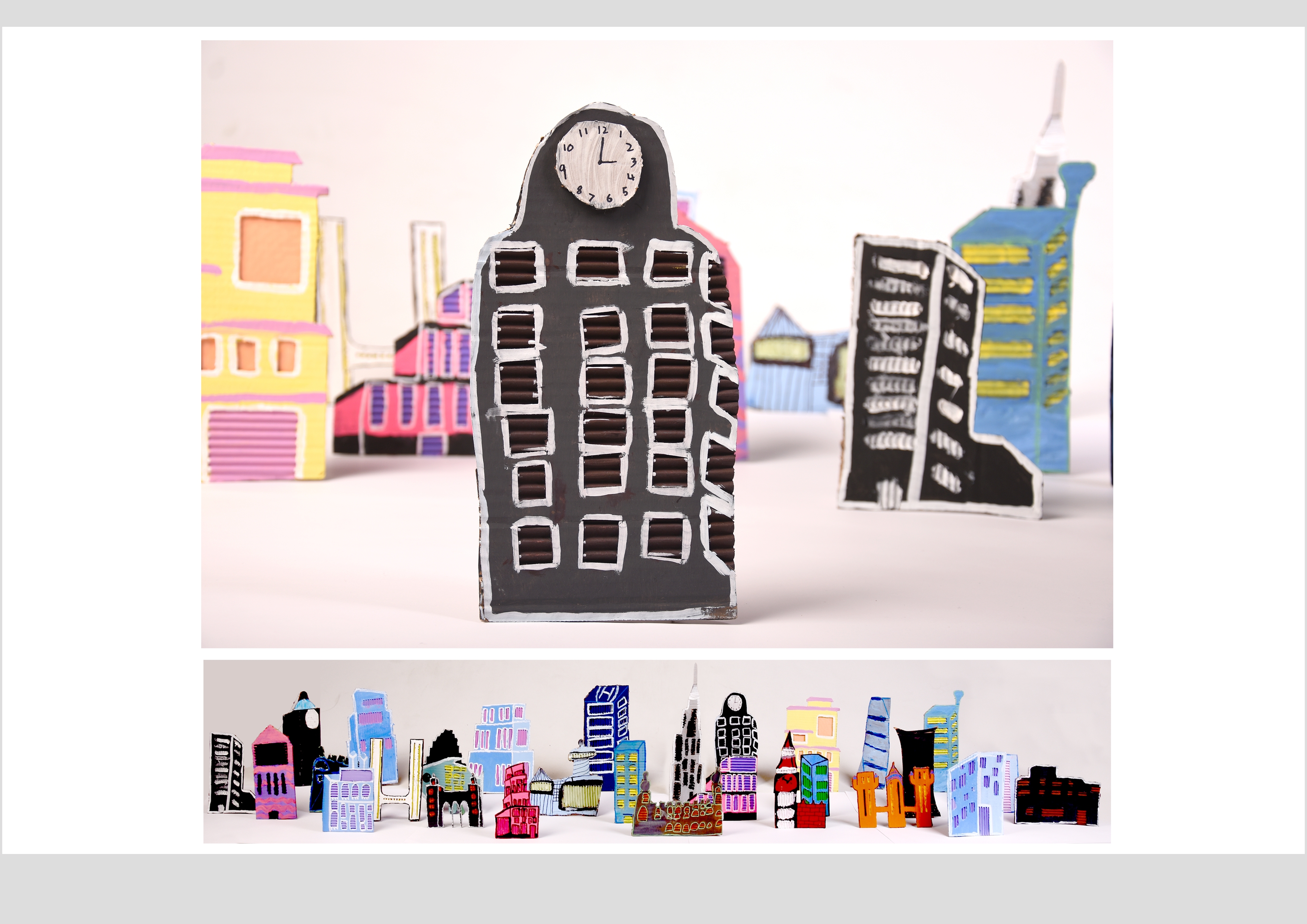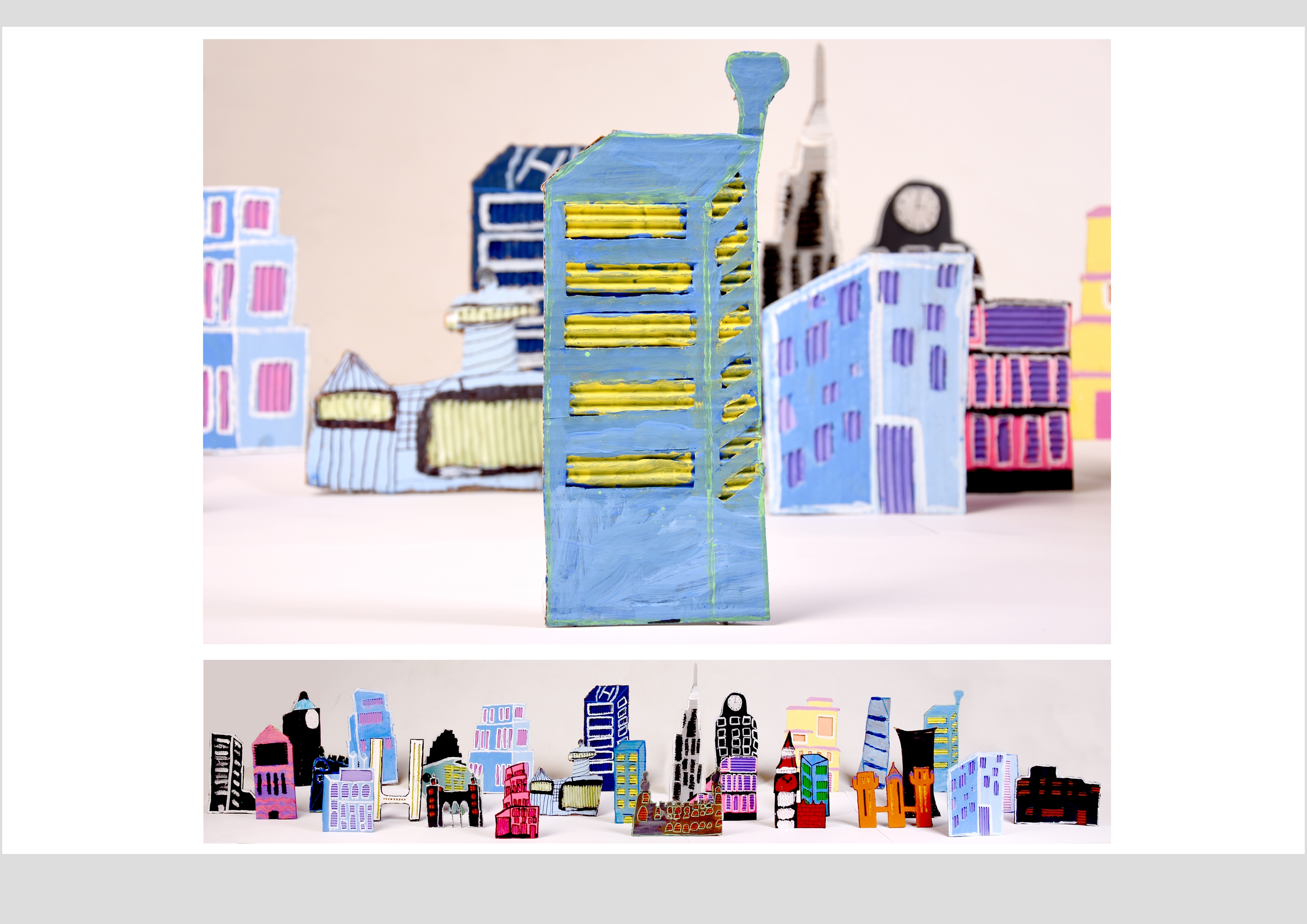 Barbara Gilhooly's was selected as an artist model as she creates cityscapes using buildings created from plywood. Room 2a made their buildings from cardboard to link to last terms sustainability learning. The building concept also links to our current learning of 'Changes' with our new school build and the Dunedin Hospital rebuild.