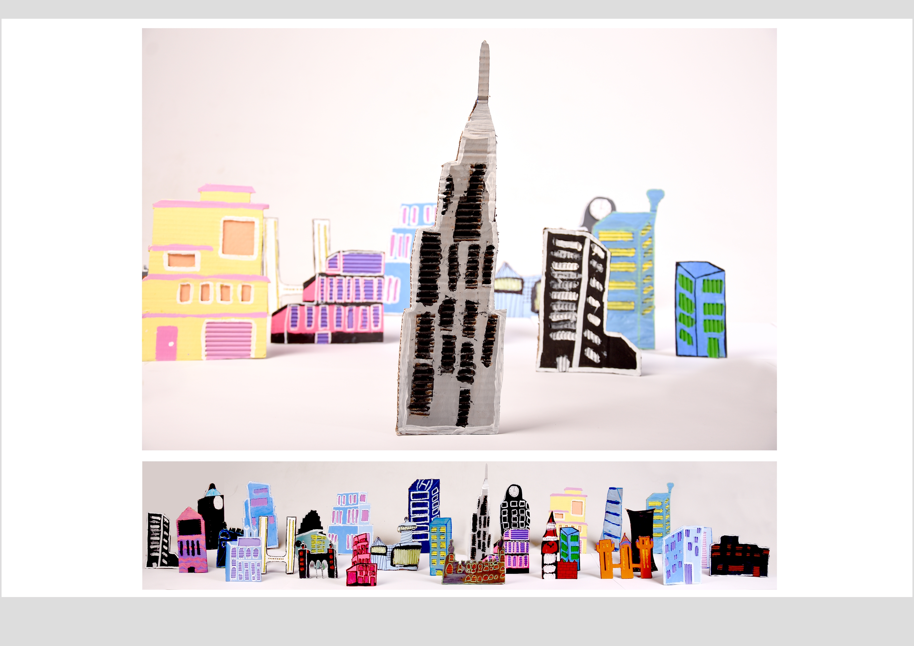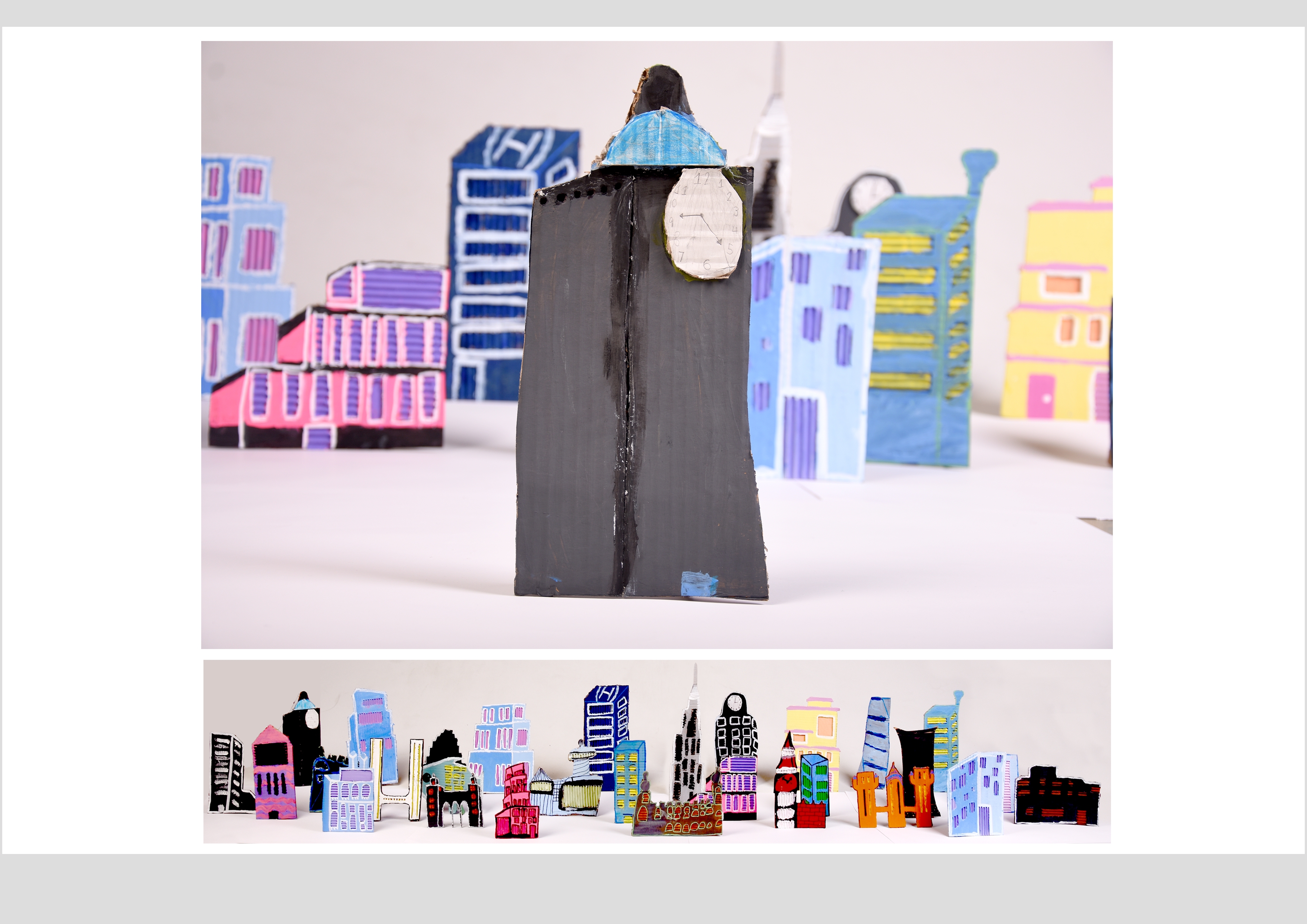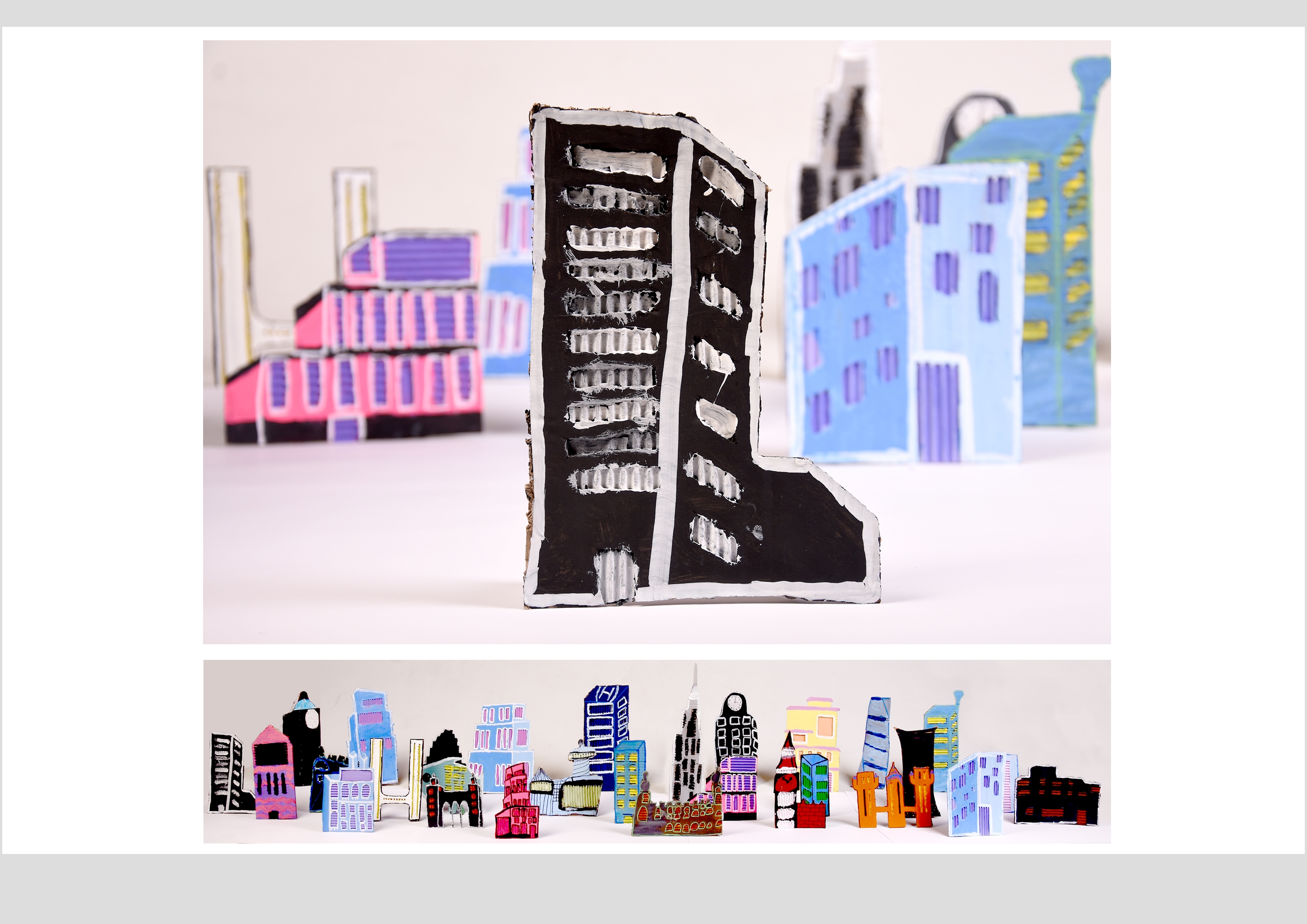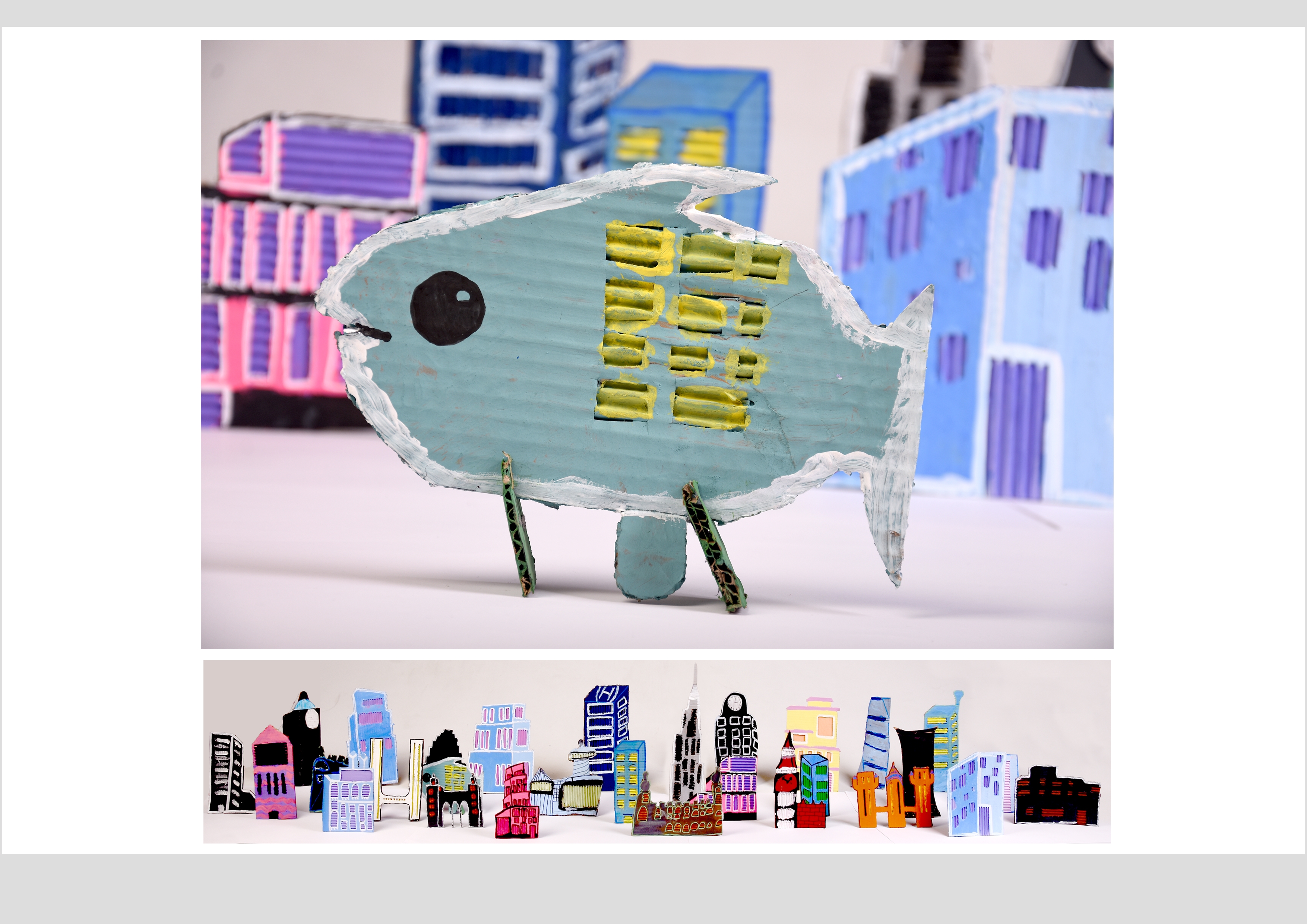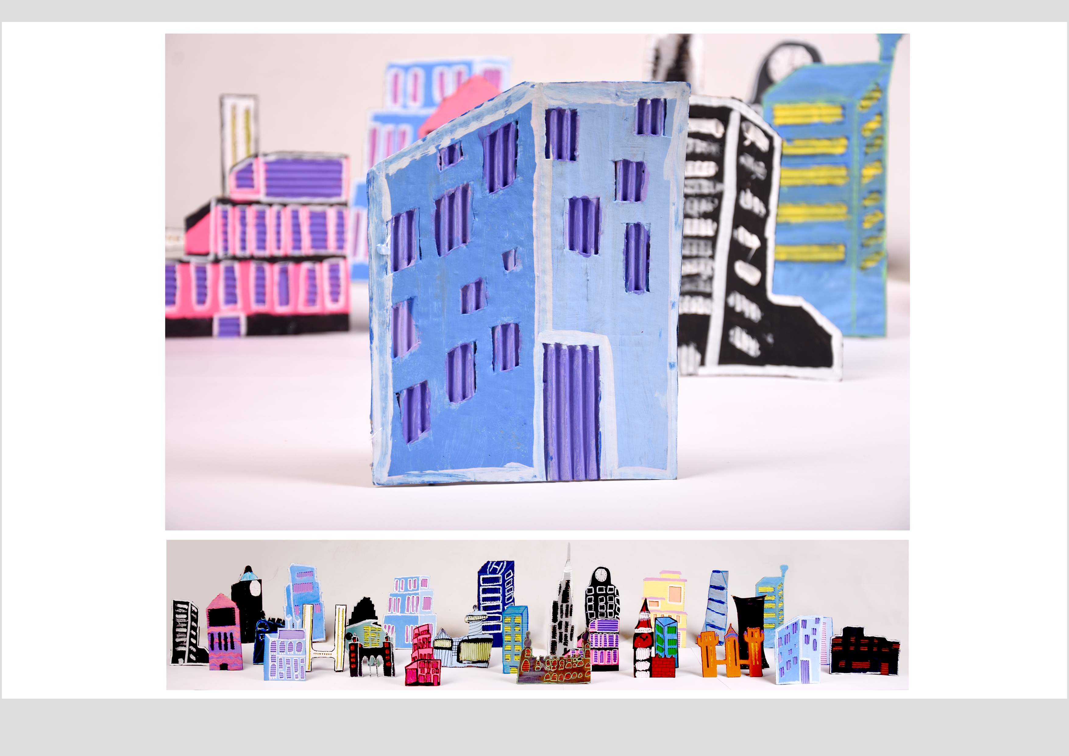 Barbara Gilhooly's was selected as an artist model as she creates cityscapes using buildings created from plywood. Room 2a made their buildings from cardboard to link to last terms sustainability learning. The building concept also links to our current learning of 'Changes' with our new school build and the Dunedin Hospital rebuild.