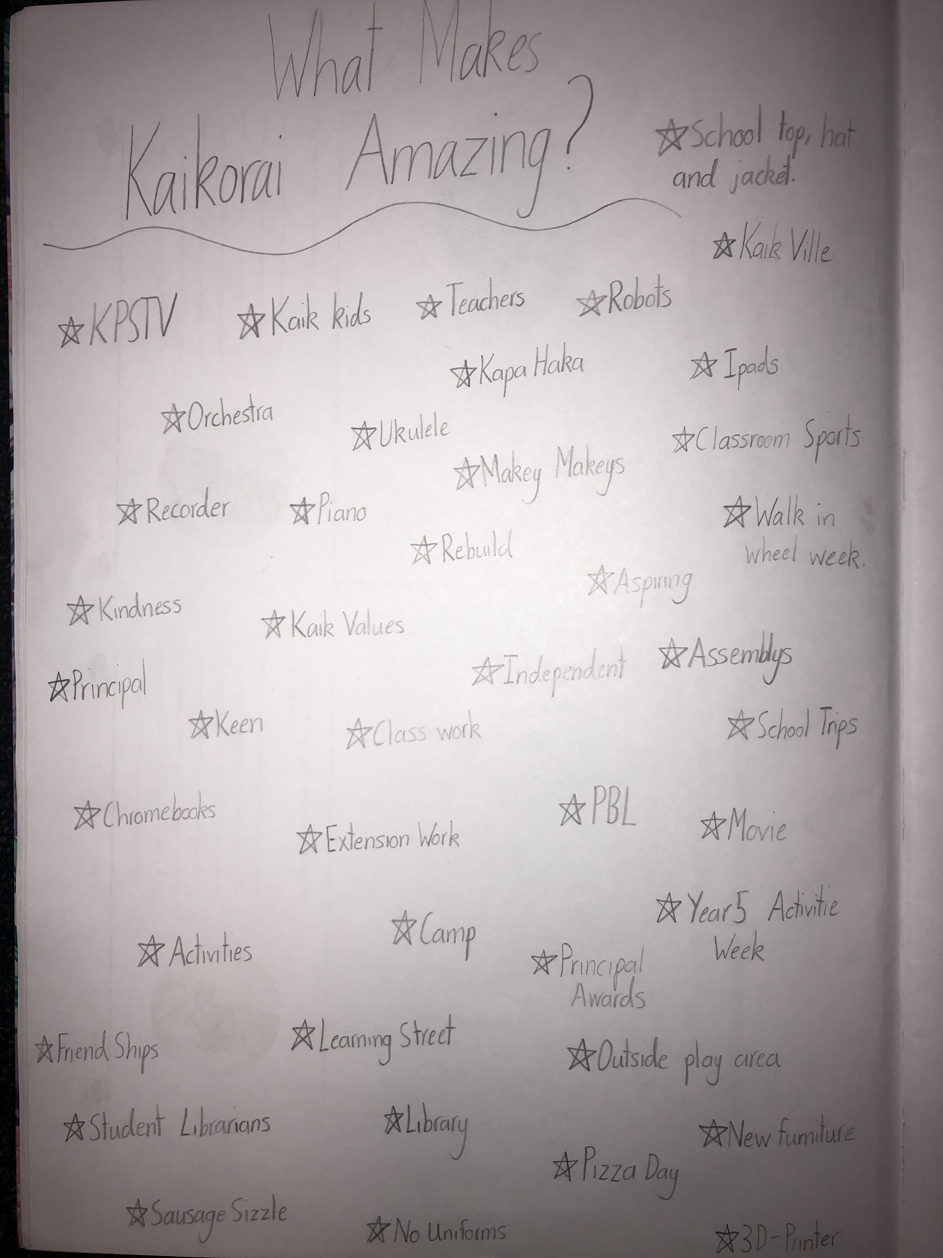 This term we are starting a new project-based learning topic. We are trying to find creative ways to showcase our learning and space without having visitors come into the school. Definitely a relevant project! Classes have started this project with a bang, brainstorming all the things that make Kaikorai amazing. We sure do have a lot to be thankful for. Next, we will be looking into different ways we can showcase and share this with our whānau. Watch this space for exciting things to come.