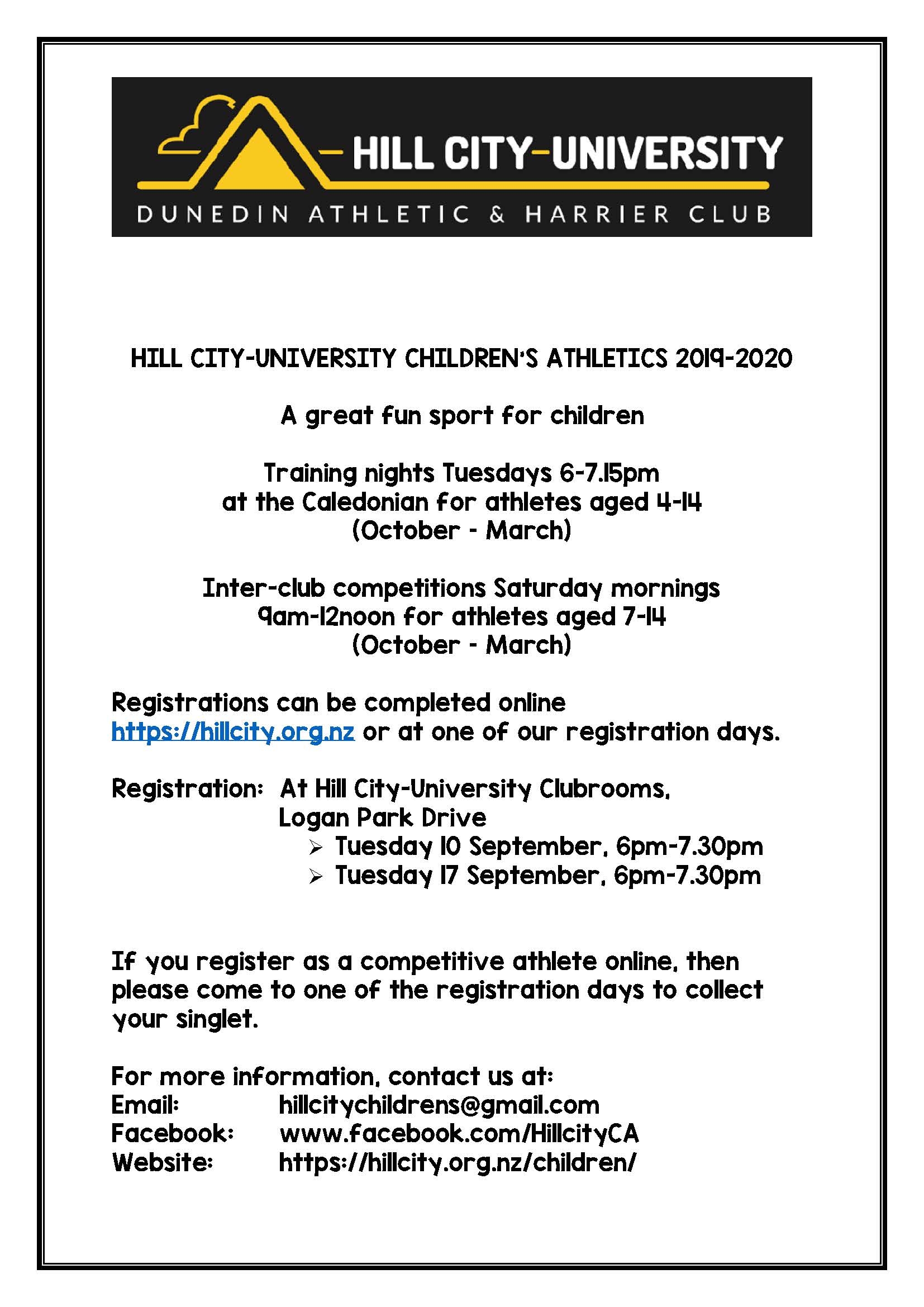 Registrations can be completed online https://hillcity.org.nz or at one of our registration days.