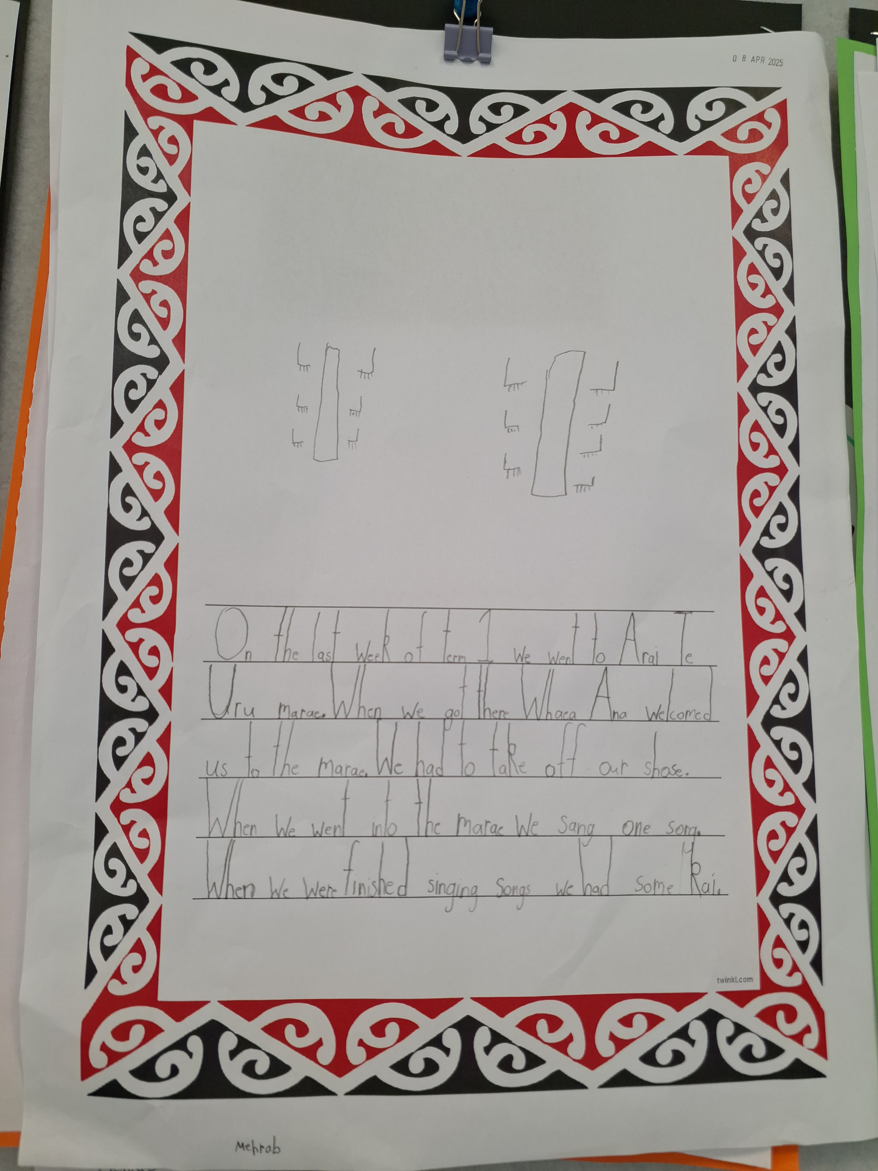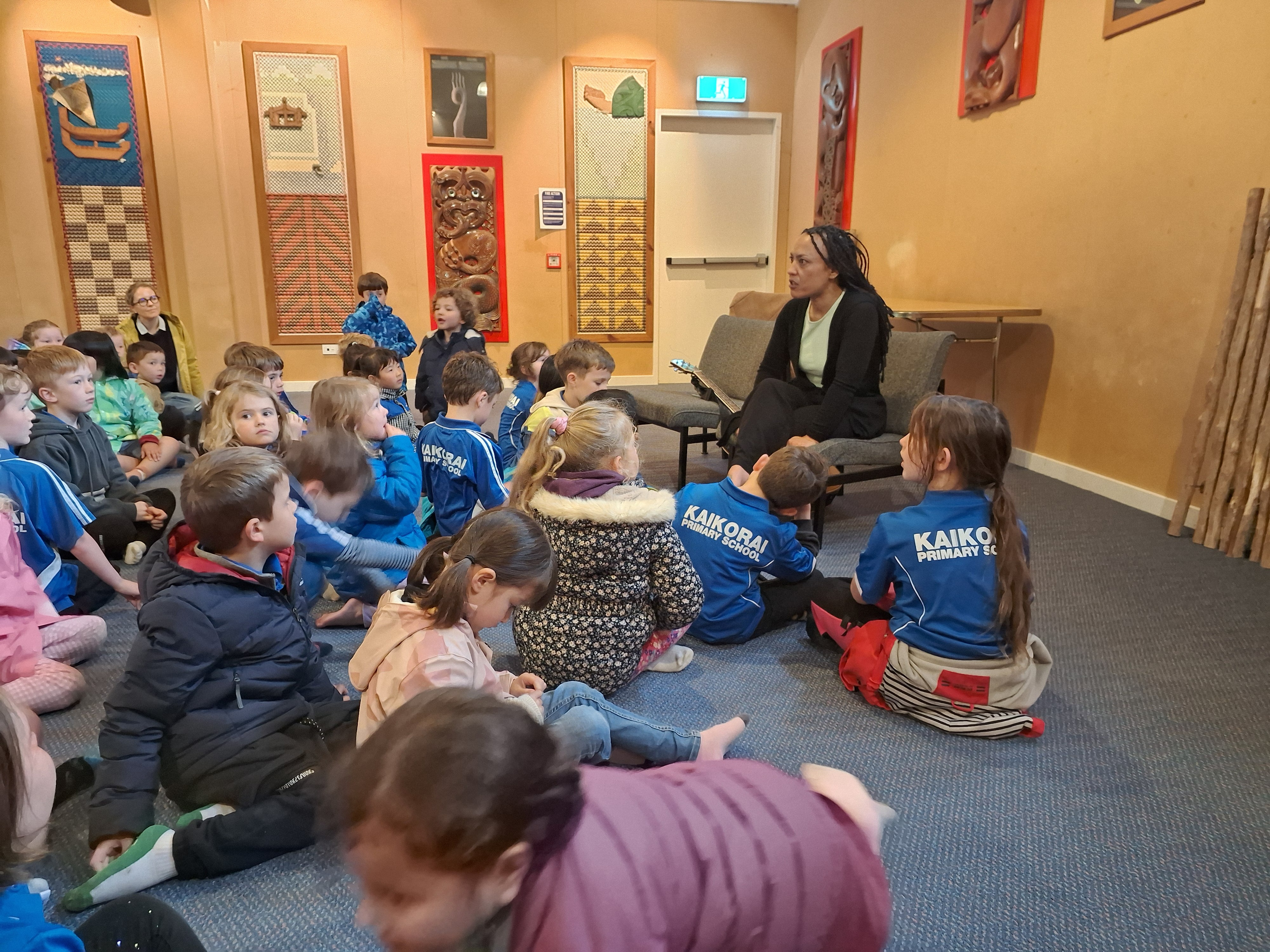 A highlight of the term was our visit to Arai Te Uru Marae on Tuesday. It was a beautiful way to end the term. After the pōwhiri (formal welcome) we had some shared kai, then Whaea Ana told stories of the marae and its history, and we finished by singing some songs. A huge thank you to all of our whānau who joined us- the children were excited to have Ms Downie there too!